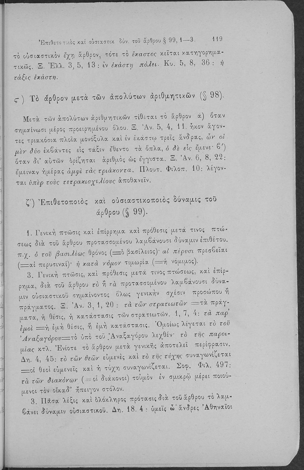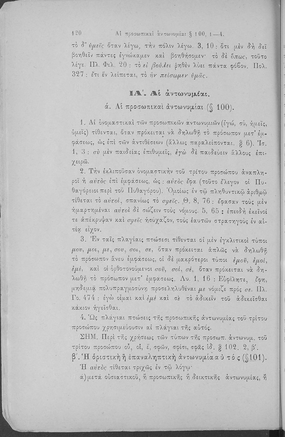 Σχολικό εγχειρίδιο Αρχαίων Ελληνικών για τα Ελληνικά Σχολεία, Παρθεναγωγεία και Γυμνάσια που περιέχει τους κανόνες γραμματικής και είναι χωρισμένο σε φθογγολογικό, τυπολογικό και ετυμολογικό μέρος.