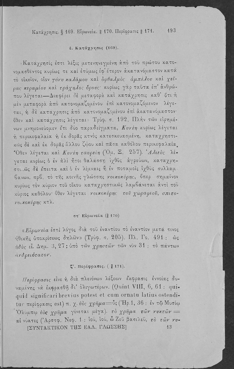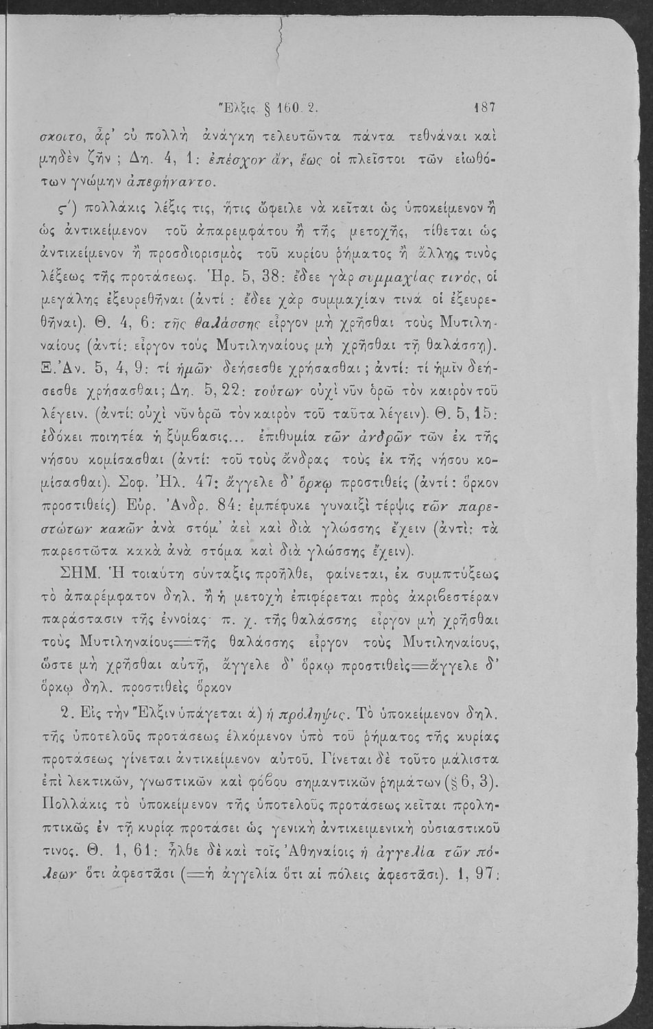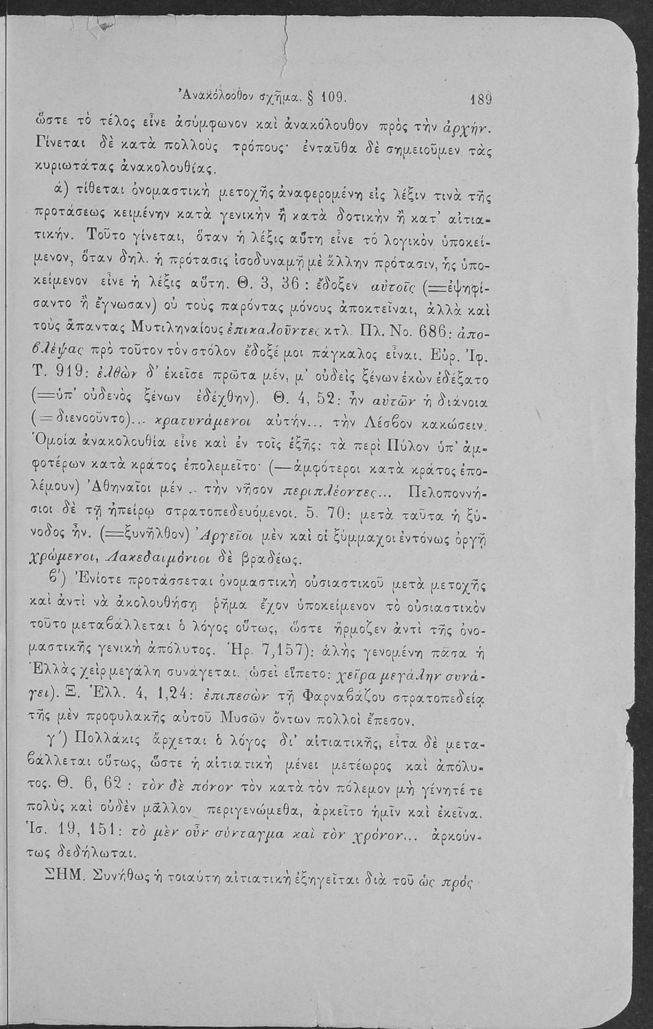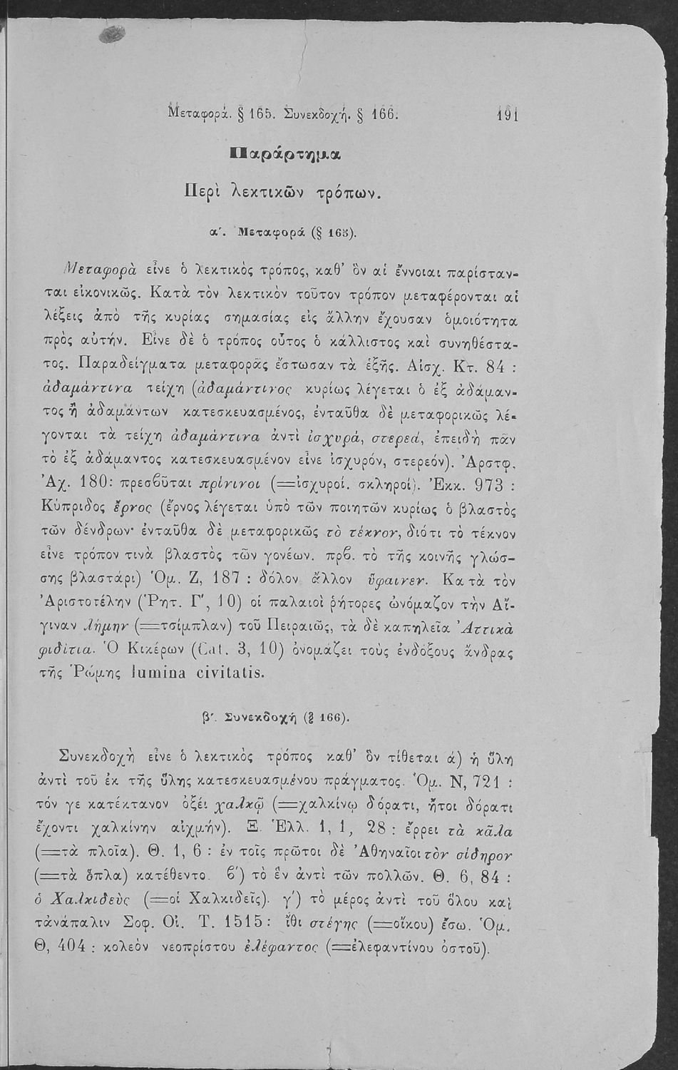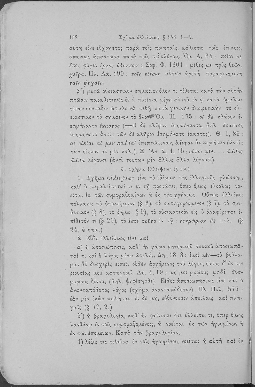 Σχολικό εγχειρίδιο Αρχαίων Ελληνικών για τα Ελληνικά Σχολεία και τα Ανώτερα Παρθεναγωγεία που εξετάζει τα μέρη του λόγου και την σύνταξή τους.