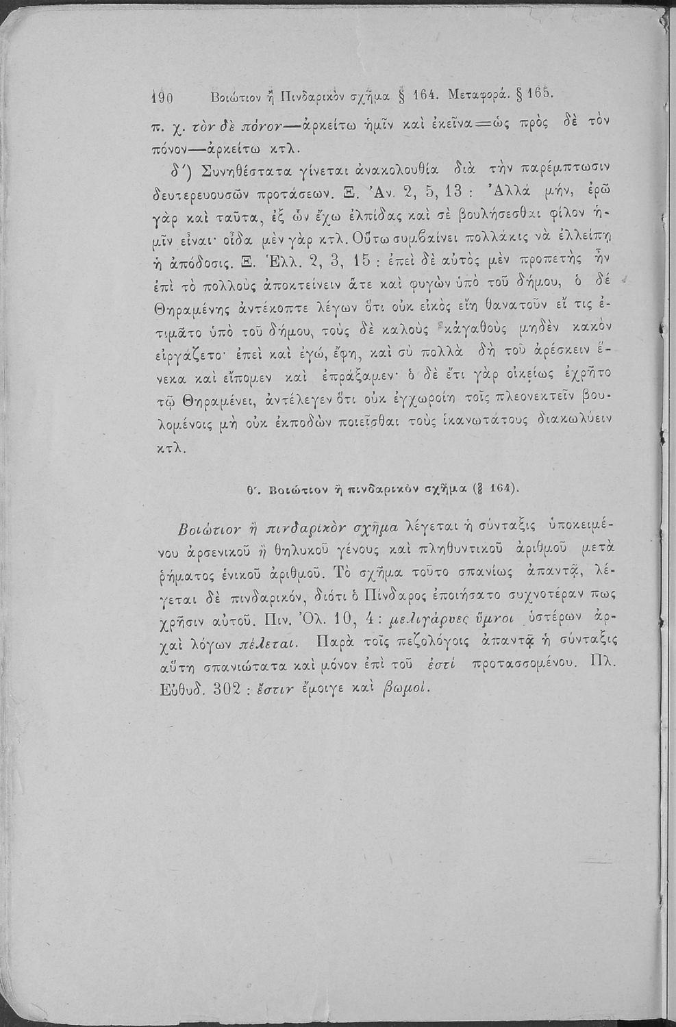 Σχολικό εγχειρίδιο Αρχαίων Ελληνικών για τα Ελληνικά Σχολεία, Παρθεναγωγεία και Γυμνάσια που περιέχει τους κανόνες γραμματικής και είναι χωρισμένο σε φθογγολογικό, τυπολογικό και ετυμολογικό μέρος.