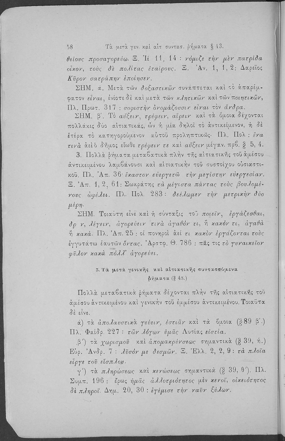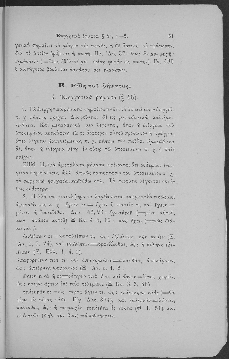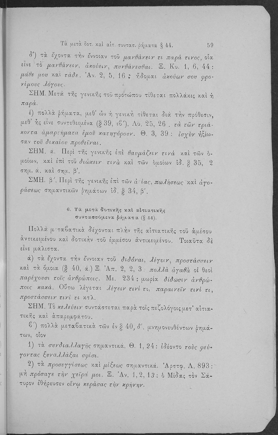 Σχολικό εγχειρίδιο Αρχαίων Ελληνικών Γυμνασίου που εξετάζει τα μέρη του λόγου και την σύνταξή τους.