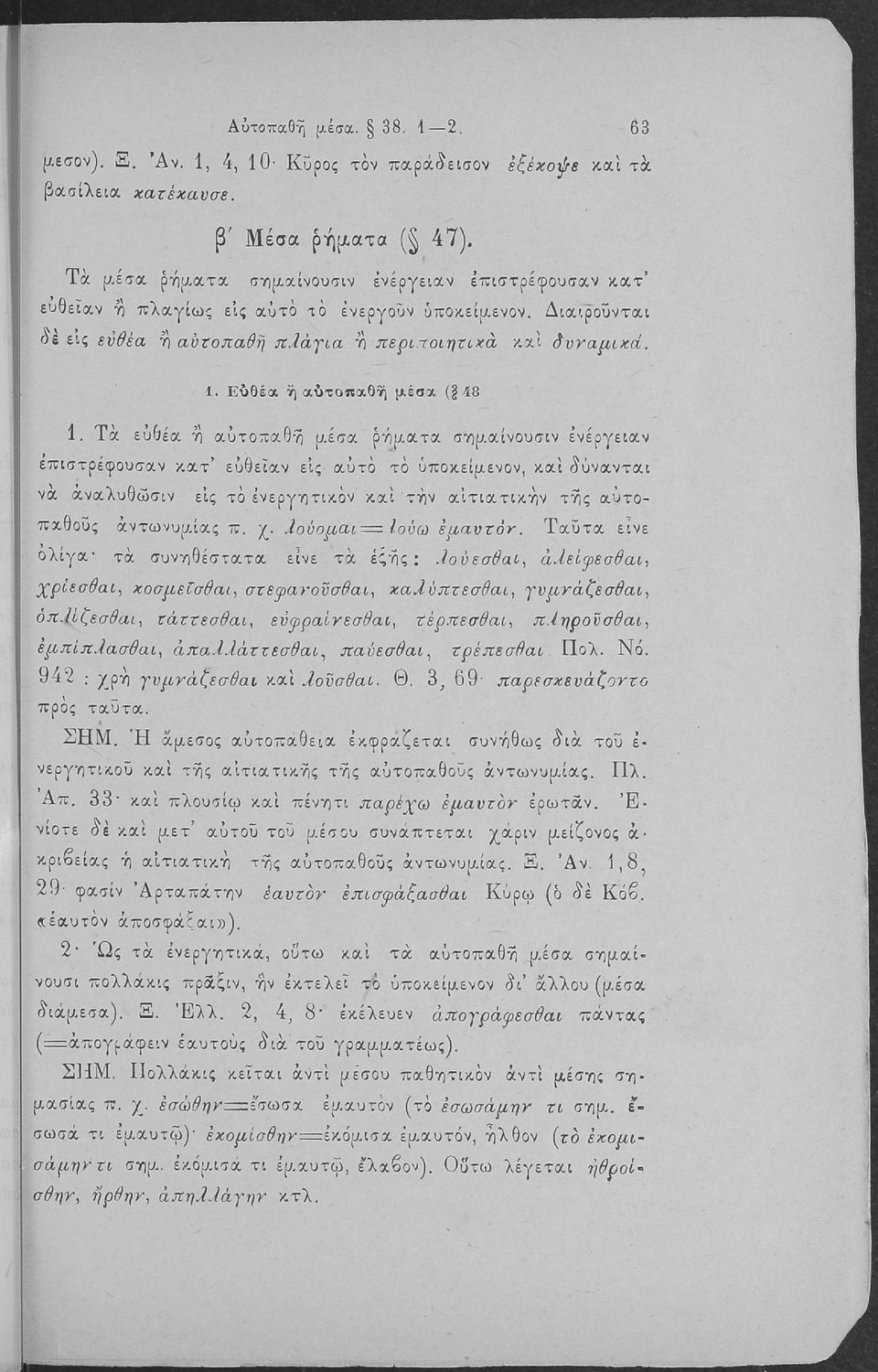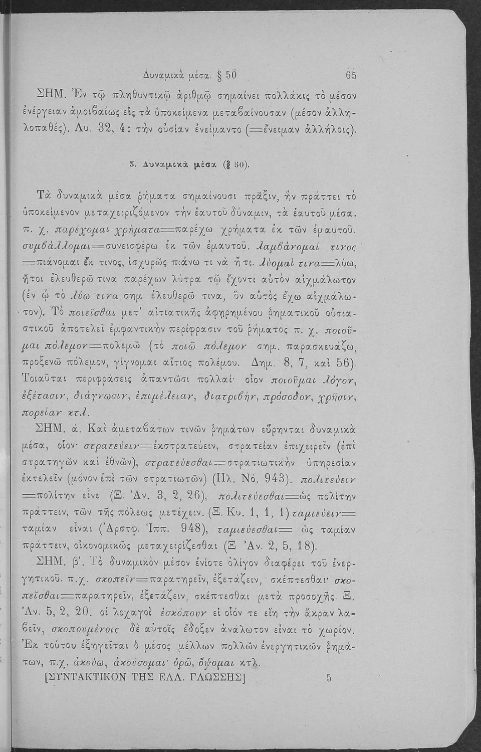 Σχολικό εγχειρίδιο Αρχαίων Ελληνικών Γυμνασίου που εξετάζει τα μέρη του λόγου και την σύνταξή τους.