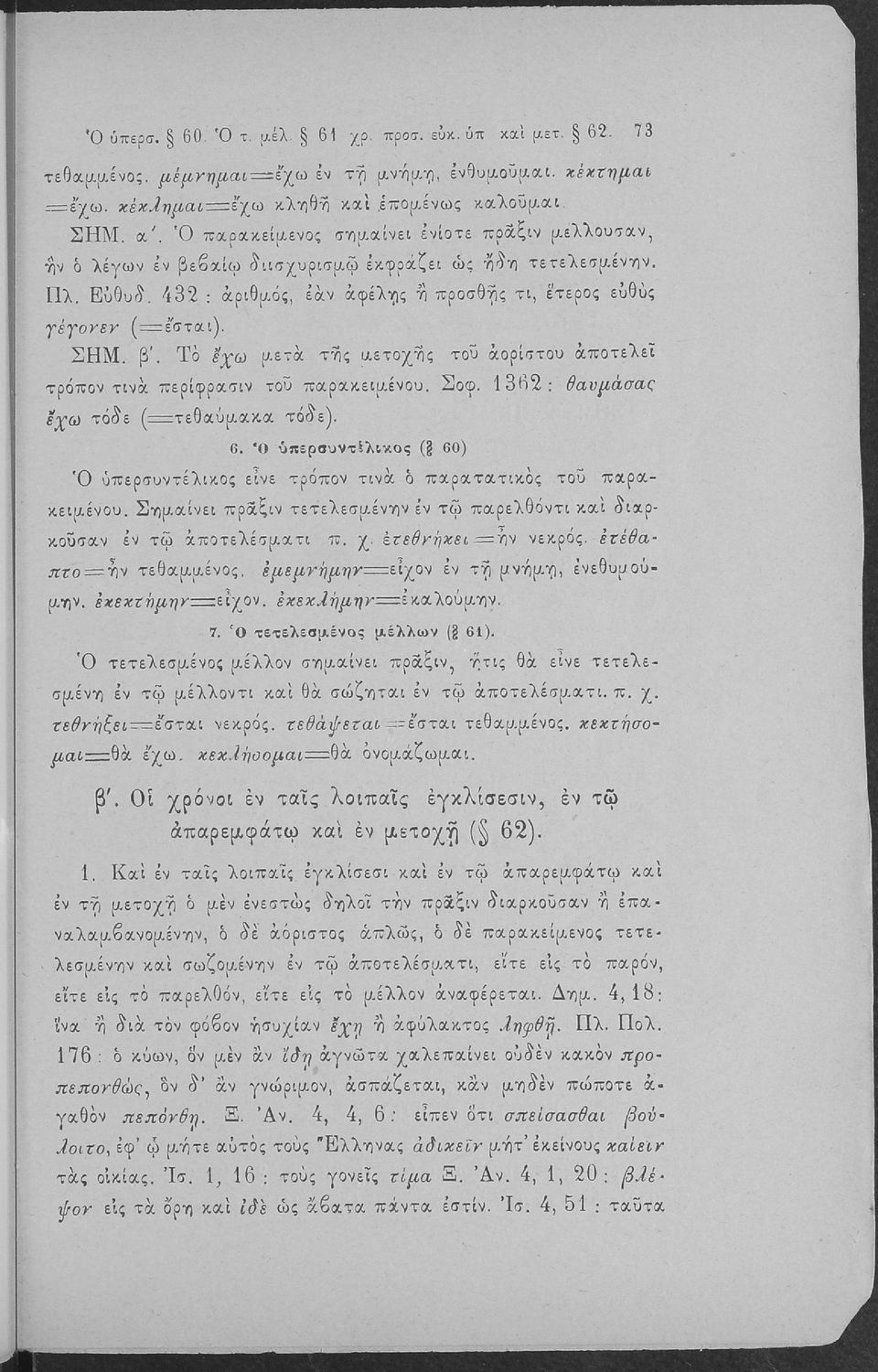 Κωδικός αναγνώρισης: 01-42316 Τίτλος: Συντακτικόν της ελληνικής γλώσσης μάλιστα της αττικής διαλέκτου προς χρήσιν των Γυμνασίων Συγγραφέας: Κ. Σ. Κατεβαίνης Μέγεθος και υπόστρωμα: Σχολικό εγχειρίδιο, 21εκ., μαλακό εξώφυλλο, 196 σελίδες. |