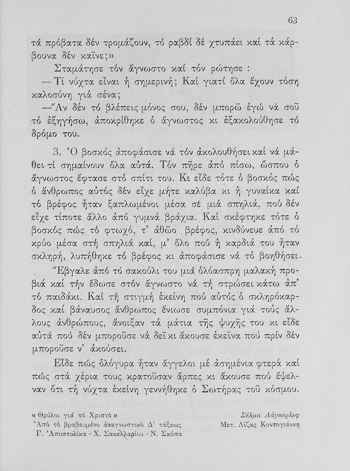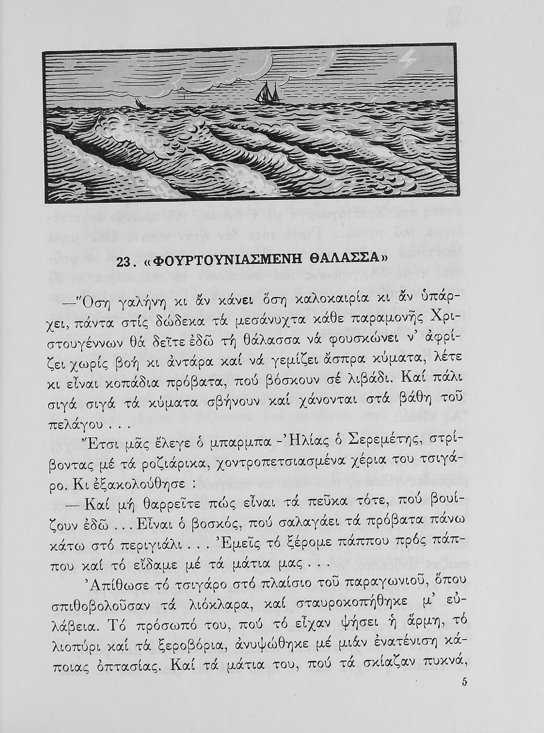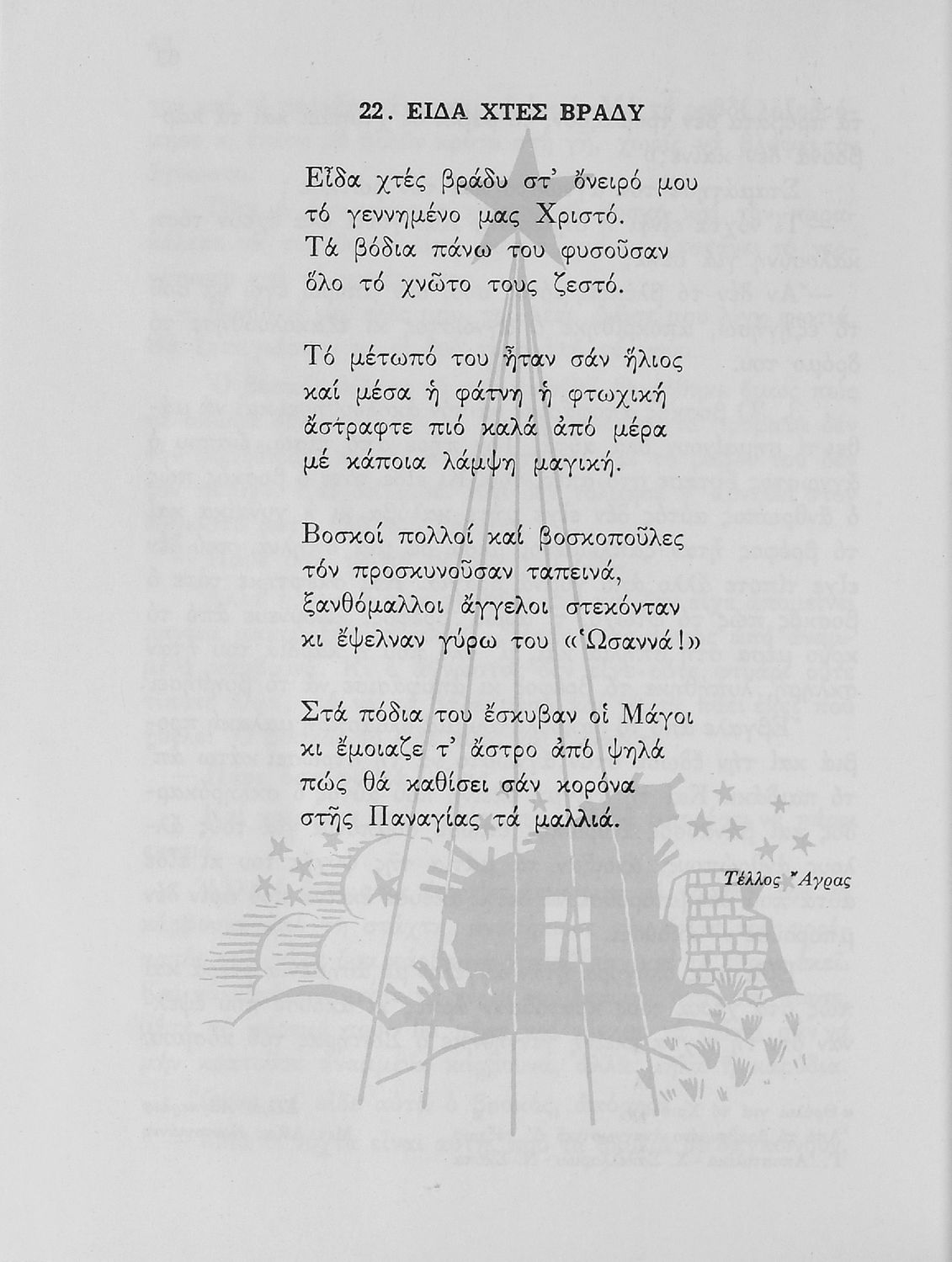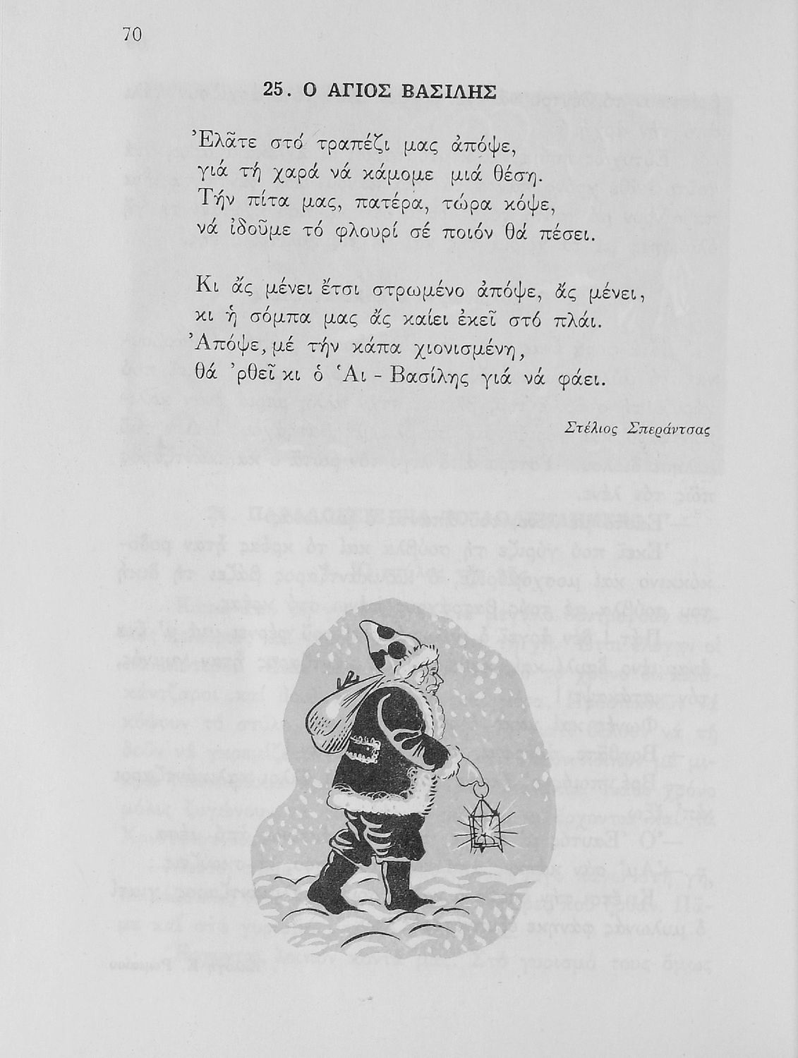 Αναγνωστικό για την Δ΄ τάξη του Δημοτικού. Περιλαμβάνει ένα κείμενο στο οποίο παρεμβάλλονται ποιήματα δημοτικά και Ελλήνων ποιητών.