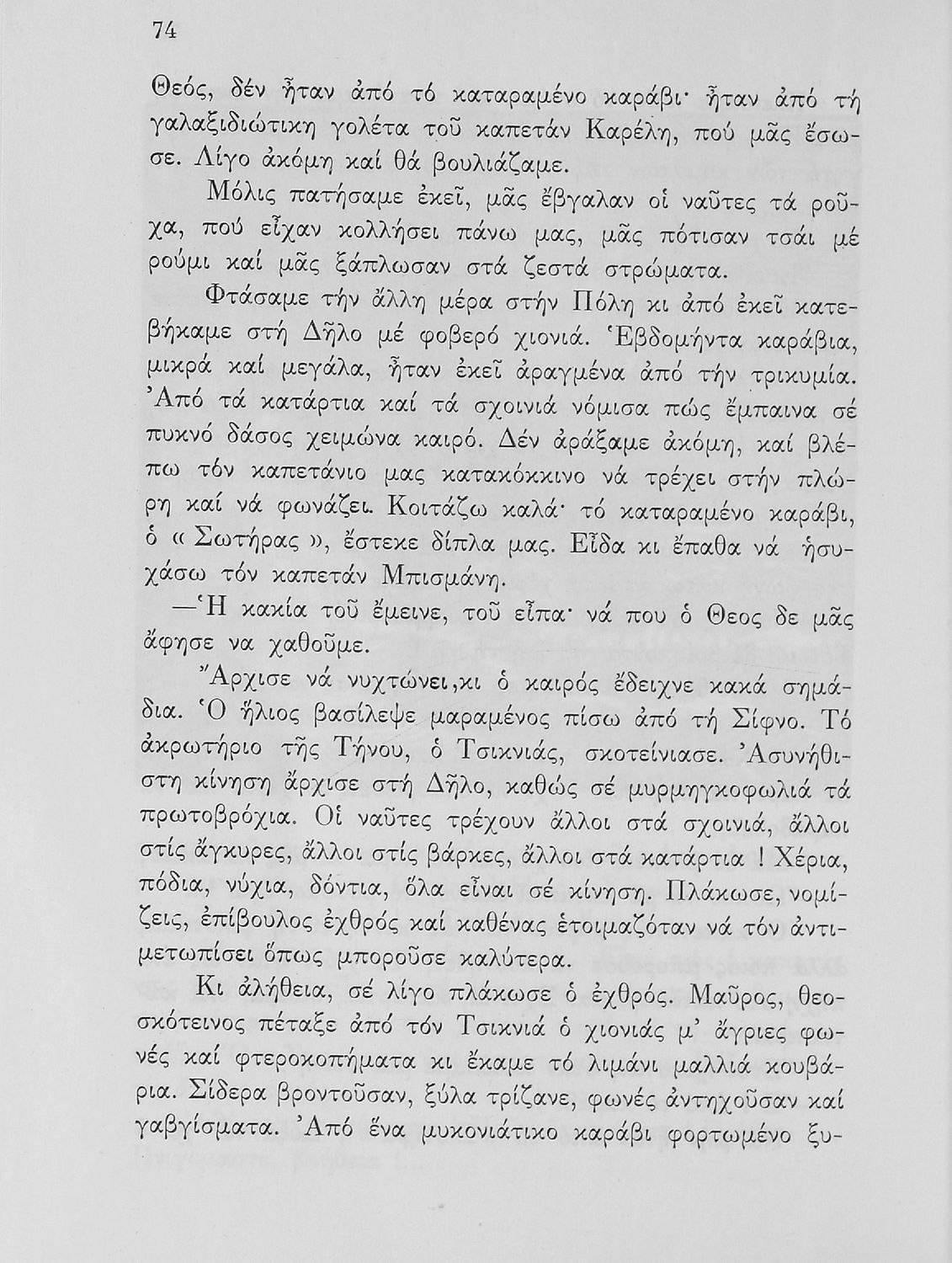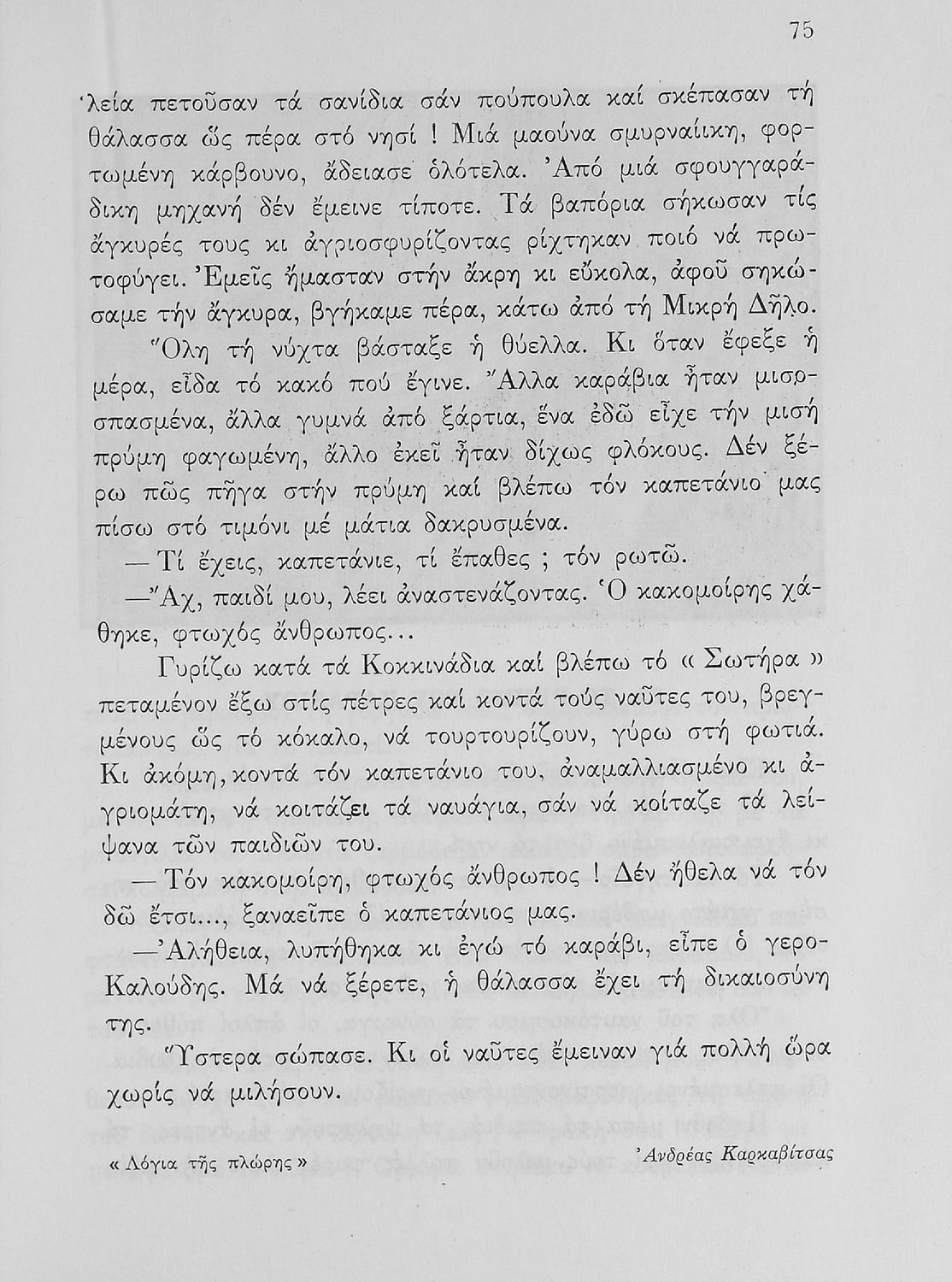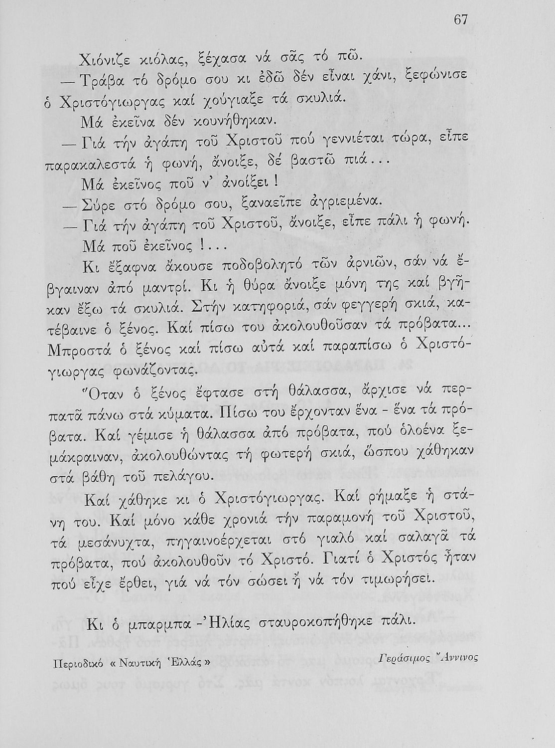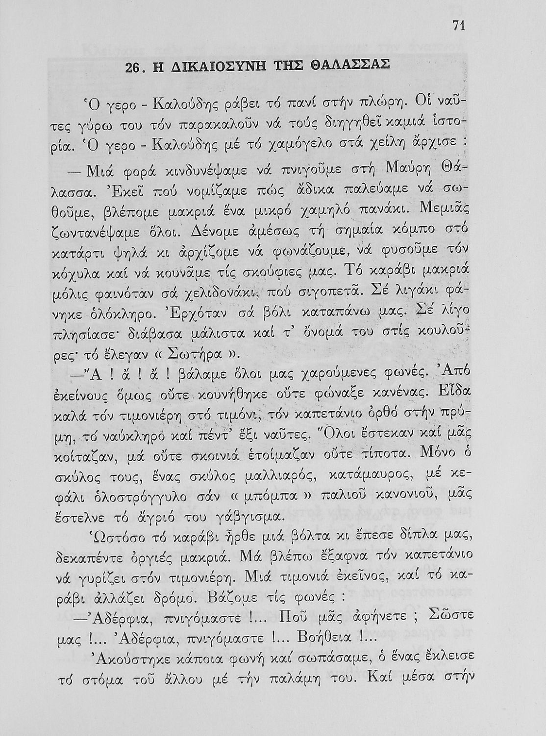 Αναγνωστικό για την Δ΄ τάξη του Δημοτικού. Περιλαμβάνει ένα κείμενο στο οποίο παρεμβάλλονται ποιήματα δημοτικά και Ελλήνων ποιητών.