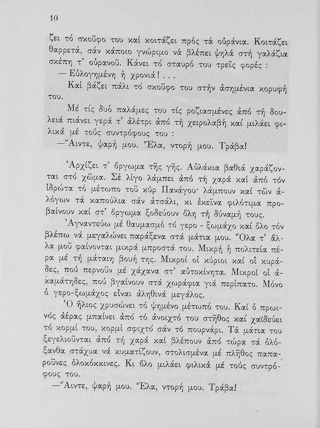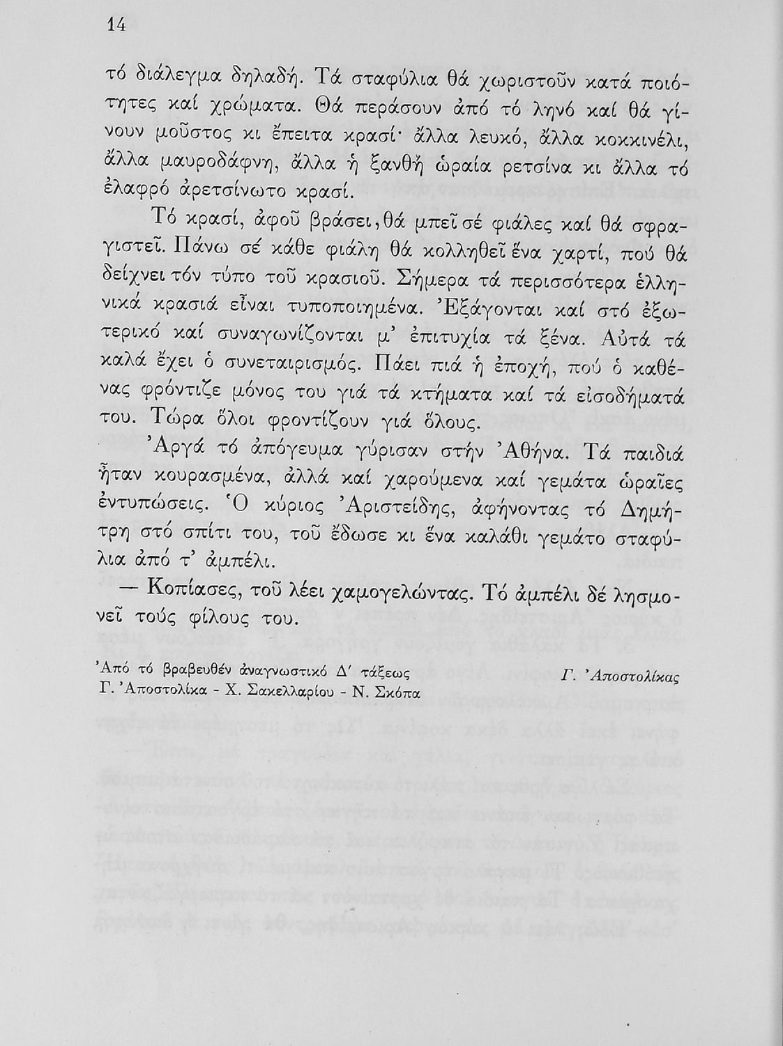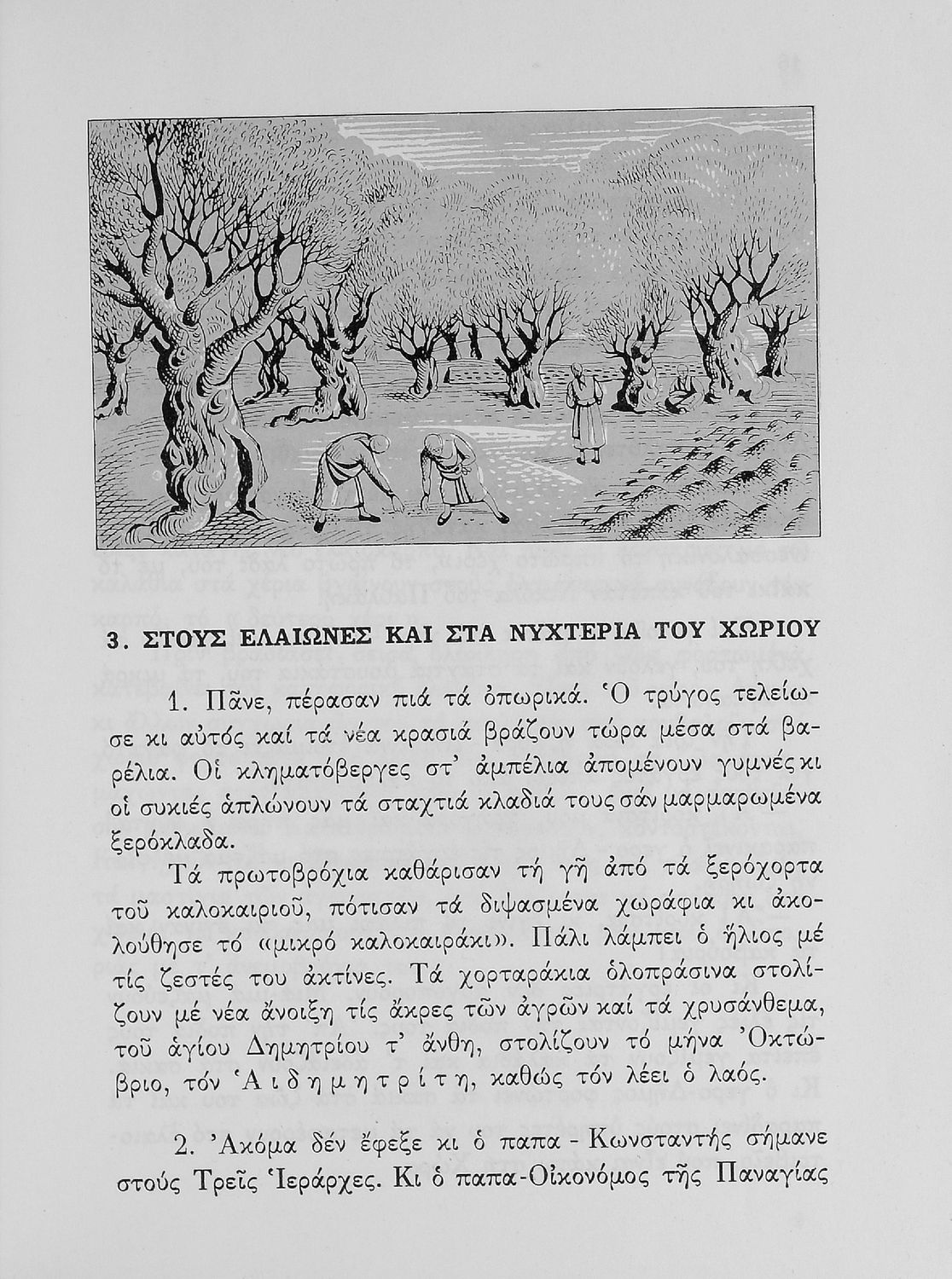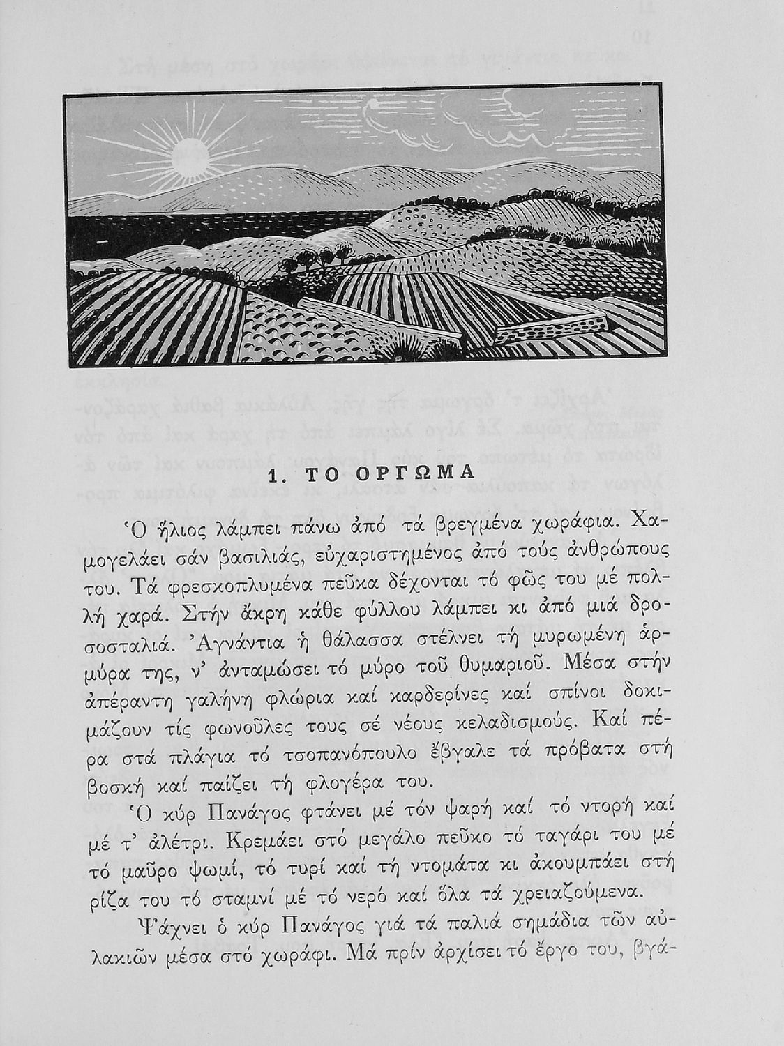 Αναγνωστικό Δ΄ Δημοτικού που περιέχει πεζά και ποιήματα με περιεχόμενο διδακτικό και ηθικοπλαστικό εμπνευσμένα από την ελληνική ιστορία και μυθολογία, και την αγροτική και κοινωνική ζωή.