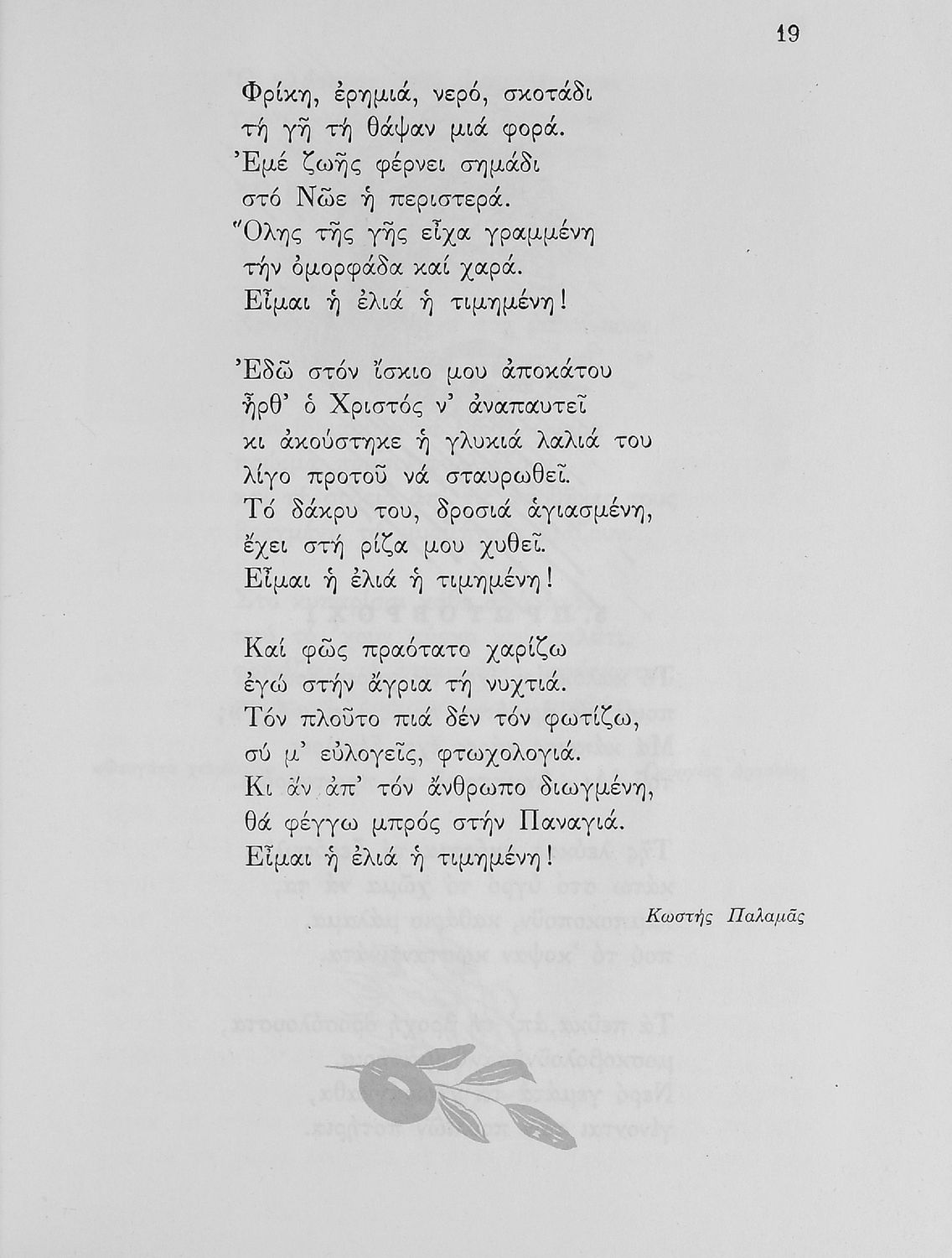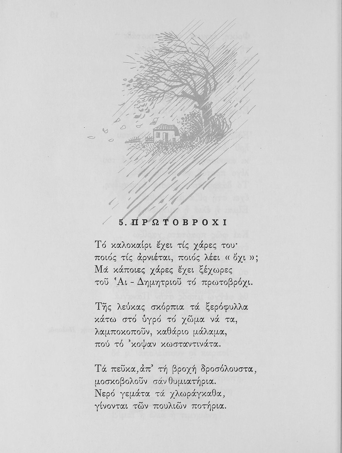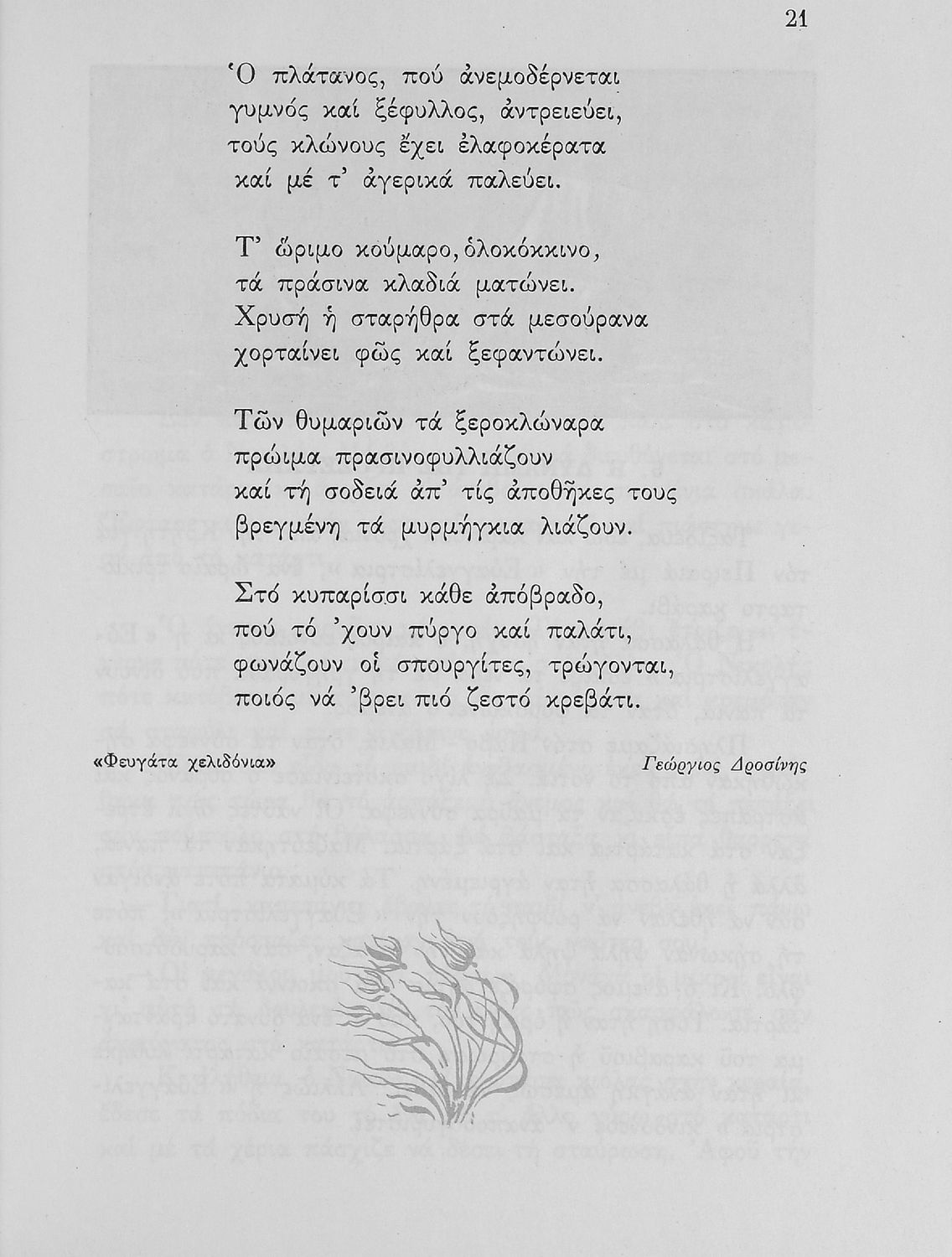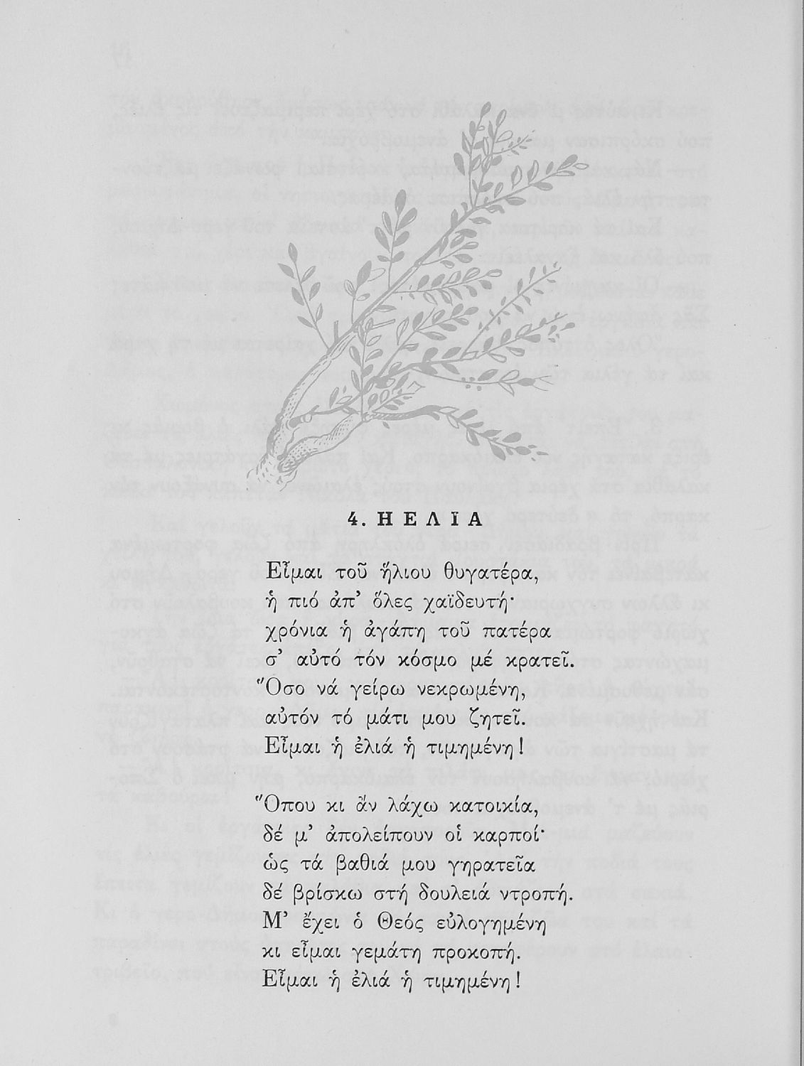 Αναγνωστικό για την Δ΄ τάξη του Δημοτικού. Περιλαμβάνει ένα κείμενο στο οποίο παρεμβάλλονται ποιήματα δημοτικά και Ελλήνων ποιητών.