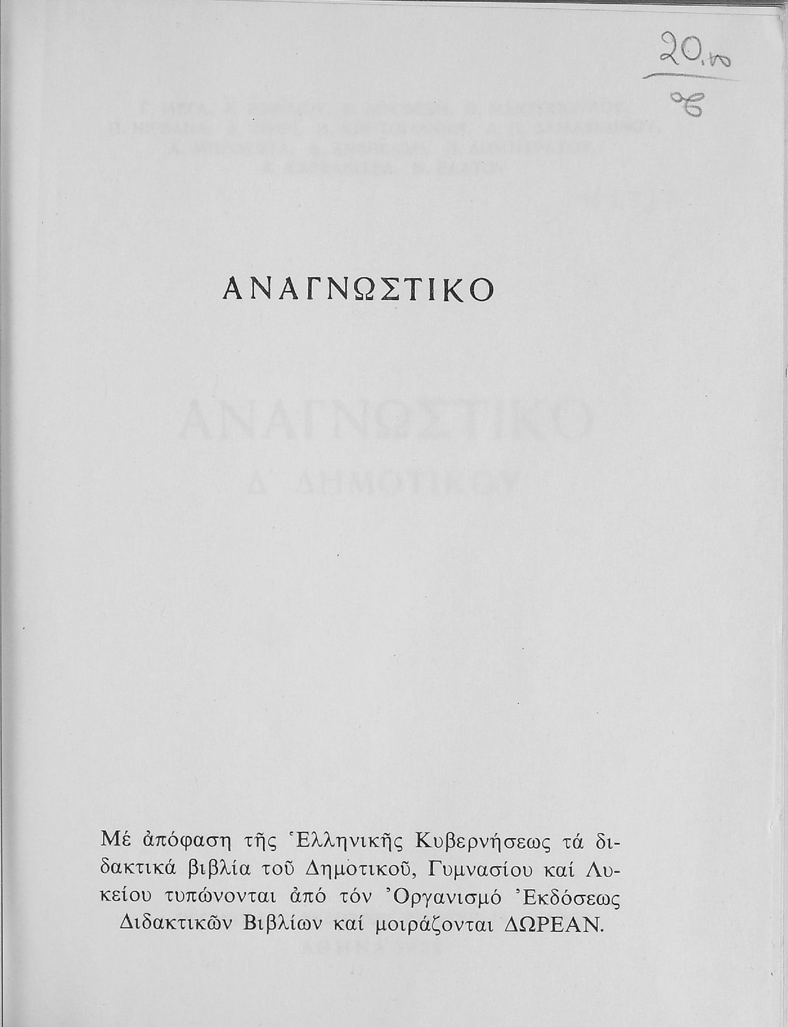 Συγγραφέας: Γ. Μέγας, Κ. Ρωμαίος, Σ. Δουφεξής, Θ. Μακρόπουλος, Π. Νιρβάνας, Δ. Ζήσης, Δ. Κοντογιάννης, Δ.Π. Δαμασκηνός, Α. Μπρούστας, Δ. Ανδρεάδης, Π. Δημητράτος, Α. Καρκαβίτσας, Ν. Έλατος