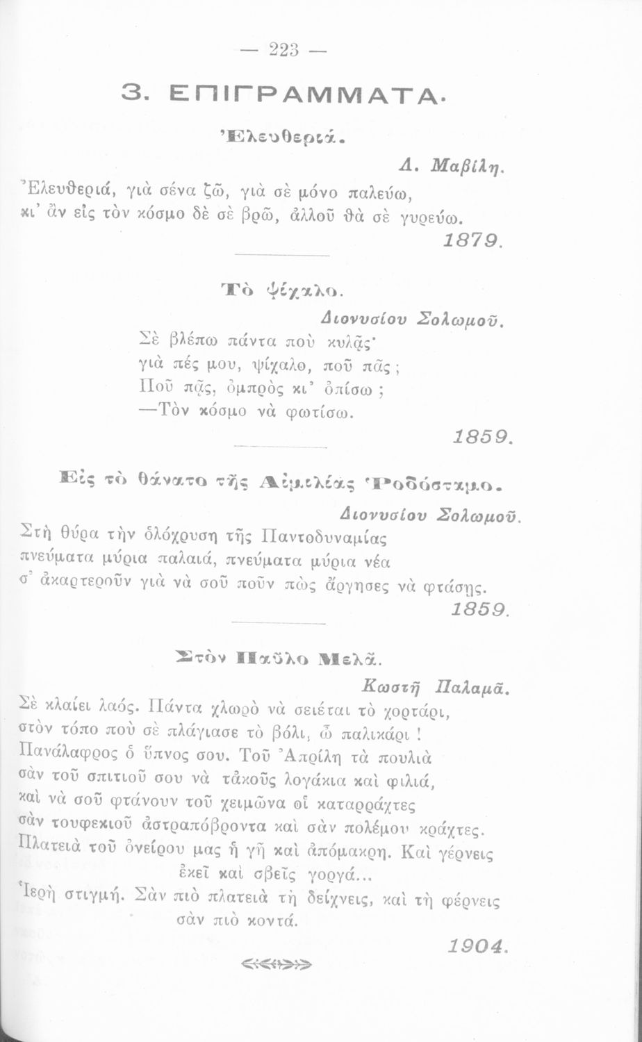 Σχετιζόμενοι όροι:  Κρυστάλλης, Παλαμάς, Σολωμός, Δροσίνης
