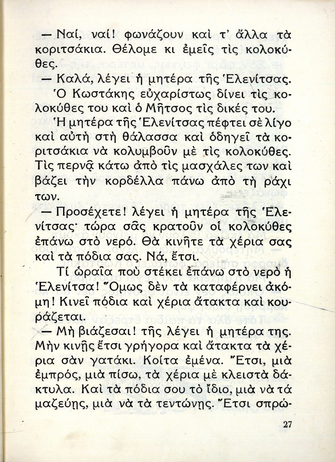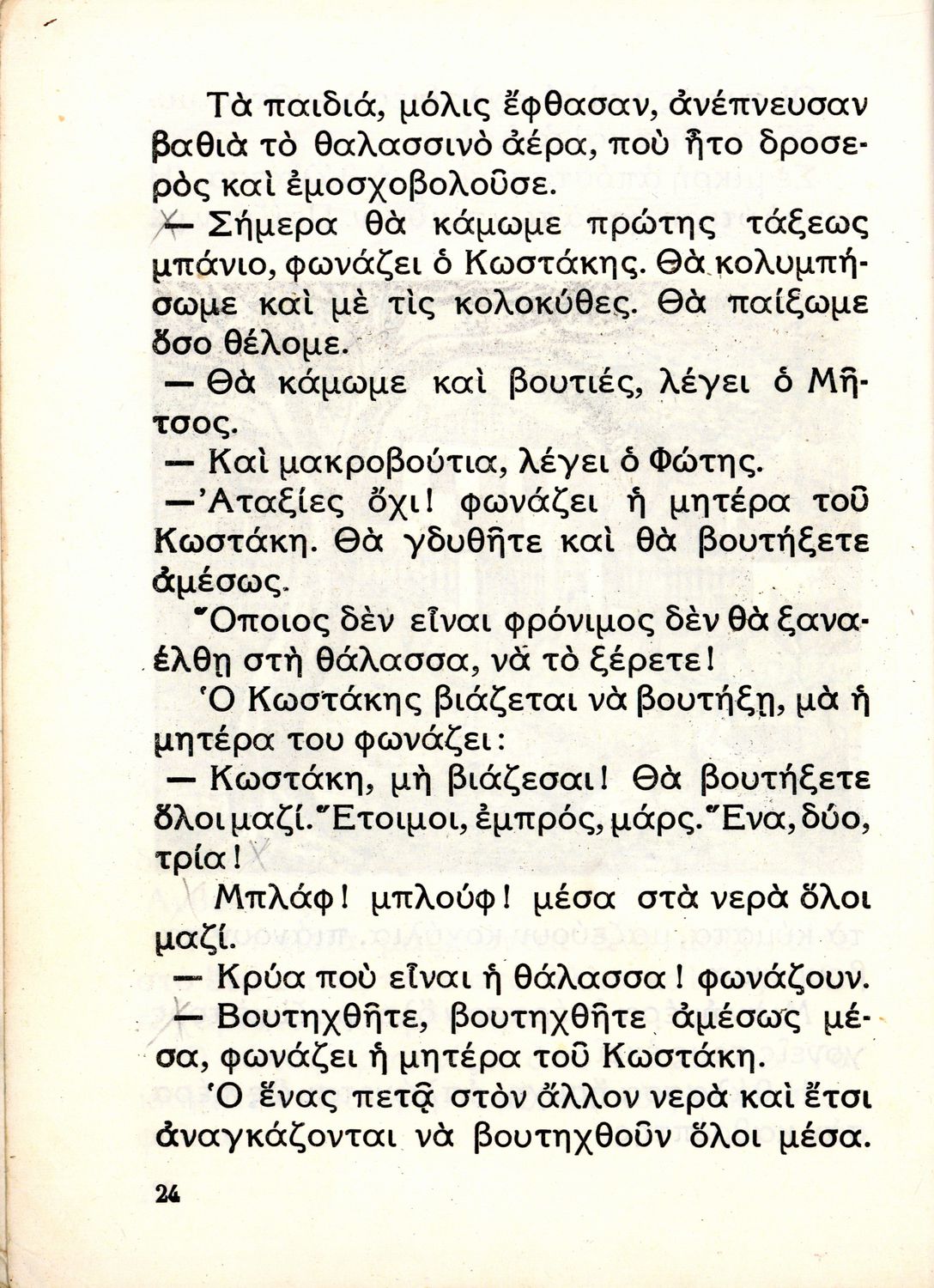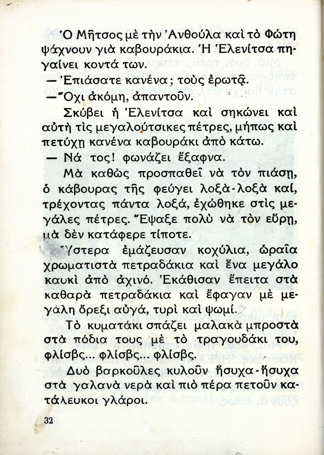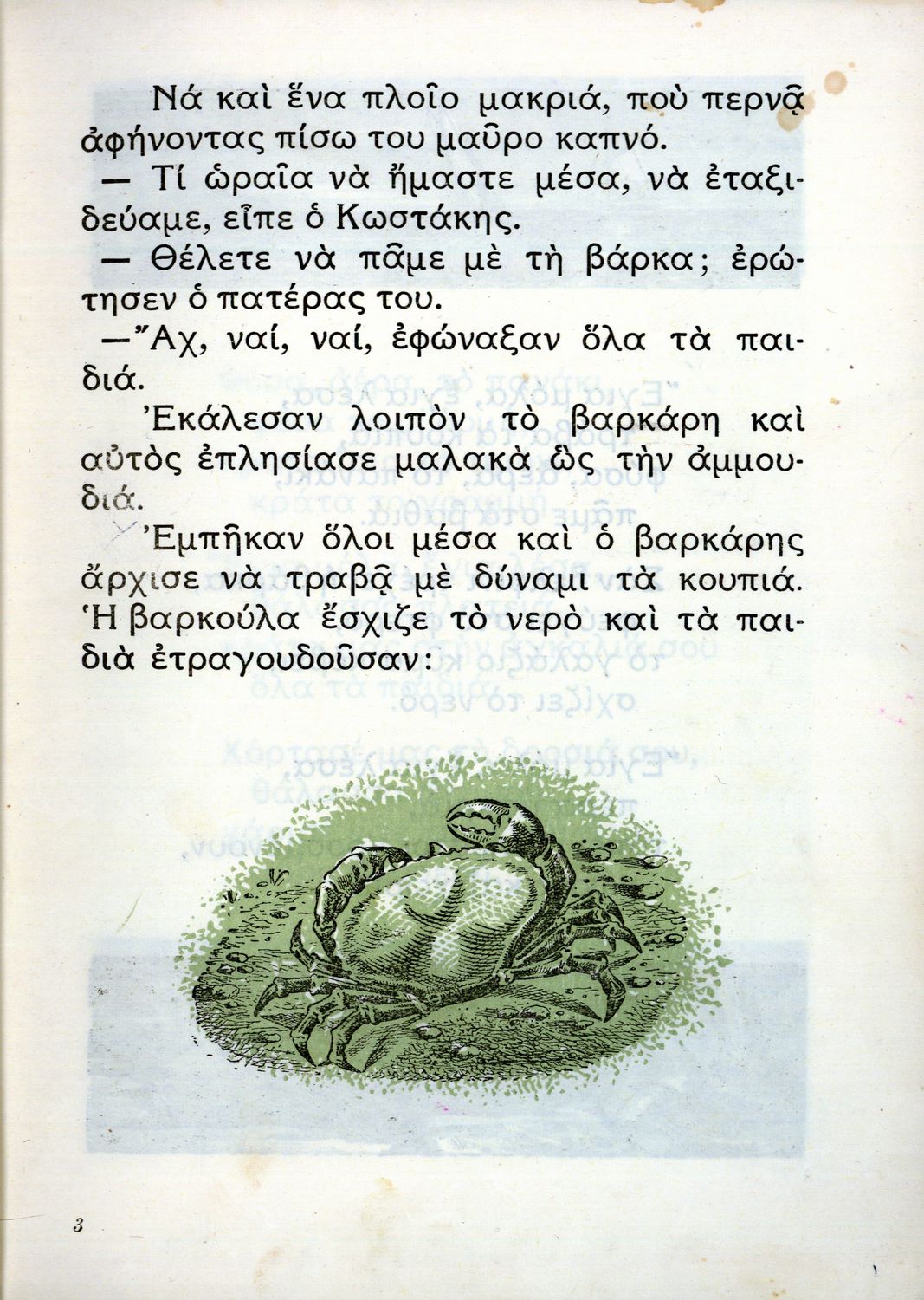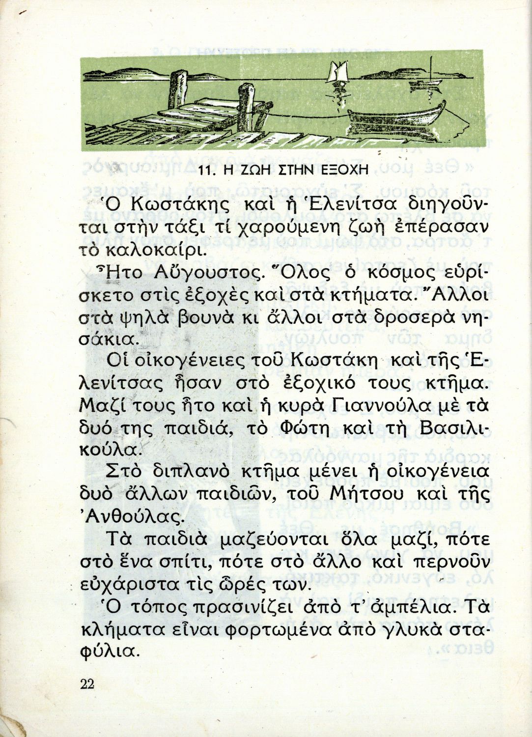 Αναγνωστικό της Γ΄ Δημοτικού που περιλαμβάνει μικρές ιστορίες εθνικιστικού περιεχομένου εμπνευσμένες από την ύπαιθρο, την οικογενειακή και κοινωνική ζωή αλλά και το εθνικό παρελθόν.