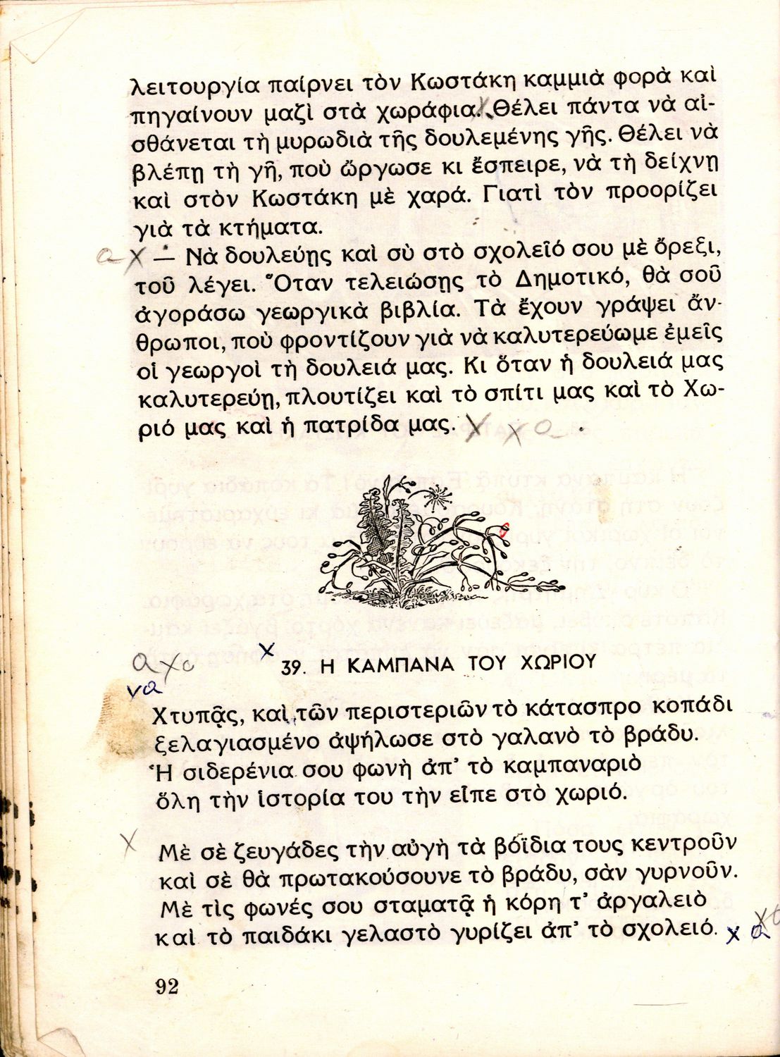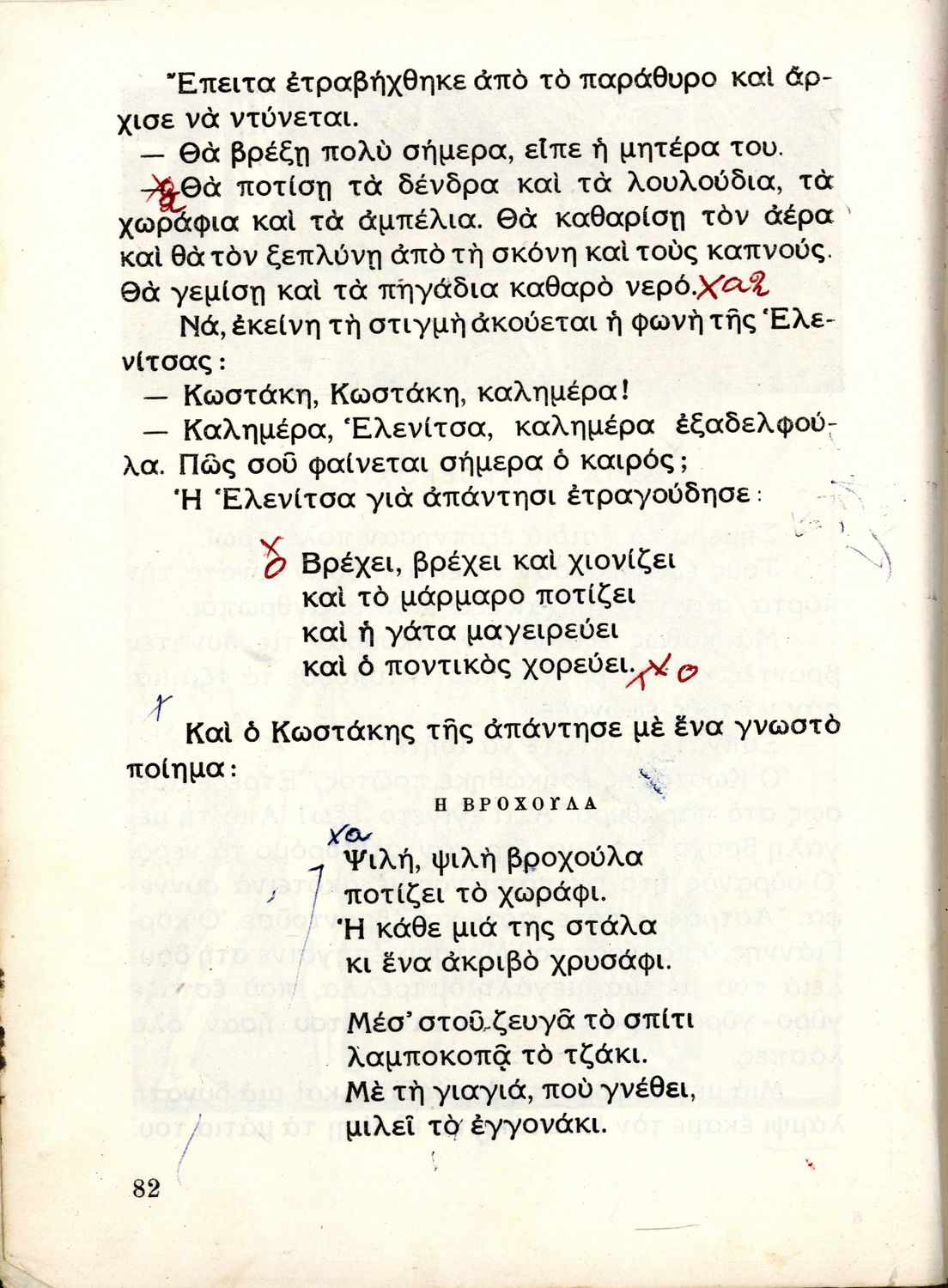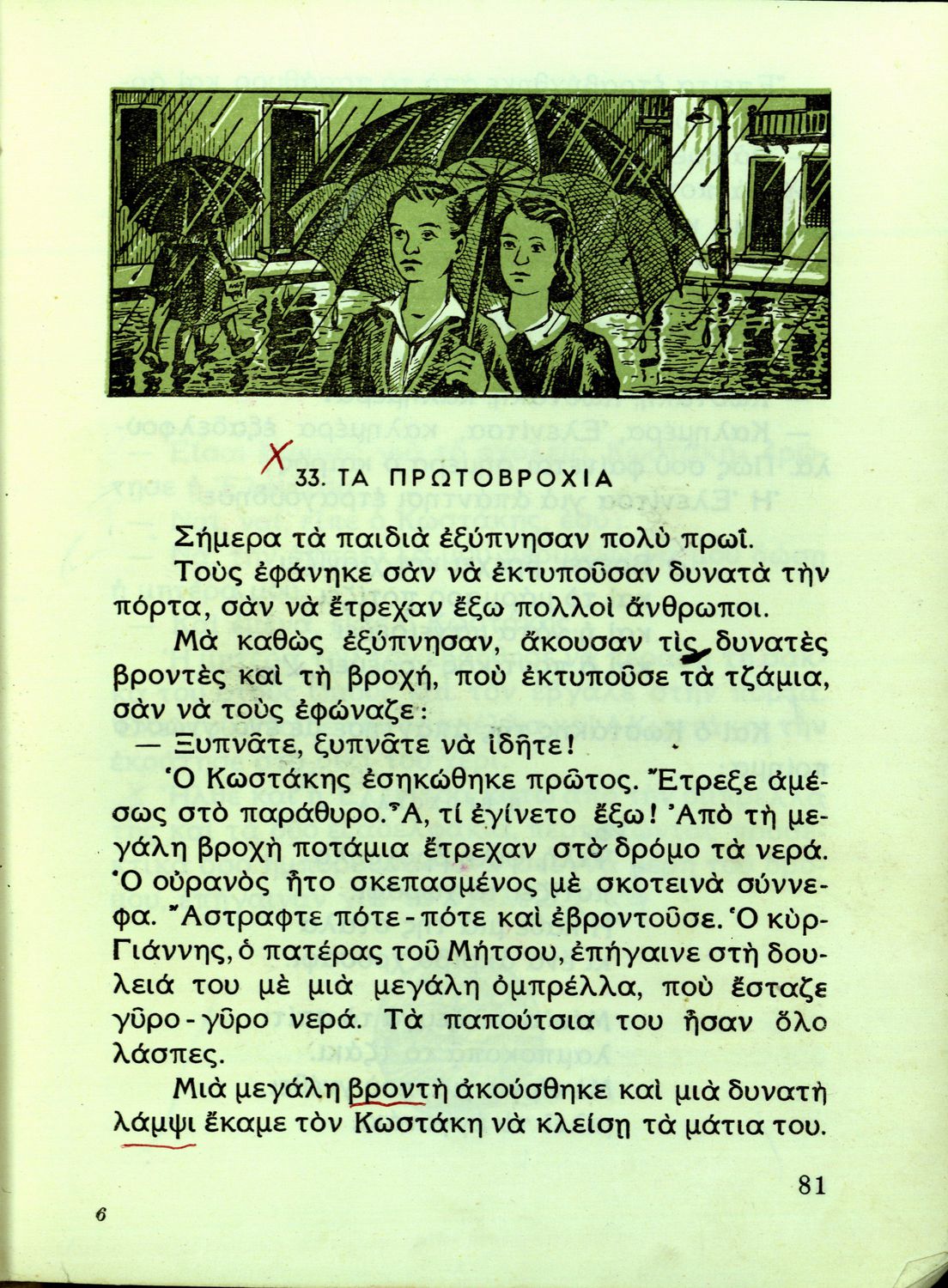 Αναγνωστικό της Γ΄ Δημοτικού που περιλαμβάνει μικρές ιστορίες εθνικιστικού περιεχομένου εμπνευσμένες από την ύπαιθρο, την οικογενειακή και κοινωνική ζωή αλλά και το εθνικό παρελθόν.