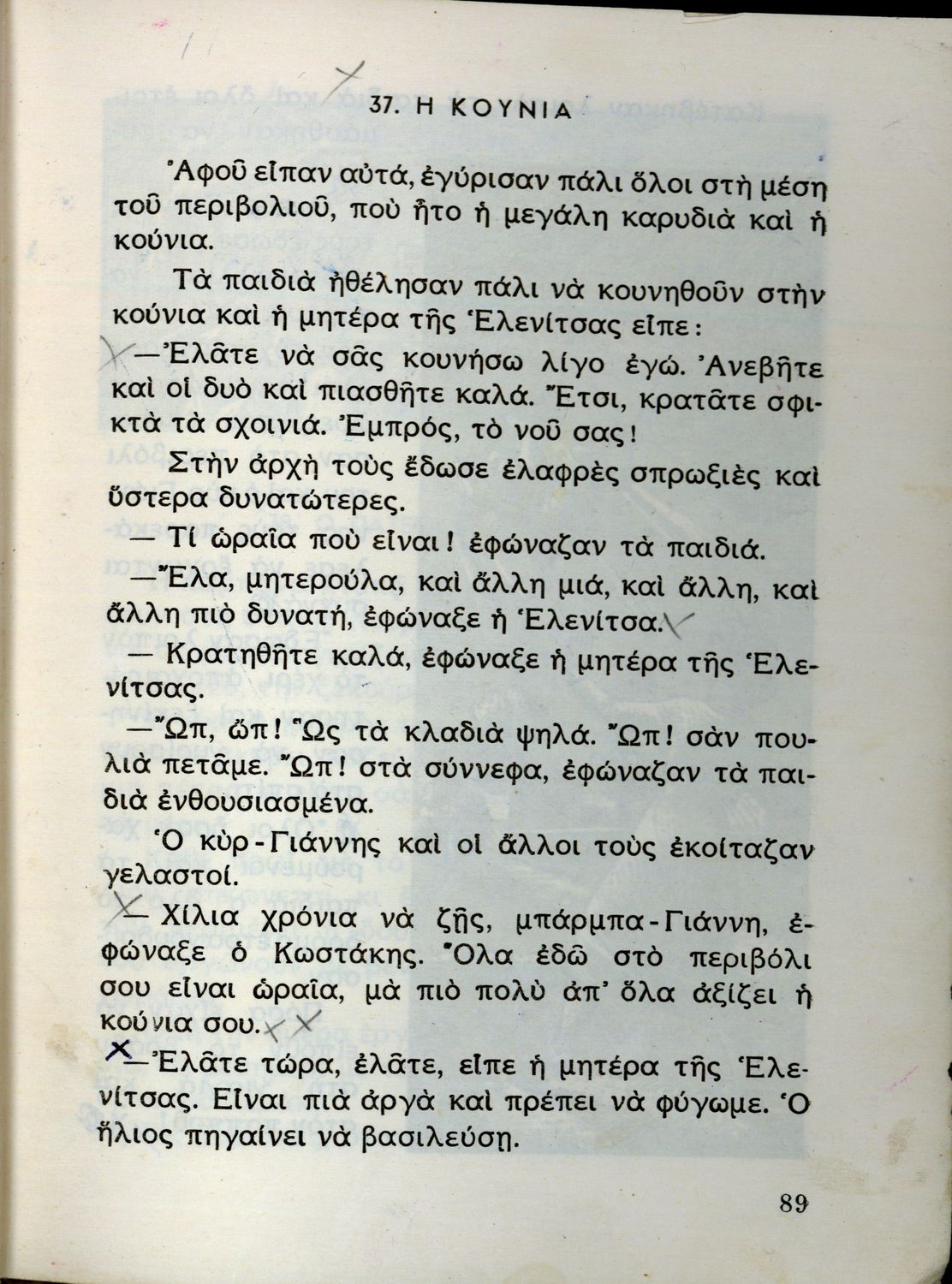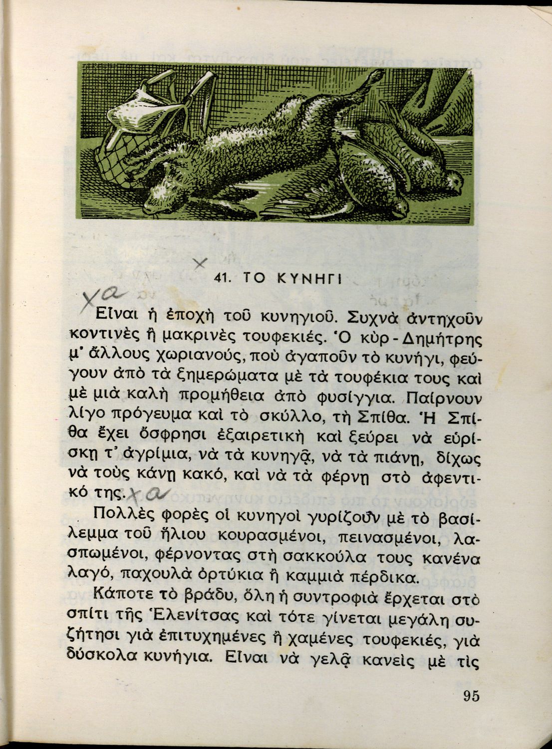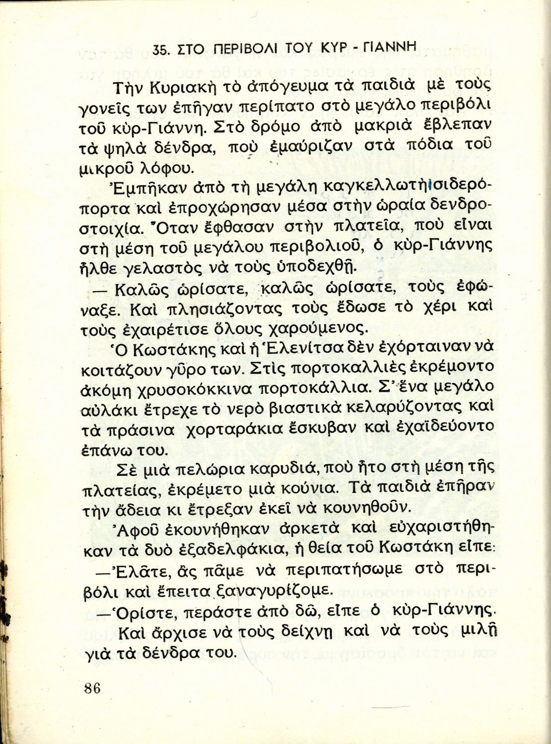 Αναγνωστικό της Γ΄ Δημοτικού που περιλαμβάνει μικρές ιστορίες εθνικιστικού περιεχομένου εμπνευσμένες από την ύπαιθρο, την οικογενειακή και κοινωνική ζωή αλλά και το εθνικό παρελθόν.