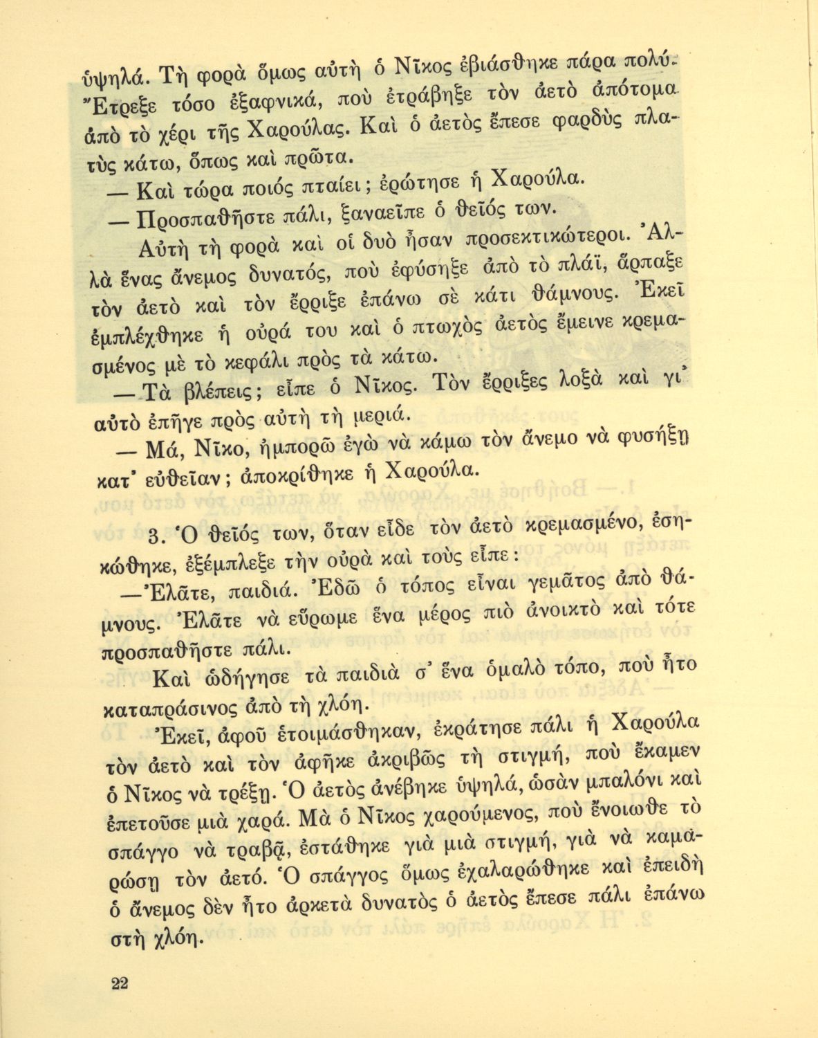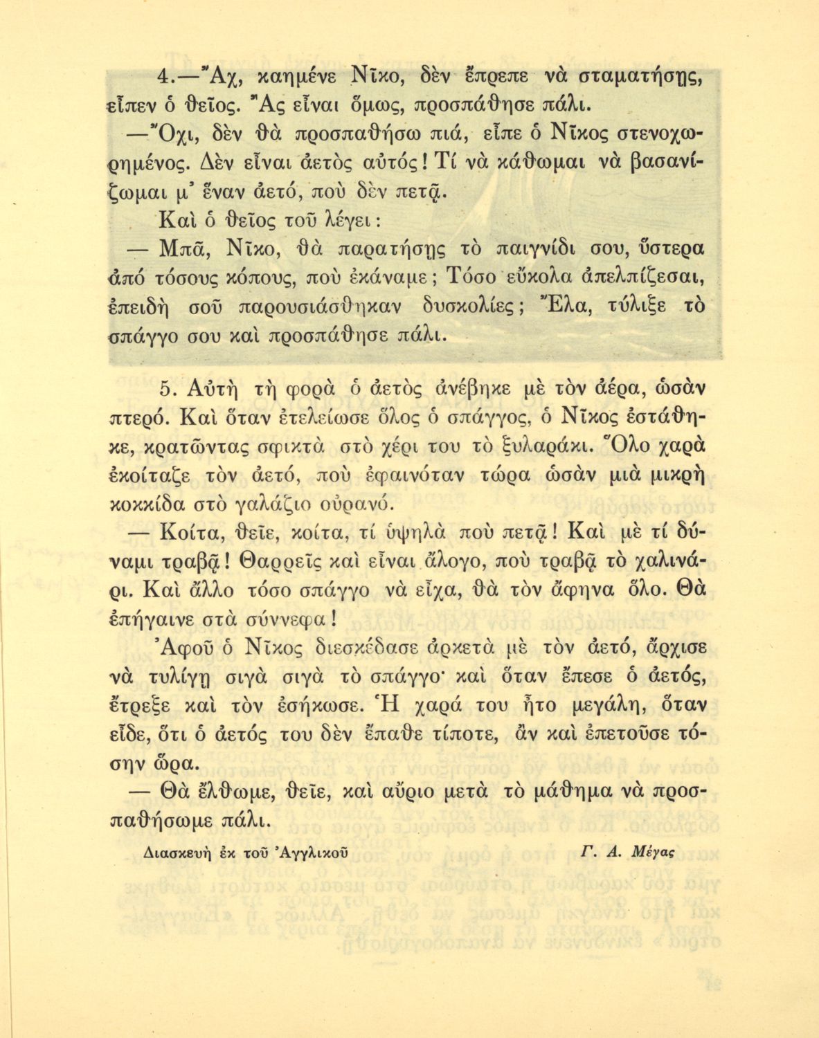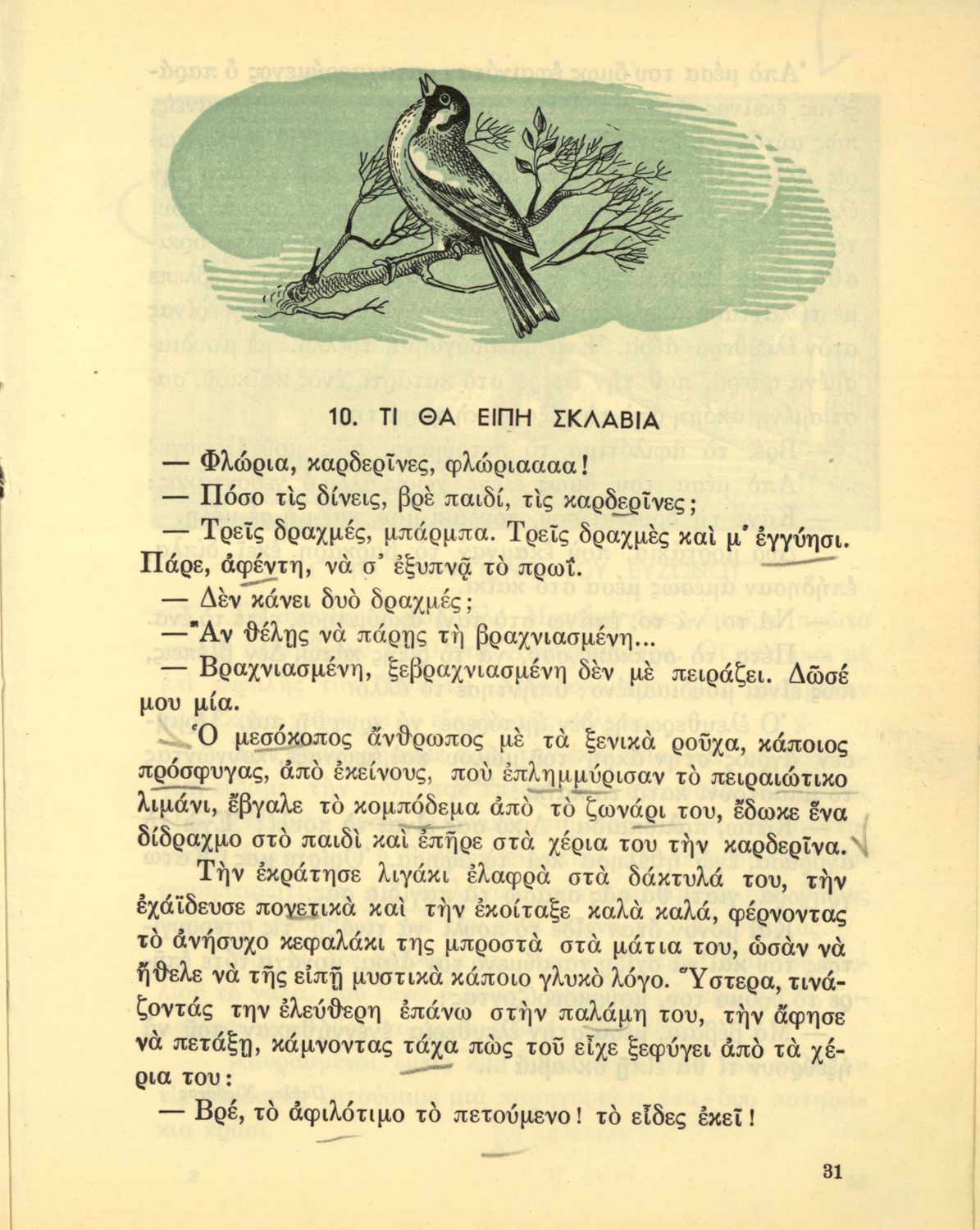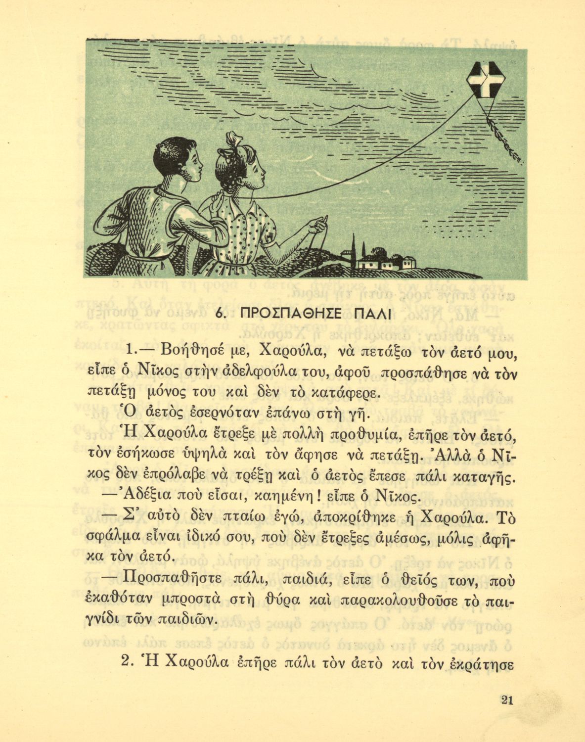 Αναγνωστικό Δ' Δημοτικού που είναι χωρισμένο σύμφωνα με τις εποχές του χρόνου και περιλαμβάνει ποιήματα και πεζά εμπνευσμένα από τη ζωή στην ύπαιθρο, την εθνική, οικογενειακή και κοινωνική ζωή, τη θρησκευτική παράδοση, τις ασχολίες των ανθρώπων, και την ελληνική φύση, ιστορία και μυθολογία.