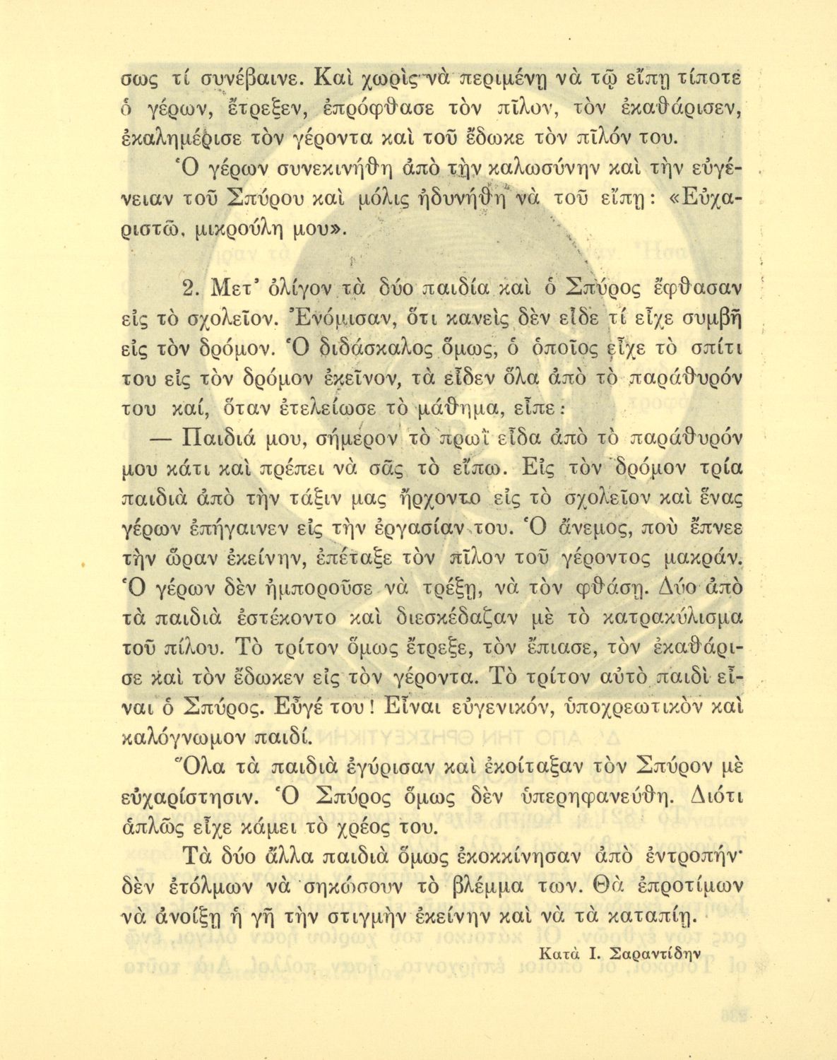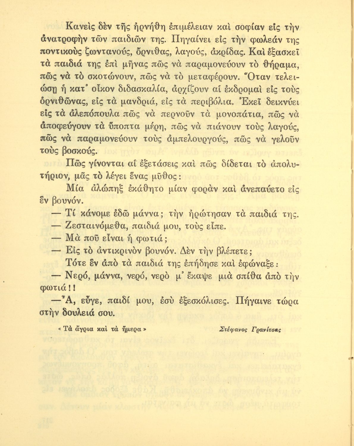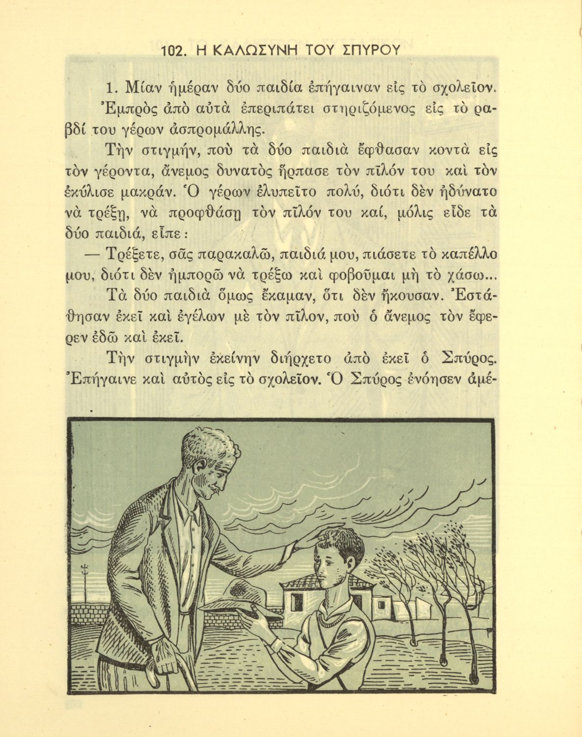 Αναγνωστικό Δ' Δημοτικού που είναι χωρισμένο σύμφωνα με τις εποχές του χρόνου και περιλαμβάνει ποιήματα και πεζά εμπνευσμένα από τη ζωή στην ύπαιθρο, την εθνική, οικογενειακή και κοινωνική ζωή, τη θρησκευτική παράδοση, τις ασχολίες των ανθρώπων, και την ελληνική φύση, ιστορία και μυθολογία.