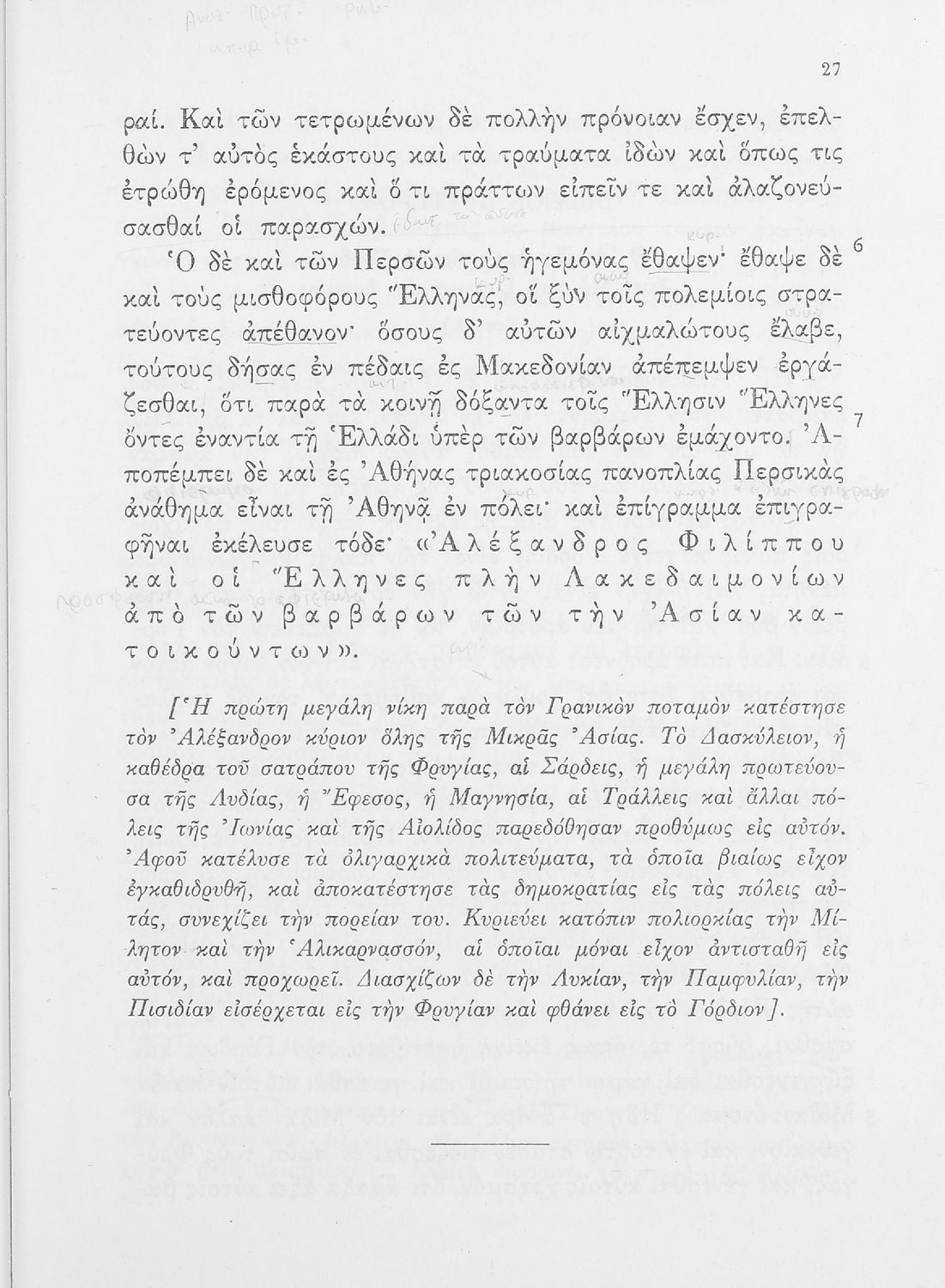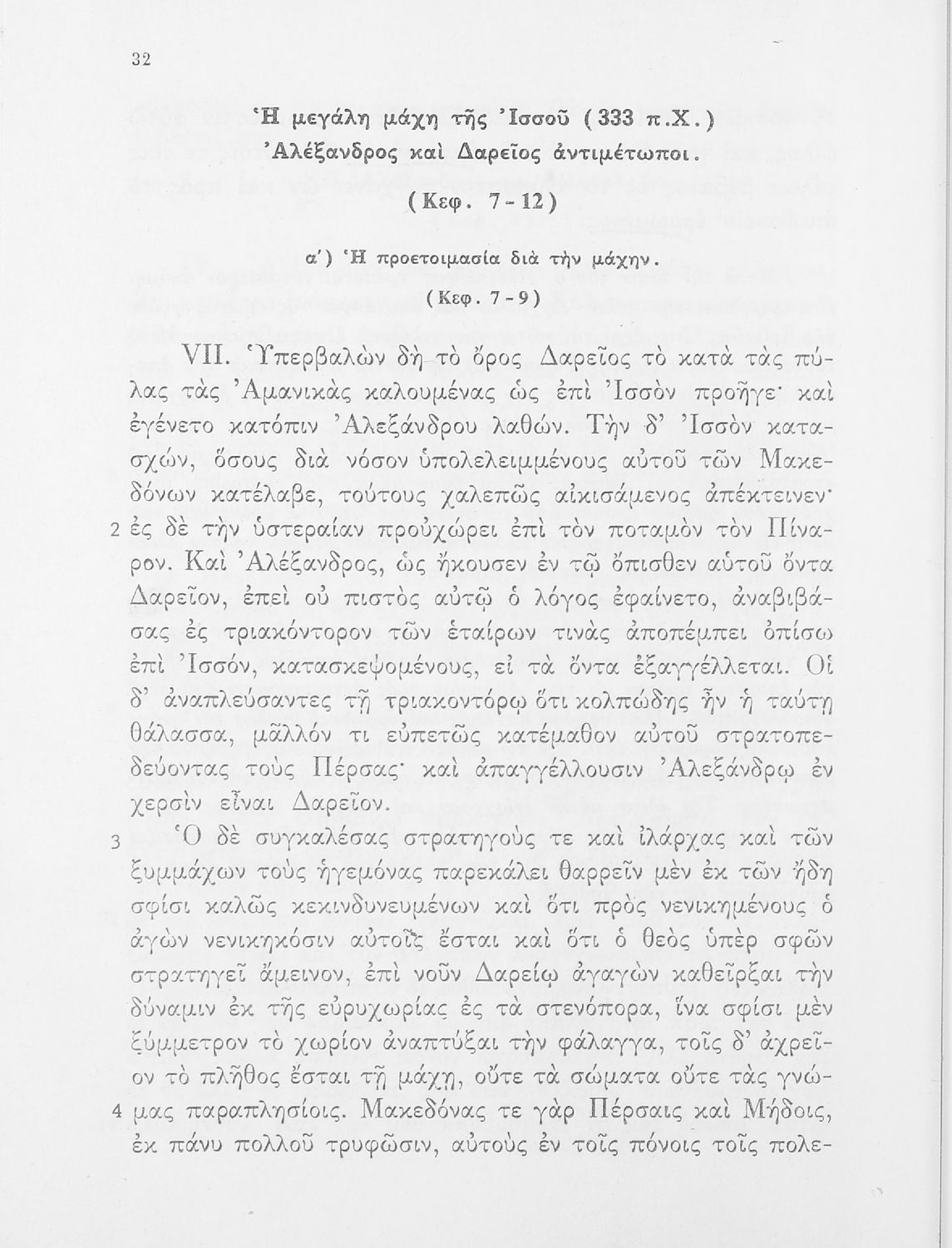 Σχολικό εγχειρίδιο Αρχαίων Ελληνικών που περιλαμβάνει αποσπάσματα από το έργο του Αρριανού Αλέξανδρου Ανάβασις και του Ηρόδοτου Ιστορίαι, ερμηνευτικές και λεξιλογικές παρατηρήσεις καθώς και τοπογραφικούς ...