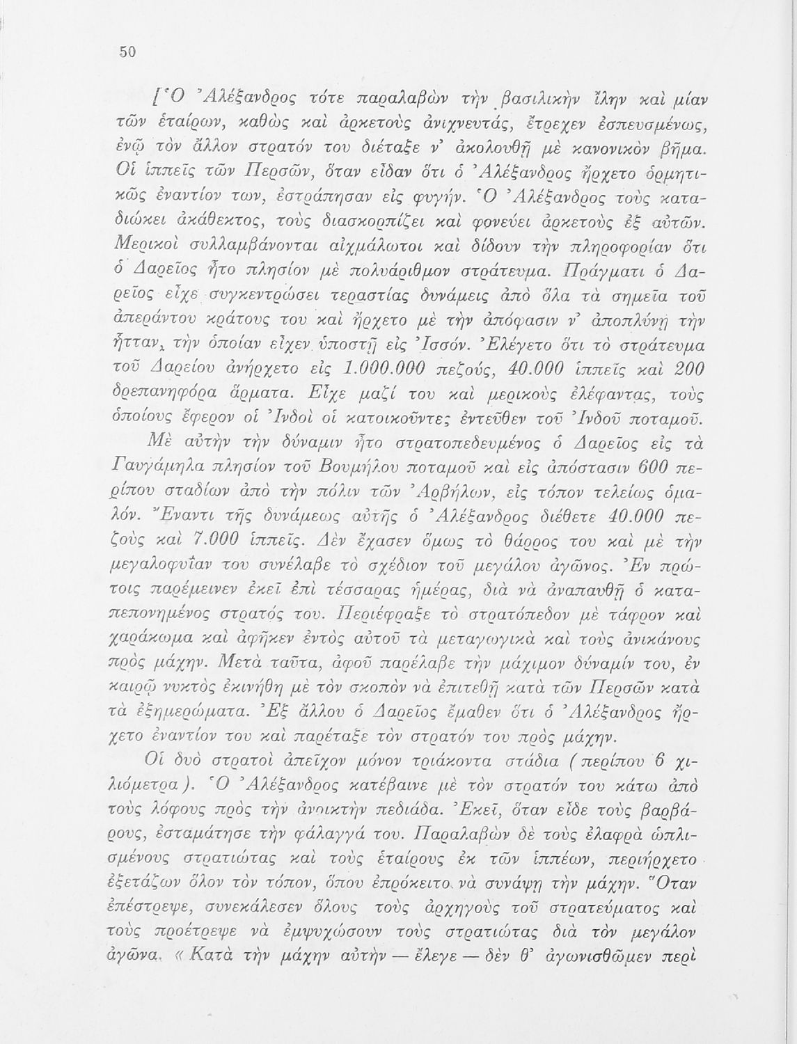 Σχολικό εγχειρίδιο Αρχαίων Ελληνικών που περιλαμβάνει αποσπάσματα από το έργο του Αρριανού Αλέξανδρου Ανάβασις και του Ηρόδοτου Ιστορίαι, ερμηνευτικές και λεξιλογικές παρατηρήσεις καθώς και τοπογραφικούς ...
