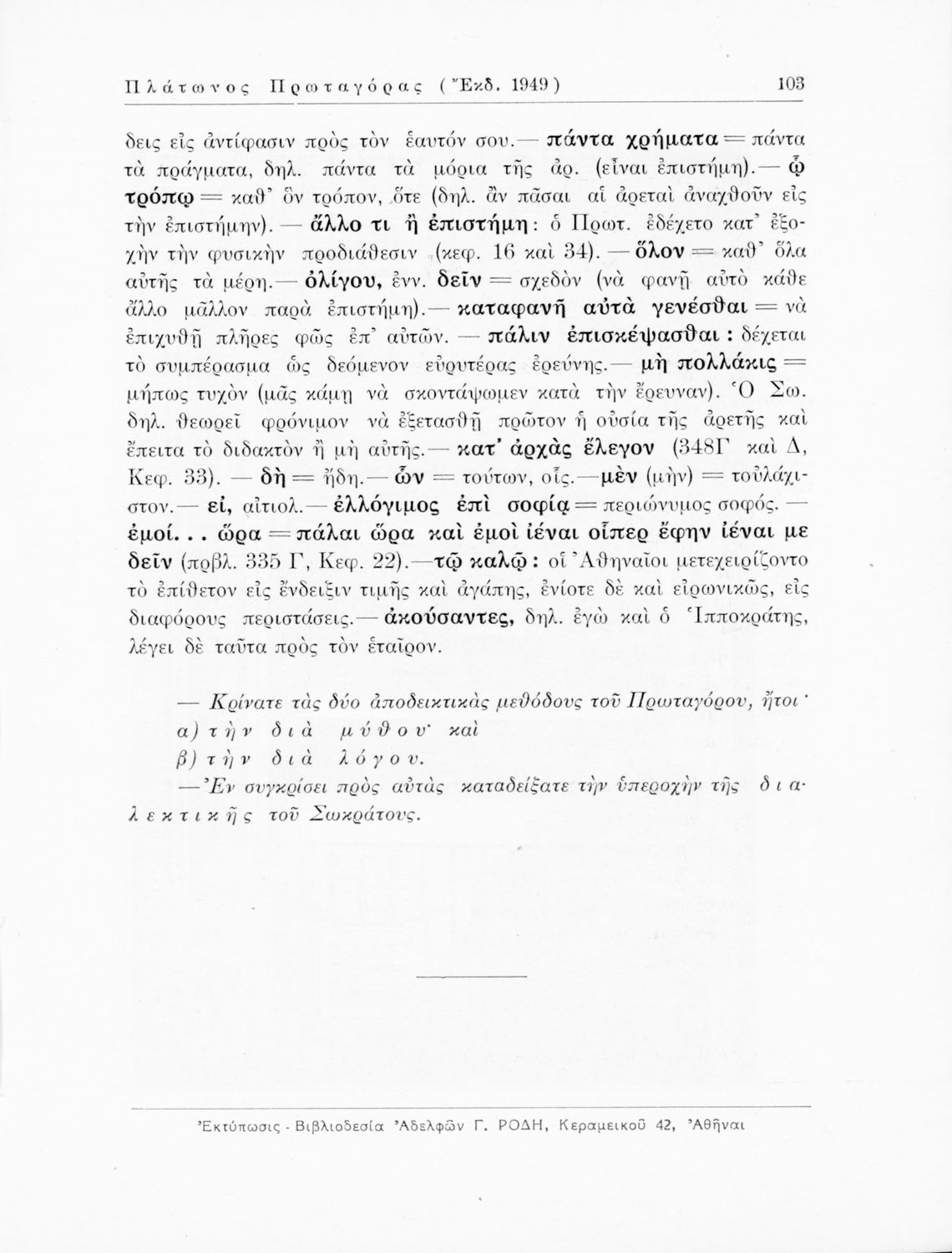 Τίτλος: Πλάτωνος Πρωταγόρας. Δια την ΣΤ΄ Τάξιν Εξατάξιων Γυμνασίων