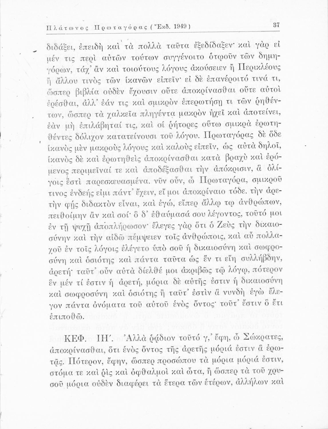 Τίτλος: Πλάτωνος Πρωταγόρας. Δια την ΣΤ΄ Τάξιν Εξατάξιων Γυμνασίων