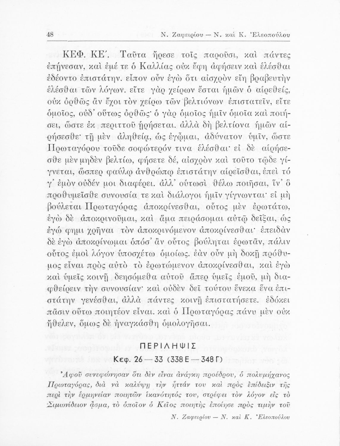 Πλάτων, Νικ. Ζαφειρίου, Νικ., Ελεόπουλος (σχόλια), Καλλ. Ελεοπούλου (σχόλια)