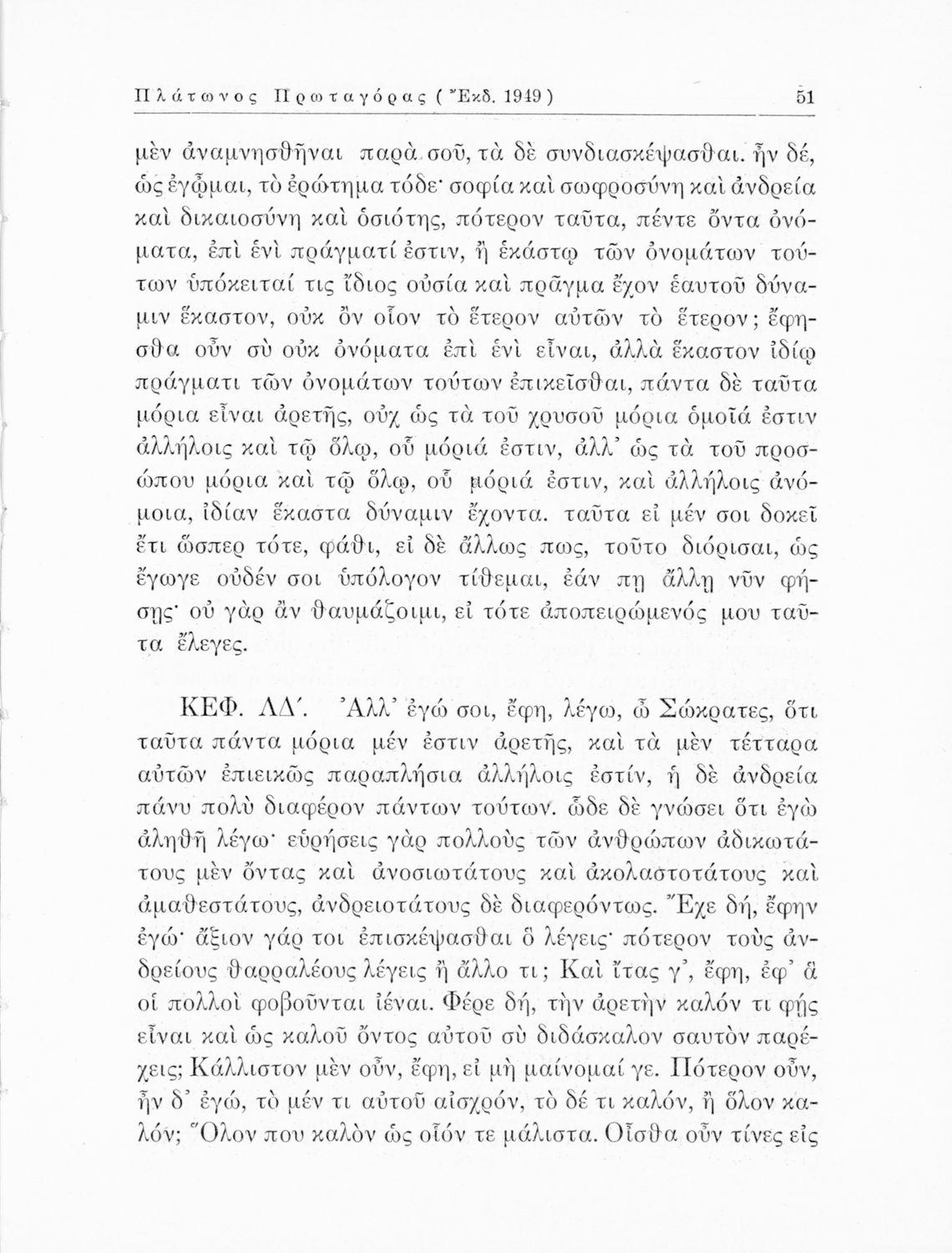 Πλάτωνος Πρωταγόρας. Δια την ΣΤ΄ Τάξιν Εξατάξιων Γυμνασίων