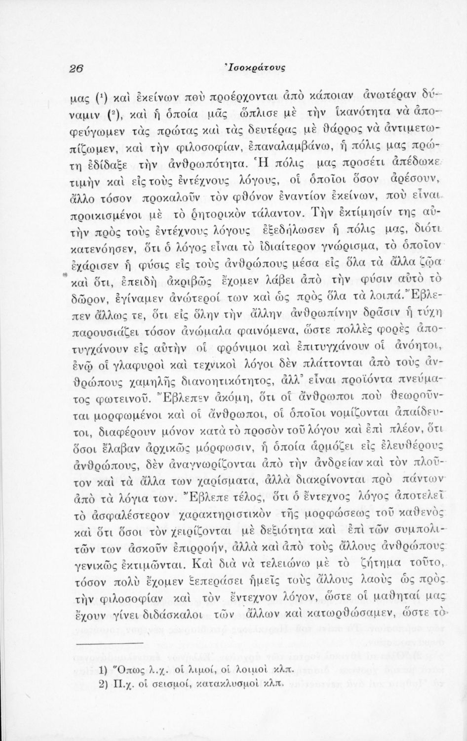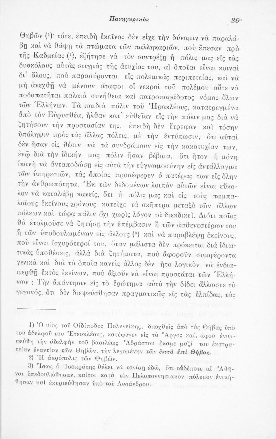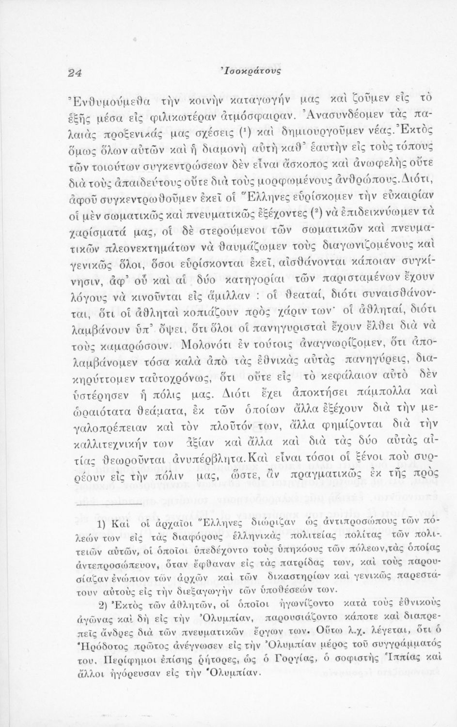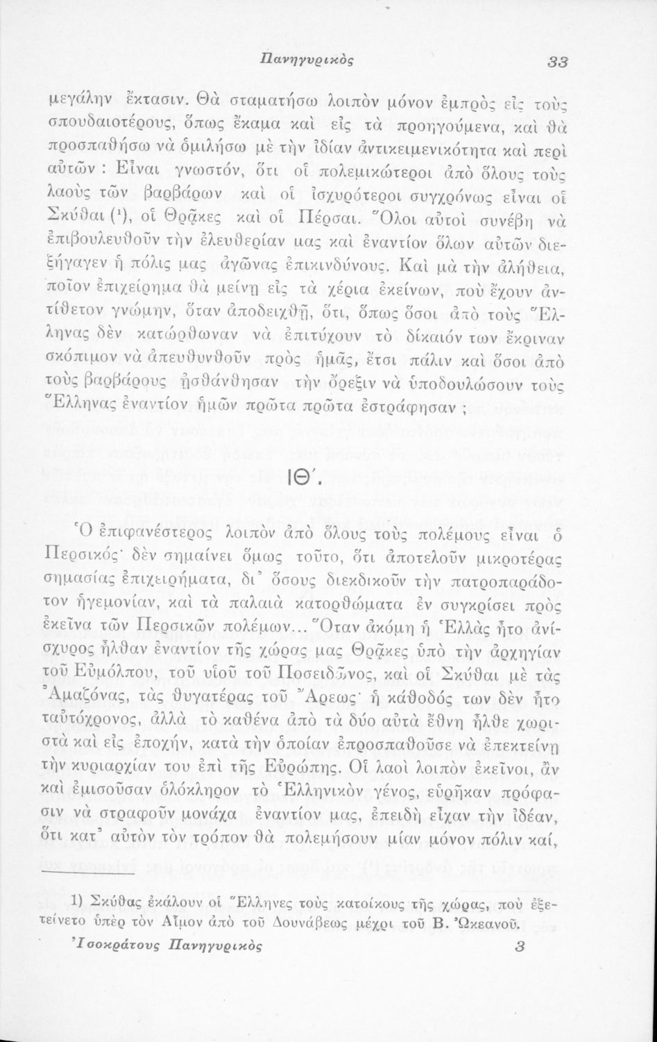 Μαθητικό βοήθημα Αρχαίων Ελληνικών που περιλαμβάνει μετάφραση του Λόγου του Ισοκράτη Πανηγυρικός και ερμηνευτικές σημειώσεις.