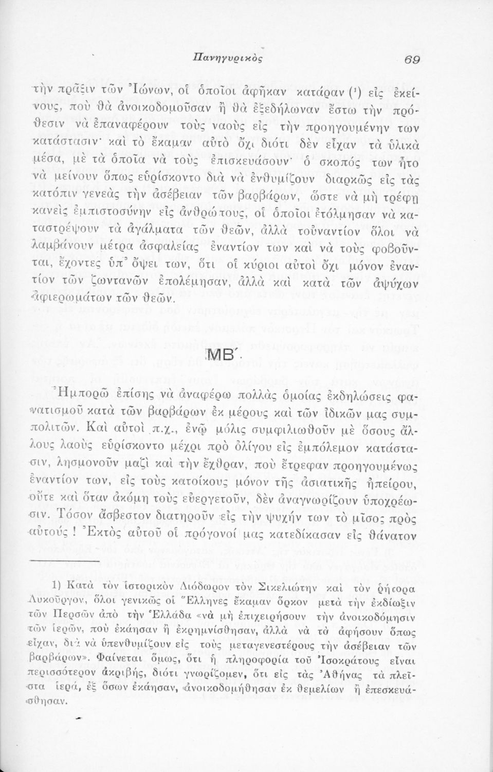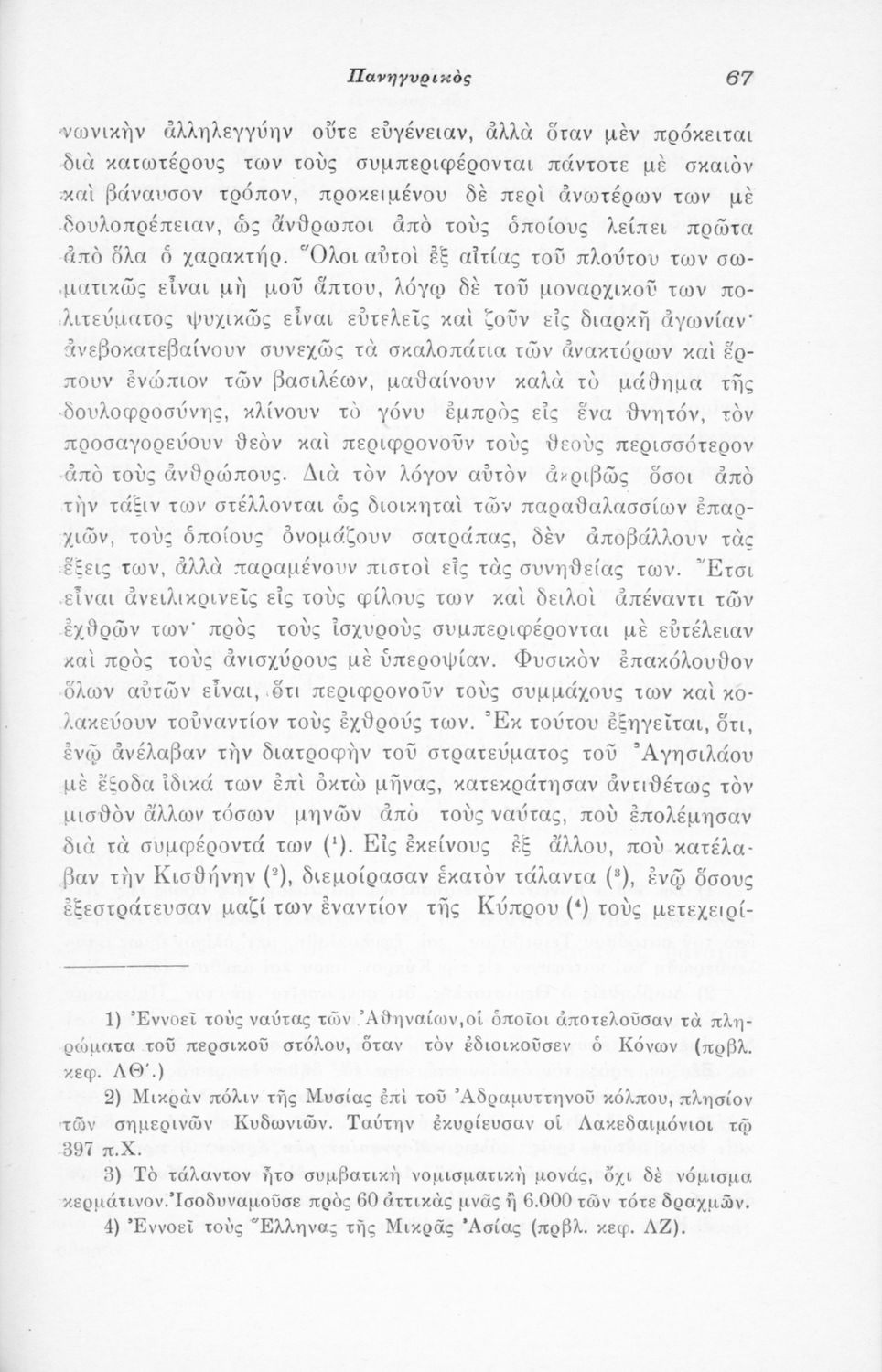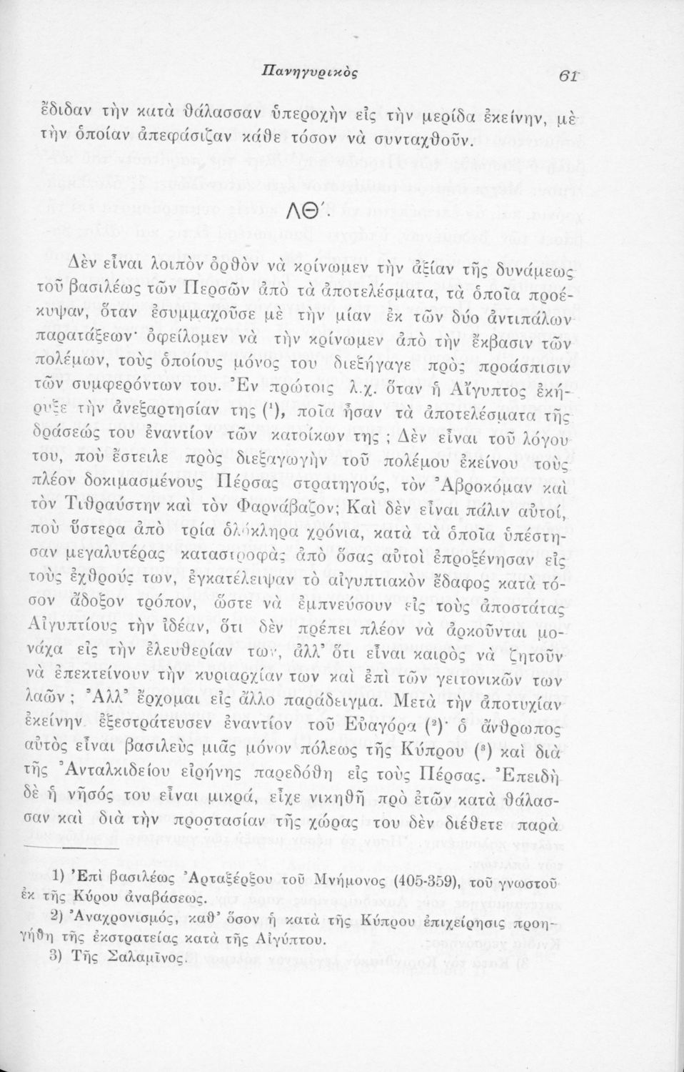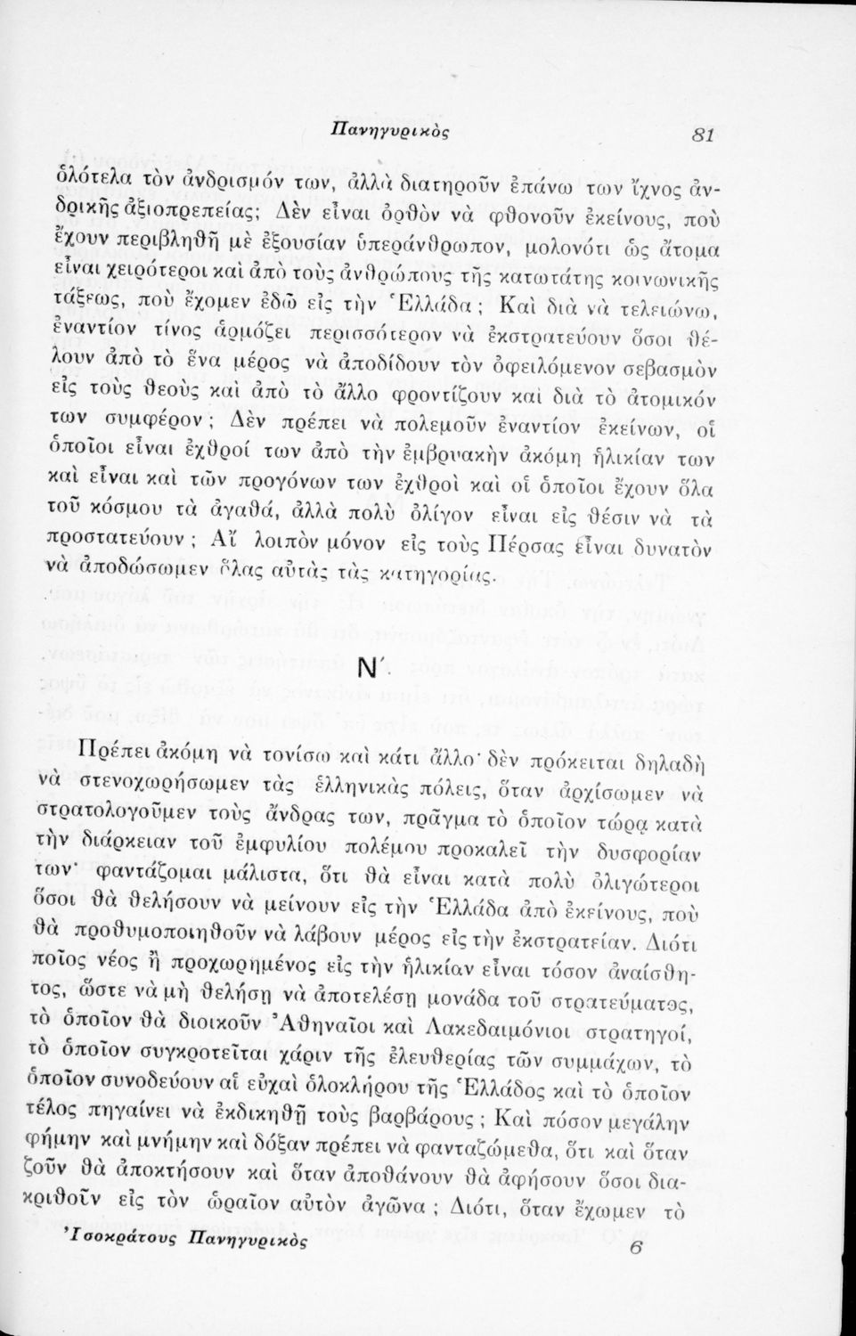 Μαθητικό βοήθημα Αρχαίων Ελληνικών που περιλαμβάνει μετάφραση του Λόγου του Ισοκράτη Πανηγυρικός και ερμηνευτικές σημειώσεις.