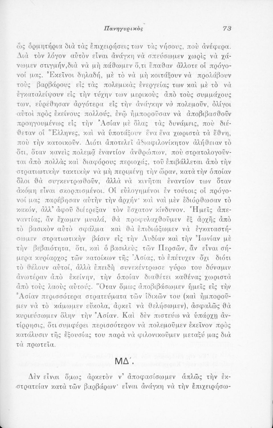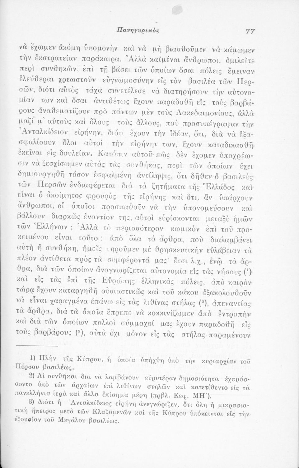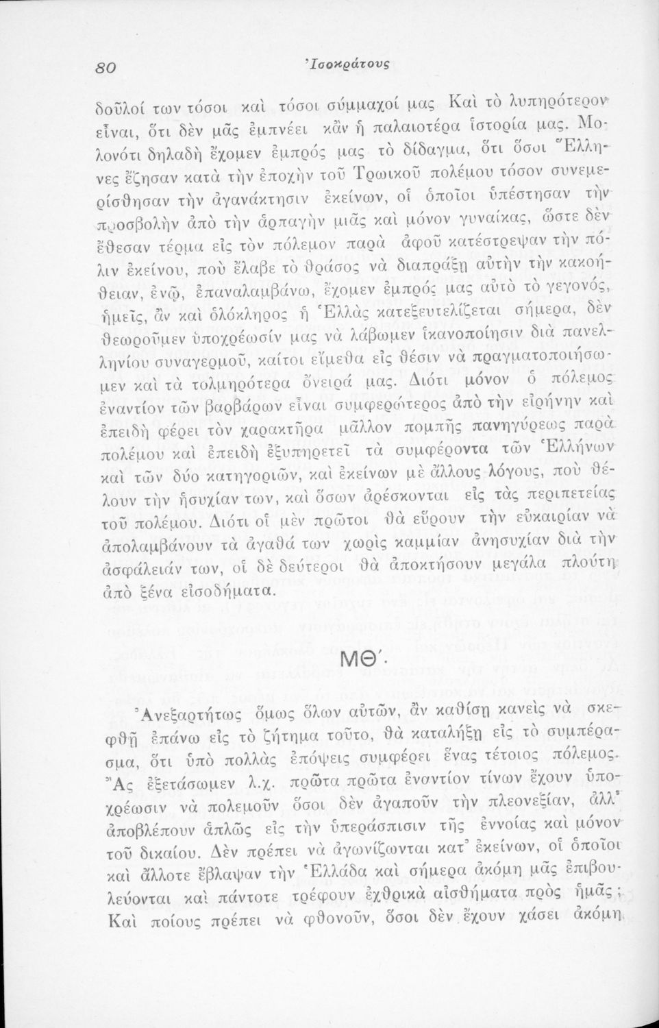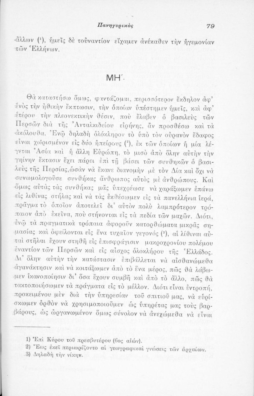 Μαθητικό βοήθημα Αρχαίων Ελληνικών που περιλαμβάνει μετάφραση του Λόγου του Ισοκράτη Πανηγυρικός και ερμηνευτικές σημειώσεις.