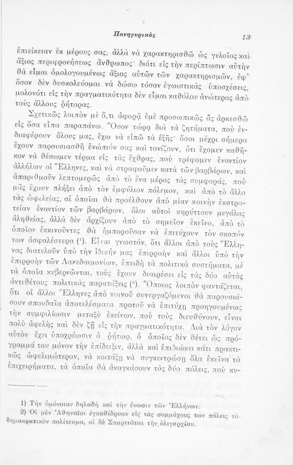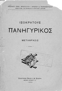 Μαθητικό βοήθημα Αρχαίων Ελληνικών που περιλαμβάνει μετάφραση του Λόγου του Ισοκράτη Πανηγυρικός και ερμηνευτικές σημειώσεις.