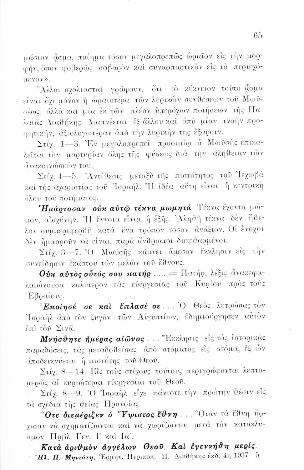 Τίτλος: Ερμηνεία Περικοπών εκ της Παλαιάς Διαθήκης δια την Δ΄ τάξιν του Γυμνασίου