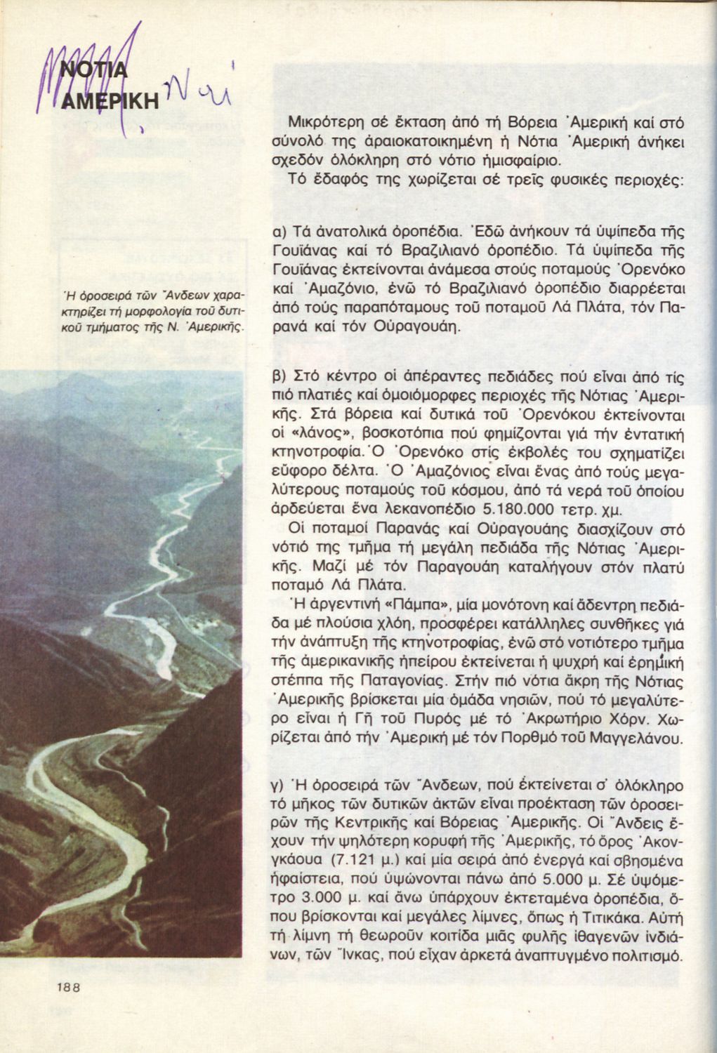 Σχολικό εγχειρίδιο Γεωγραφίας Α΄ και Γ΄ Γυμνασίου που περιλαμβάνει εισαγωγή στη φυσική γεωγραφία και εξετάζει ενδεικτικές χώρες και περιοχές από τις πέντε ηπείρους εκτός της Ευρώπης από γεωφυσική και οικονομική πλευρά.