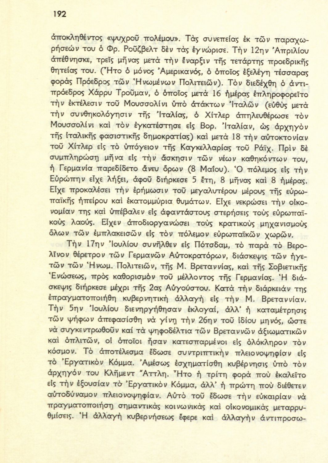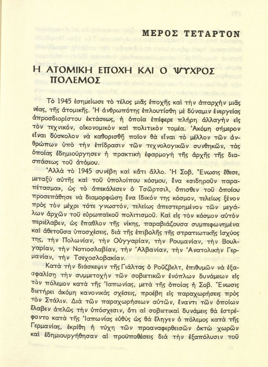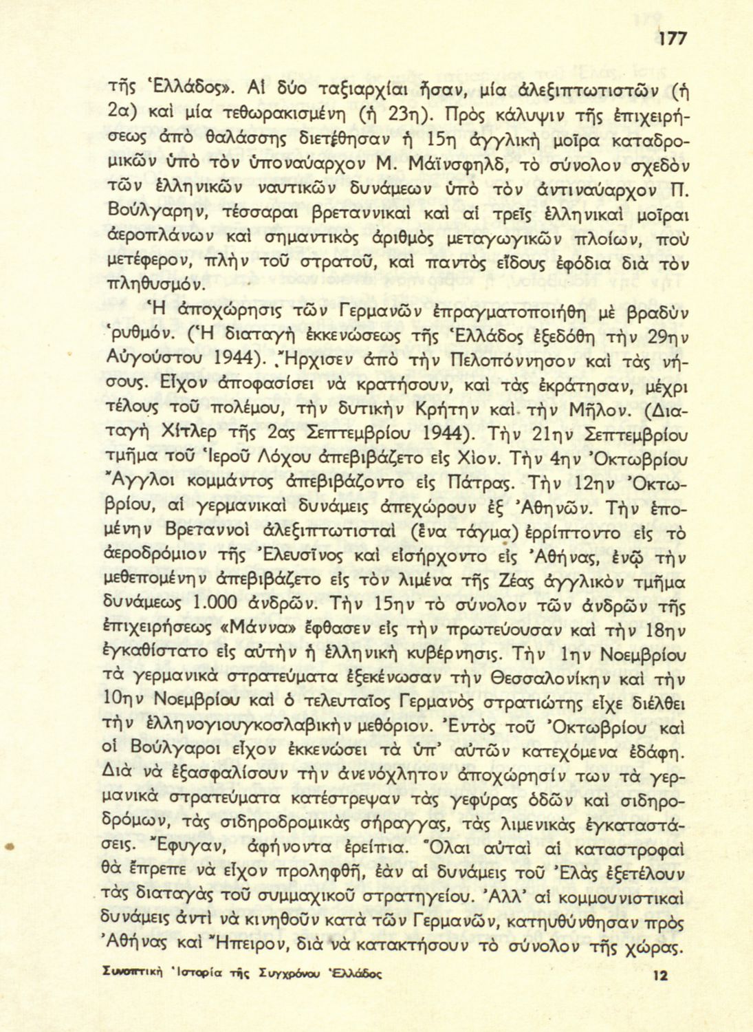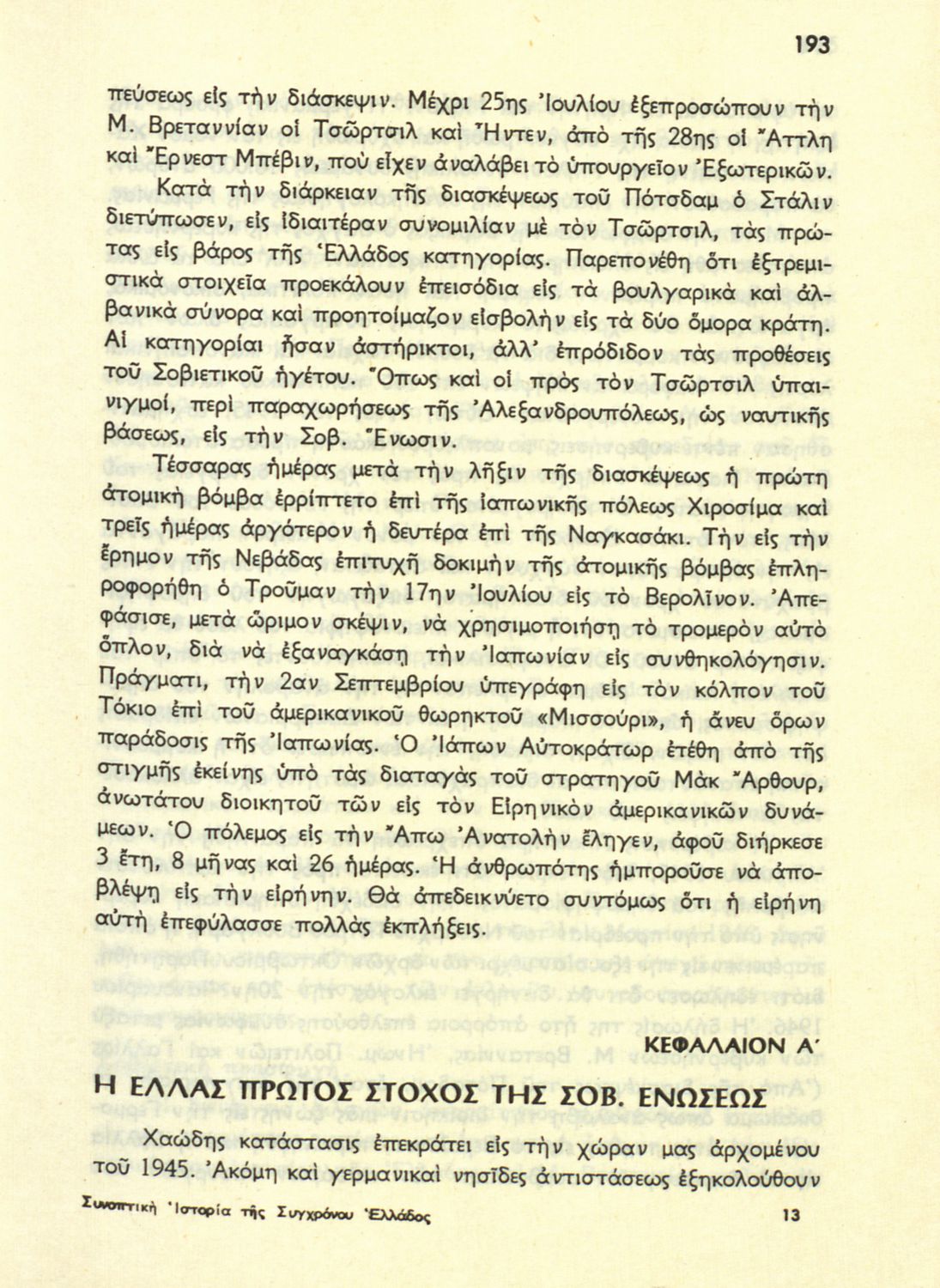 Βαθμίδα εκπαίδευσης: Δευτεροβάθμια Μάθημα: Ιστορία Γλώσσα: Απλή καθαρεύουσα Παρουσίαση περιεχομένου: Σχολικό εγχειρίδιο για το μάθημα της Ιστορίας στην Δευτεροβάθμια Εκπαίδευση. Αναφέρεται στη συμμετοχή της Ελλάδας στον Α΄ Παγκόσμιο πόλεμο. Συνεχίζει με την παρουσίαση της κοινωνικής, οικονομικής και πολιτικής κατάσταση της Ελλάδας την περίοδο του Μεσοπολέμου, συνεχίζει με το Β΄ Παγκόσμιο Πόλεμο και παρουσιάζει τις εξελίξεις στον ελλαδικό χώρο κατά την περίοδο του Ψυχρού Πολέμου. |