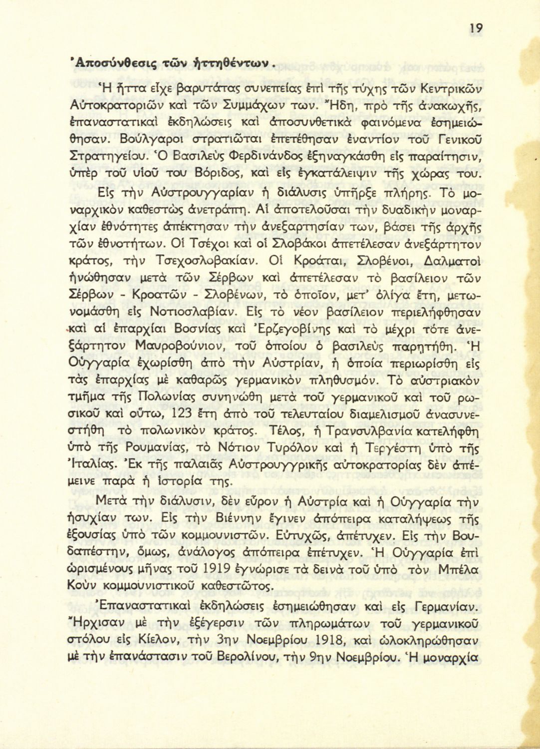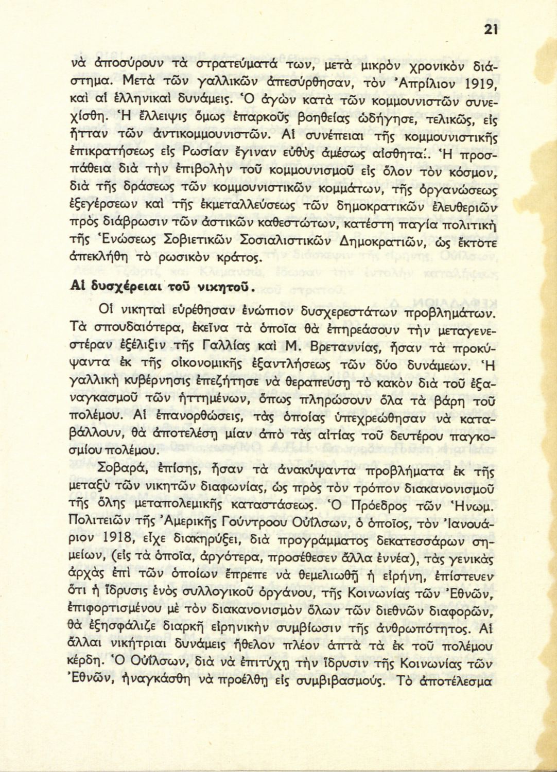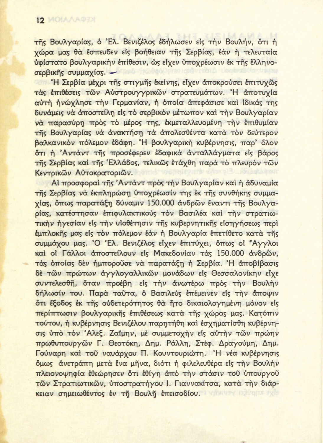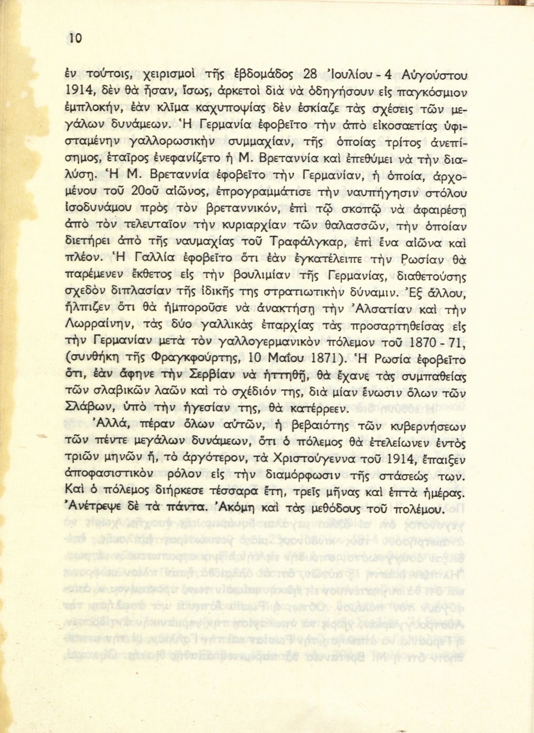 Βαθμίδα εκπαίδευσης: Δευτεροβάθμια Μάθημα: Ιστορία Γλώσσα: Απλή καθαρεύουσα Παρουσίαση περιεχομένου: Σχολικό εγχειρίδιο για το μάθημα της Ιστορίας στην Δευτεροβάθμια Εκπαίδευση. Αναφέρεται στη συμμετοχή της Ελλάδας στον Α΄ Παγκόσμιο πόλεμο. Συνεχίζει με την παρουσίαση της κοινωνικής, οικονομικής και πολιτικής κατάσταση της Ελλάδας την περίοδο του Μεσοπολέμου, συνεχίζει με το Β΄ Παγκόσμιο Πόλεμο και παρουσιάζει τις εξελίξεις στον ελλαδικό χώρο κατά την περίοδο του Ψυχρού Πολέμου. |