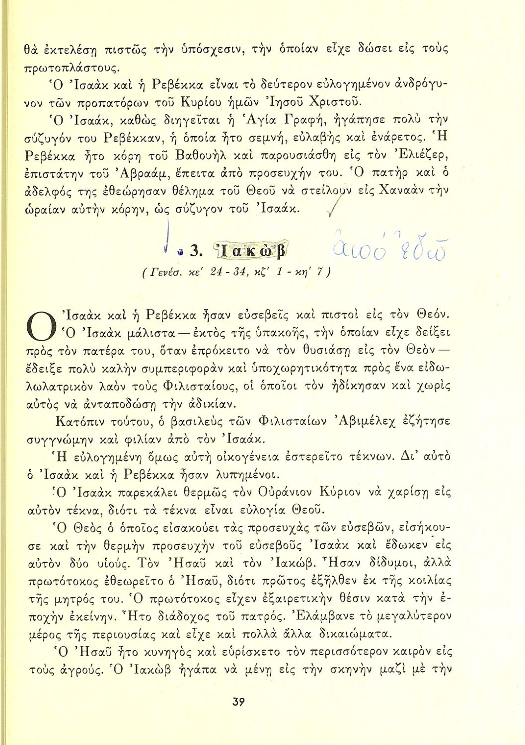 Σχολικό εγχειρίδιο Θρησκευτικών για την Α΄ Γυμνασίου και Πρακτικού Λυκείου που συνιστά μία εξιστόρηση της Παλαιάς Διαθήκης από τη δημιουργία του κόσμου ως την υποταγή των Εβραίων στους Ρωμαίους.