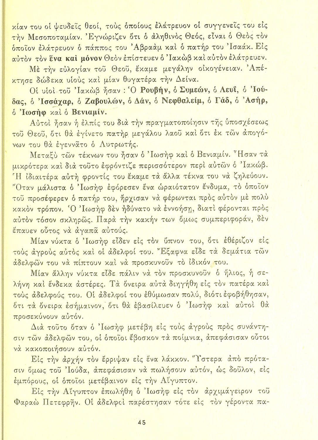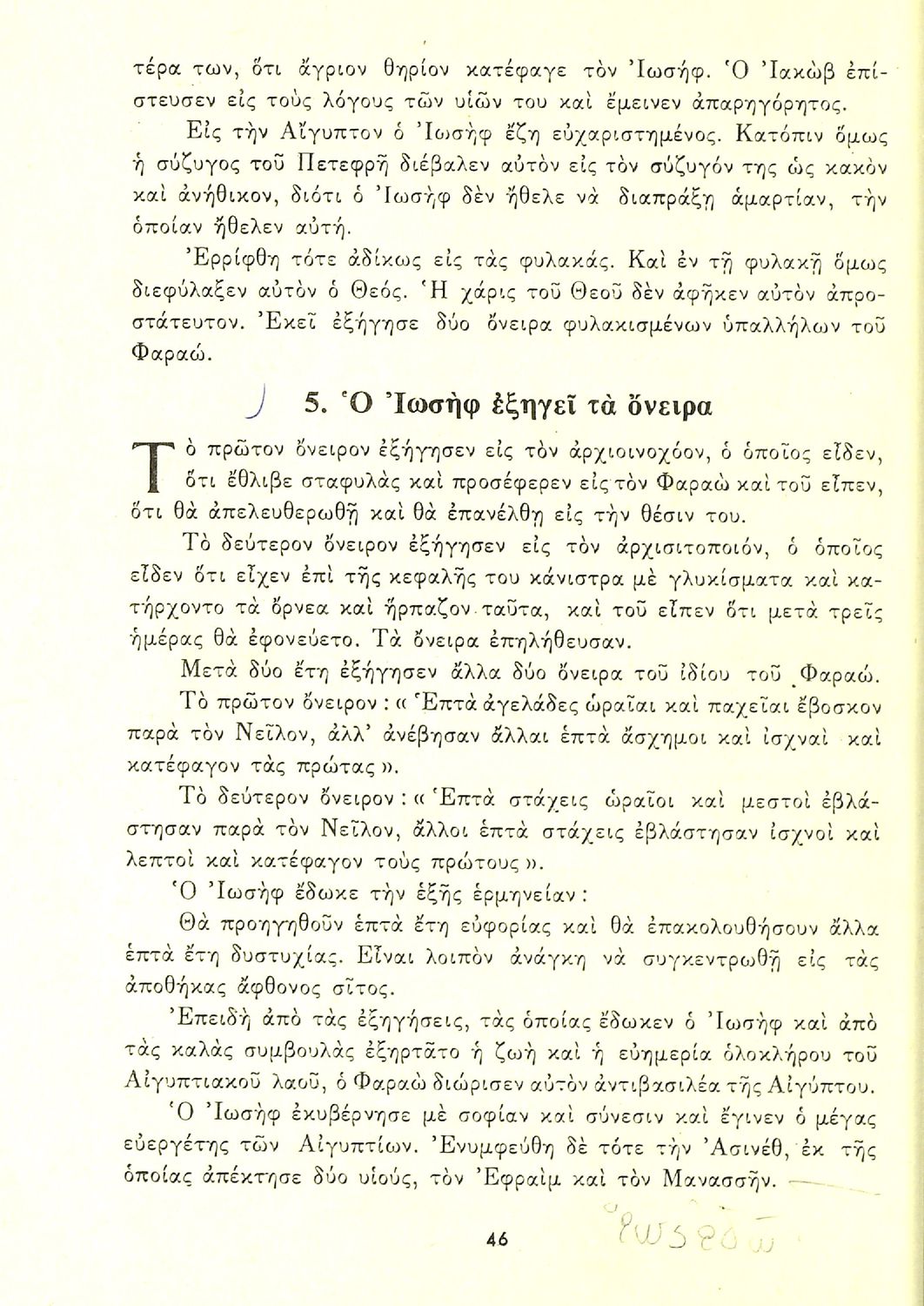 Σχολικό εγχειρίδιο Θρησκευτικών Α΄ Γυμνασίου που συνιστά μία εξιστόρηση της Παλαιάς Διαθήκης από τη δημιουργία του κόσμου ως την υποταγή των Εβραίων στους Ρωμαίους.