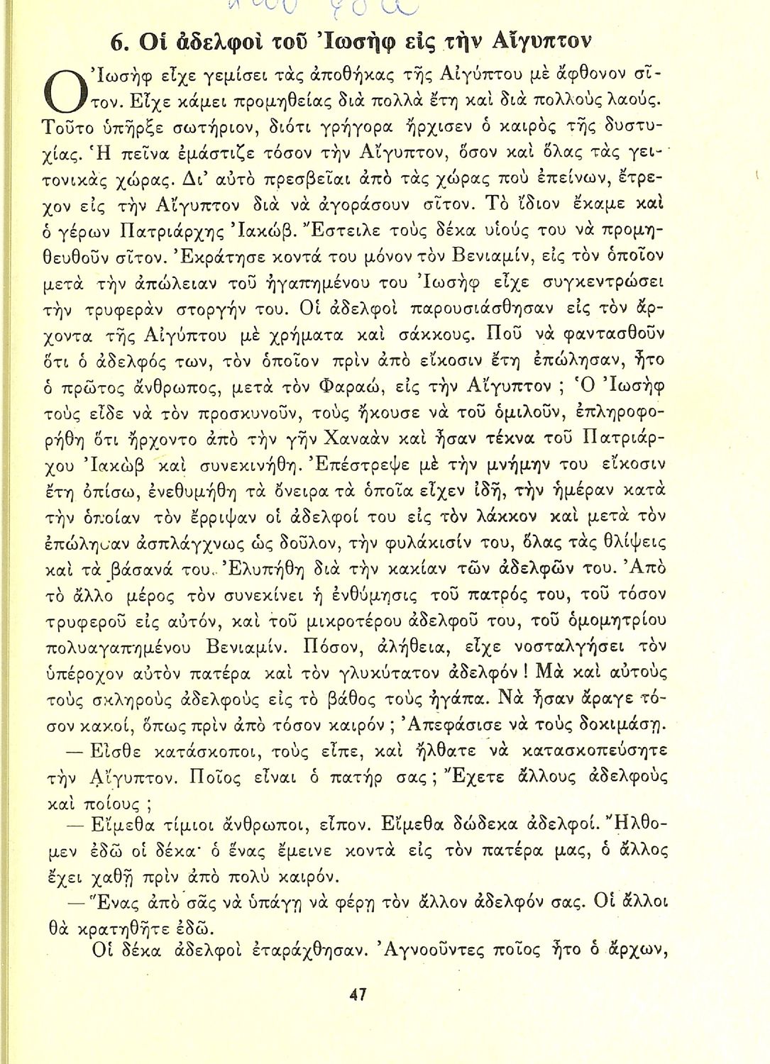 Ιερά Ιστορία της Παλαιάς Διαθήκης, Α΄ Γυμνασίου