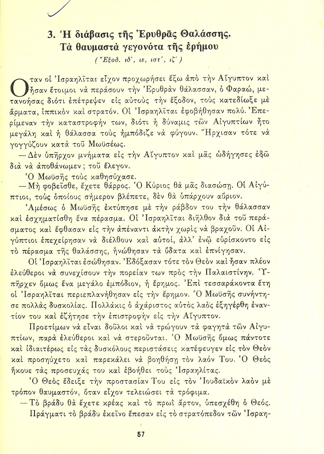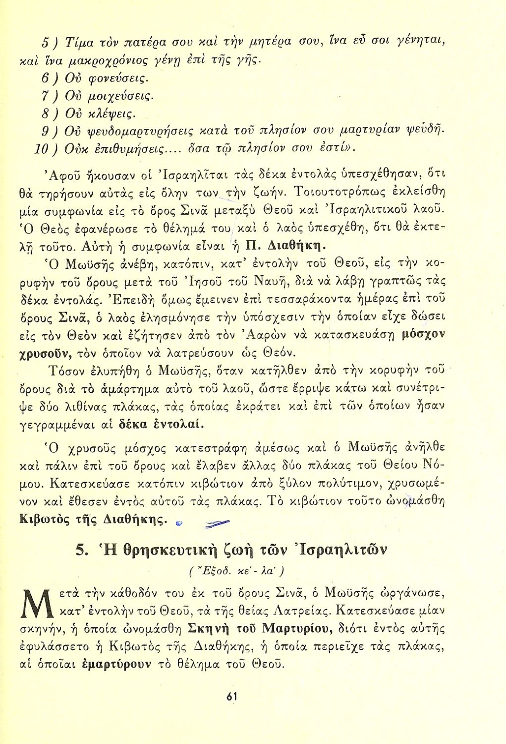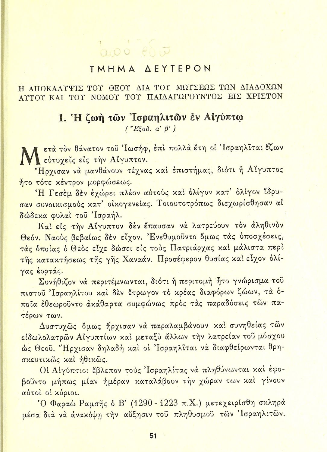 Σχολικό εγχειρίδιο Θρησκευτικών για την Α΄ Γυμνασίου και Πρακτικού Λυκείου που συνιστά μία εξιστόρηση της Παλαιάς Διαθήκης από τη δημιουργία του κόσμου ως την υποταγή των Εβραίων στους Ρωμαίους.
