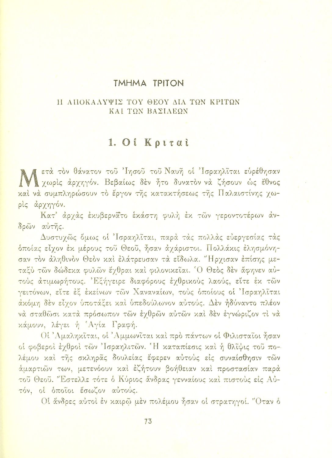 Σχολικό εγχειρίδιο Θρησκευτικών Α΄ Γυμνασίου που συνιστά μία εξιστόρηση της Παλαιάς Διαθήκης από τη δημιουργία του κόσμου ως την υποταγή των Εβραίων στους Ρωμαίους.