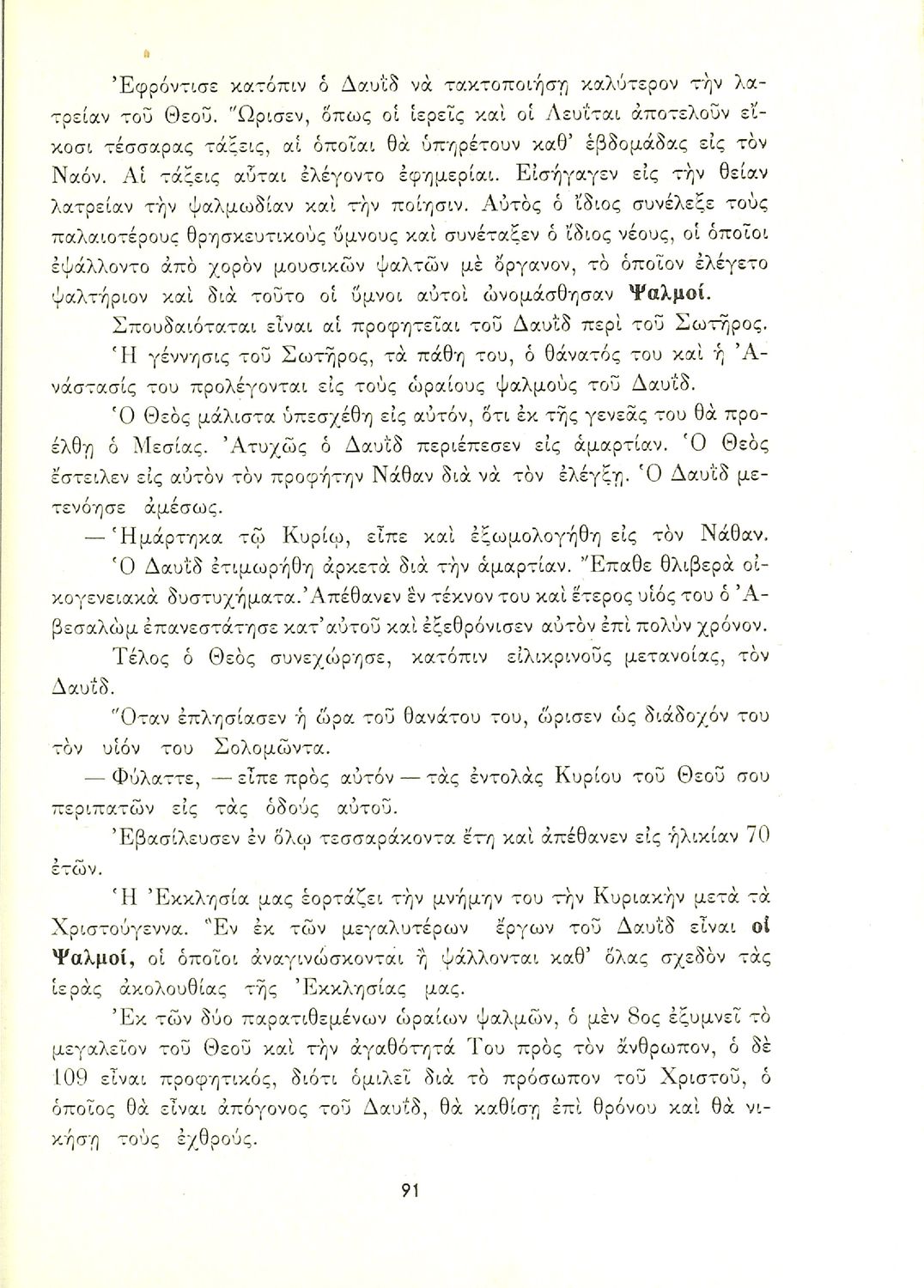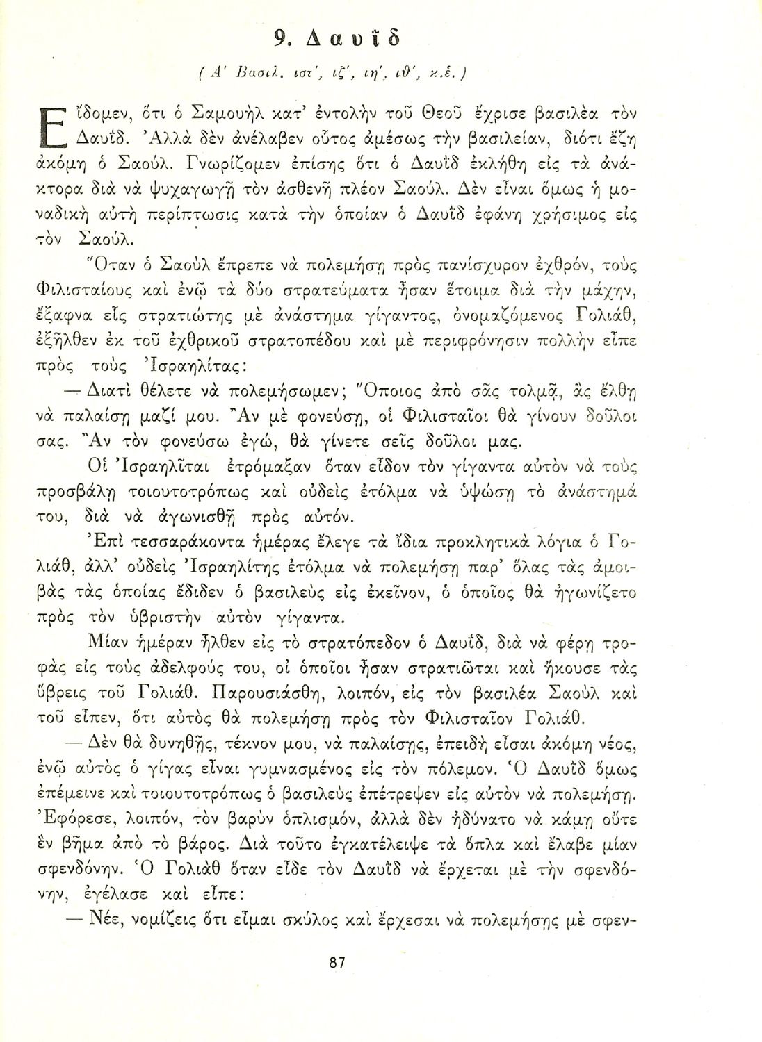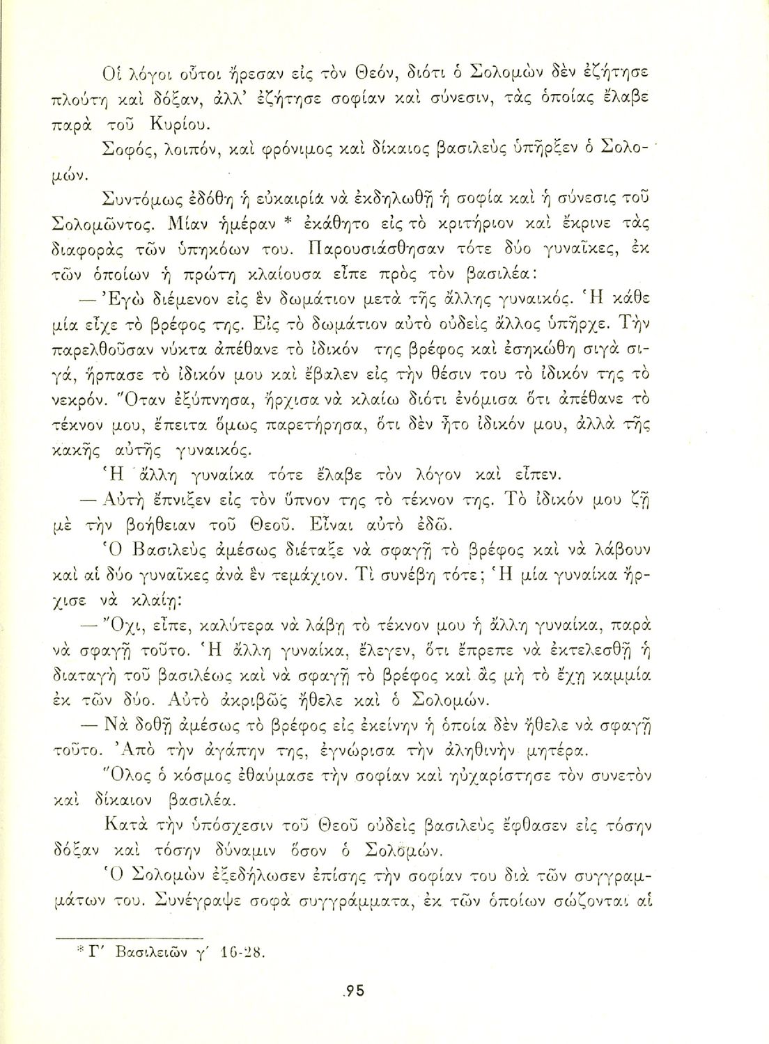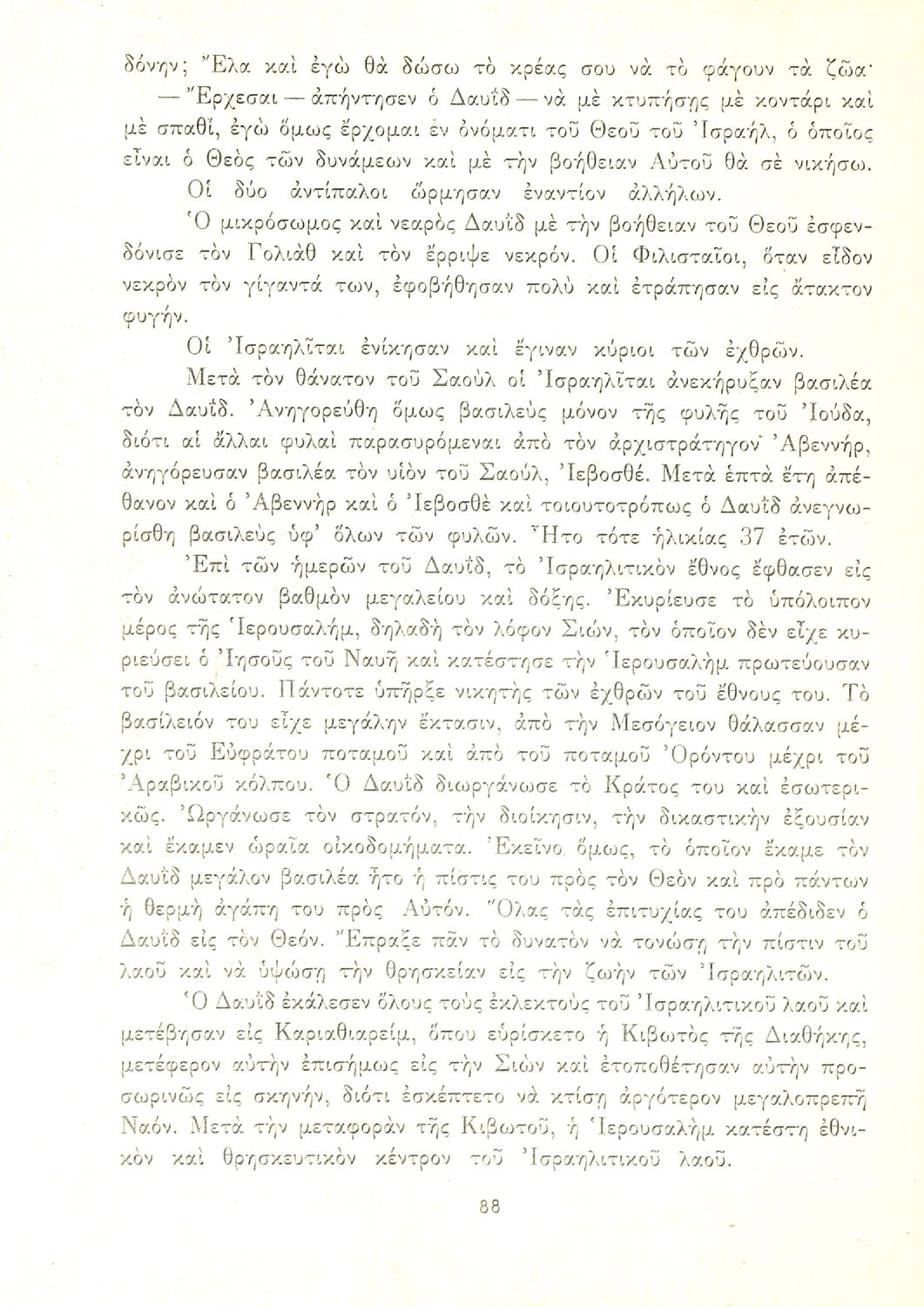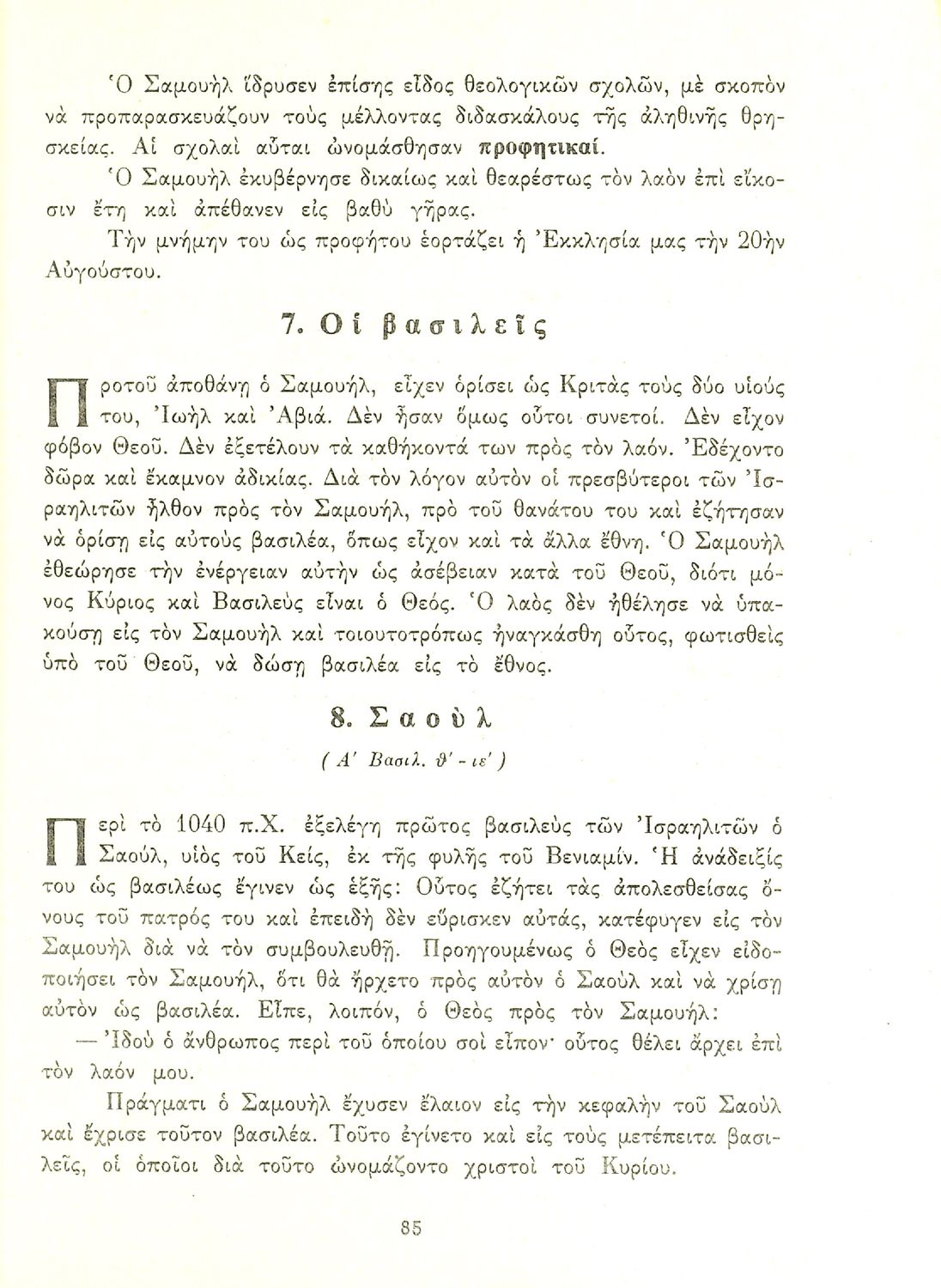 Βαθμίδα εκπαίδευσης: Δευτεροβάθμια Τάξη: Α' Γυμνασίου Μάθημα: Θρησκευτικά Γλώσσα: Καθαρεύουσα Παρουσίαση περιεχομένου: Σχολικό εγχειρίδιο Θρησκευτικών Α΄ Γυμνασίου που συνιστά μία εξιστόρηση της Παλαιάς Διαθήκης από τη δημιουργία του κόσμου ως τους Προφήτες. |