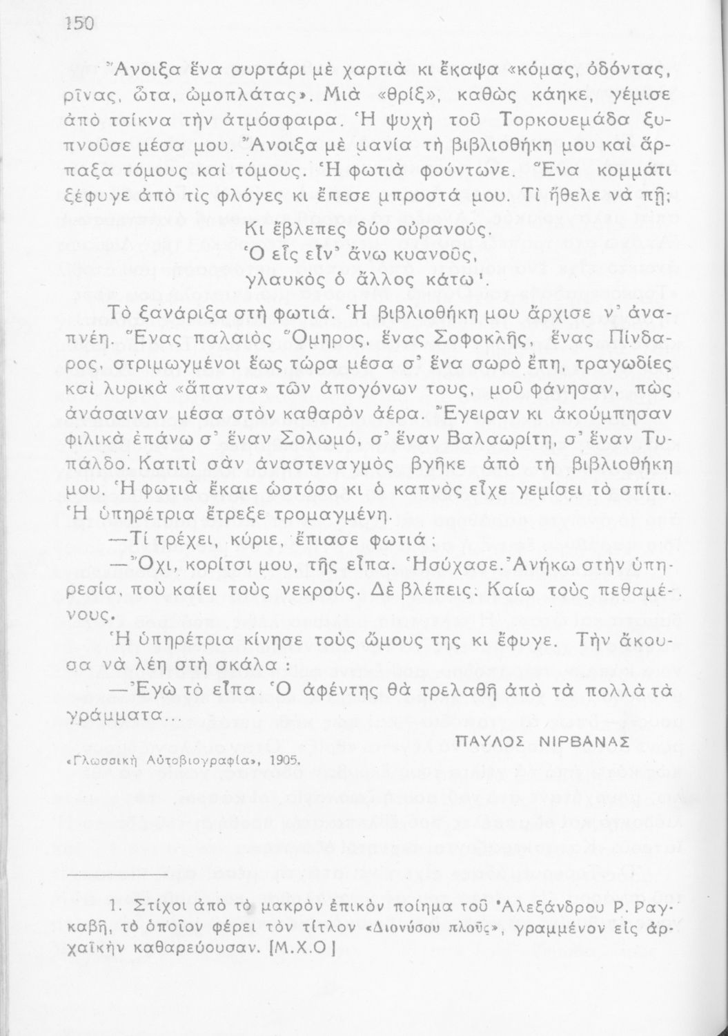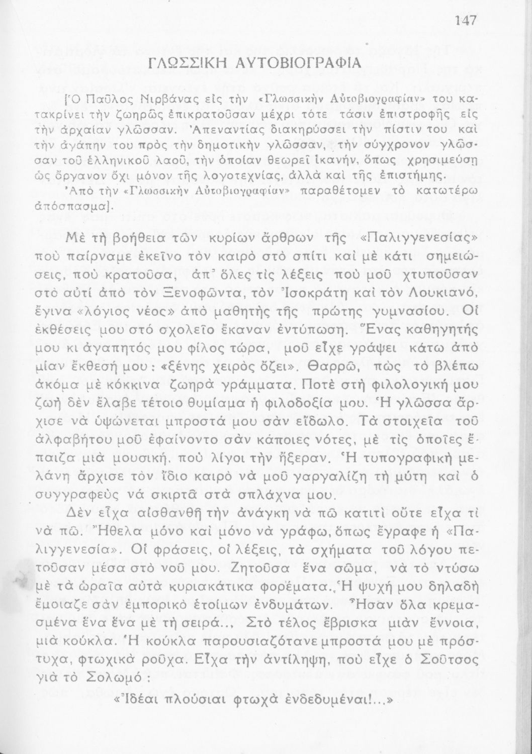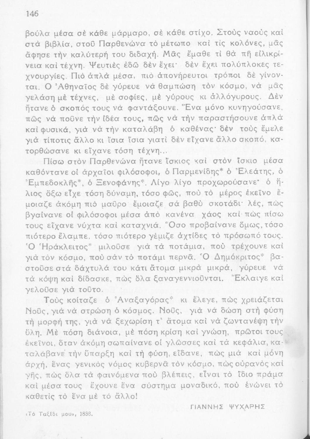 Βαθμίδα εκπαίδευσης: Δευτεροβάθμια Τάξη: Ε' Γυμνασίου παλαιού τύπου Μάθημα: Νέα Ελληνικά Γλώσσα: Καθαρεύουσα / Δημοτική Παρουσίαση περιεχομένου: Σχολικό εγχειρίδιο Νέων Ελληνικών Ε΄ Γυμνασίου που περιέχει πεζά και ποιήματα Ελλήνων συγγραφέων εμπνευσμένα από την καθημερινή ζωή και την σύγχρονη ελληνική ιστορία. Περιέχει και κλασσικά κείμενα ξένων λογοτεχνών, παράρτημα με βιογραφίες των συγγραφέων και λεξιλόγιο. |