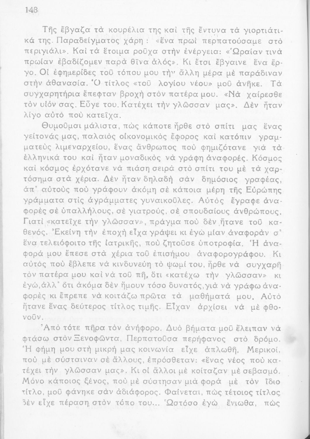 Σχολικό εγχειρίδιο Νέων Ελληνικών Ε΄ Γυμνασίου που περιέχει πεζά και ποιήματα Ελλήνων συγγραφέων εμπνευσμένα από την καθημερινή ζωή και την σύγχρονη ελληνική ιστορία. Περιέχει και κλασσικά κείμενα ξένων λογοτεχνών, παράρτημα με βιογραφίες των συγγραφέων και λεξιλόγιο.