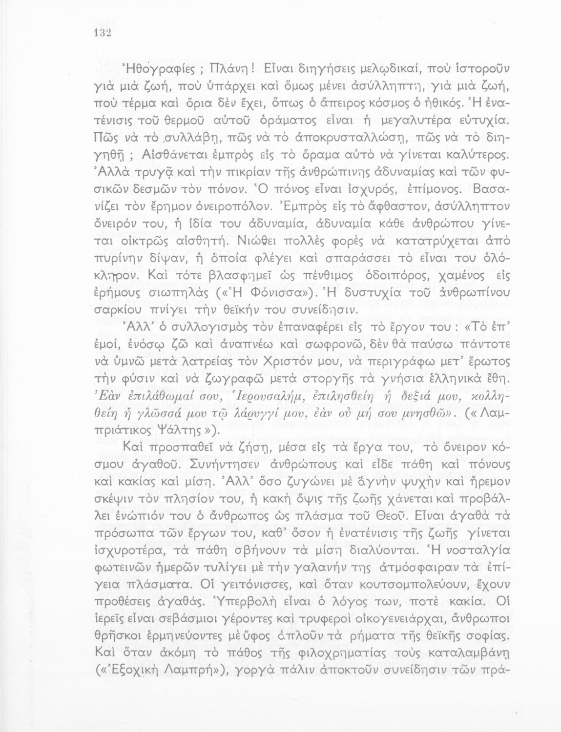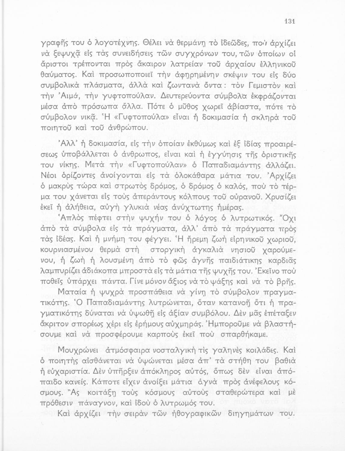 Σχολικό εγχειρίδιο Νέων Ελληνικών για τη ΣΤ΄ Γυμνασίου με πεζά και ποιήματα Ελλήνων και ξένων λογοτεχνών. Ο πεζός λόγος ανήκει στους ρητορικούς λόγους, στις διηγήσεις, στις περιγραφές και στα ευθυμογραφήματα. Η ποίηση περιλαμβάνει δημοτικά και έντεχνο ποιητικό λόγο ενώ υπάρχουν κείμενα από την ιταλική, γαλλική και αγγλική λογοτεχνία. Στο βιβλίο υπάρχει το σύμβολο της επταετίας.