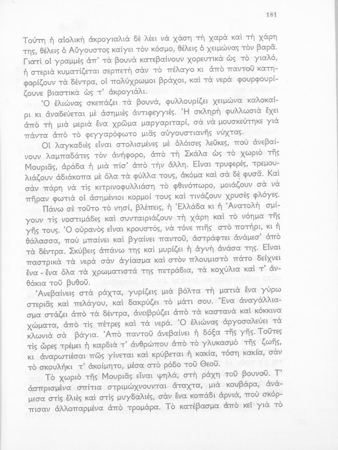Σχολικό εγχειρίδιο Νέων Ελληνικών για την ΣΤ΄ Γυμνασίου. Περιέχει πεζά και ποιήματα Ελλήνων λογοτεχνών εμπνευσμένα από την καθημερινή και ιστορική ζωή του τόπου. Στο βιβλίο υπάρχουν βιογραφικές σημειώσεις των ...