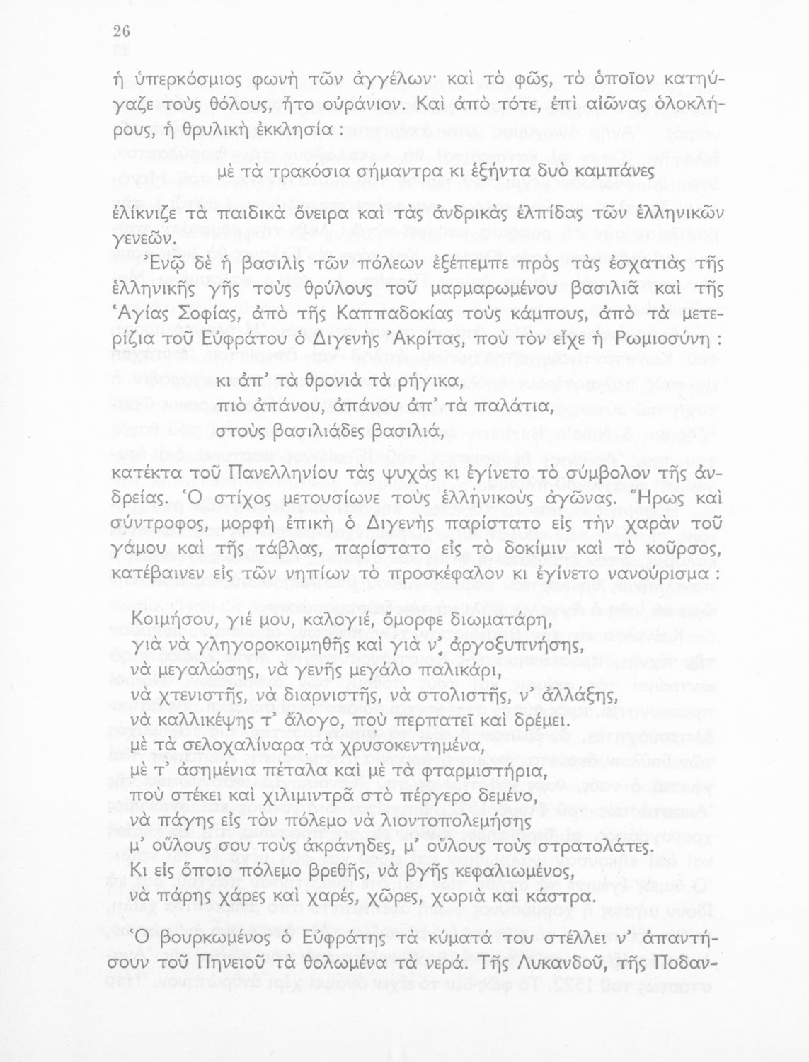 Σχολικό εγχειρίδιο Νέων Ελληνικών ΣΤ΄ Γυμνασίου που περιέχει πεζά και ποιήματα συγγραφέων της βυζαντινής και μεταβυζαντινής περιόδου πατριωτικού και θρησκευτικού περιεχομένου και δημοτικά τραγούδια. ...