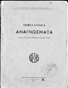 Νεοελληνικά αναγνώσματα διά την ΣΤ΄ τάξιν των Γυμνασίων παλαιού τύπου