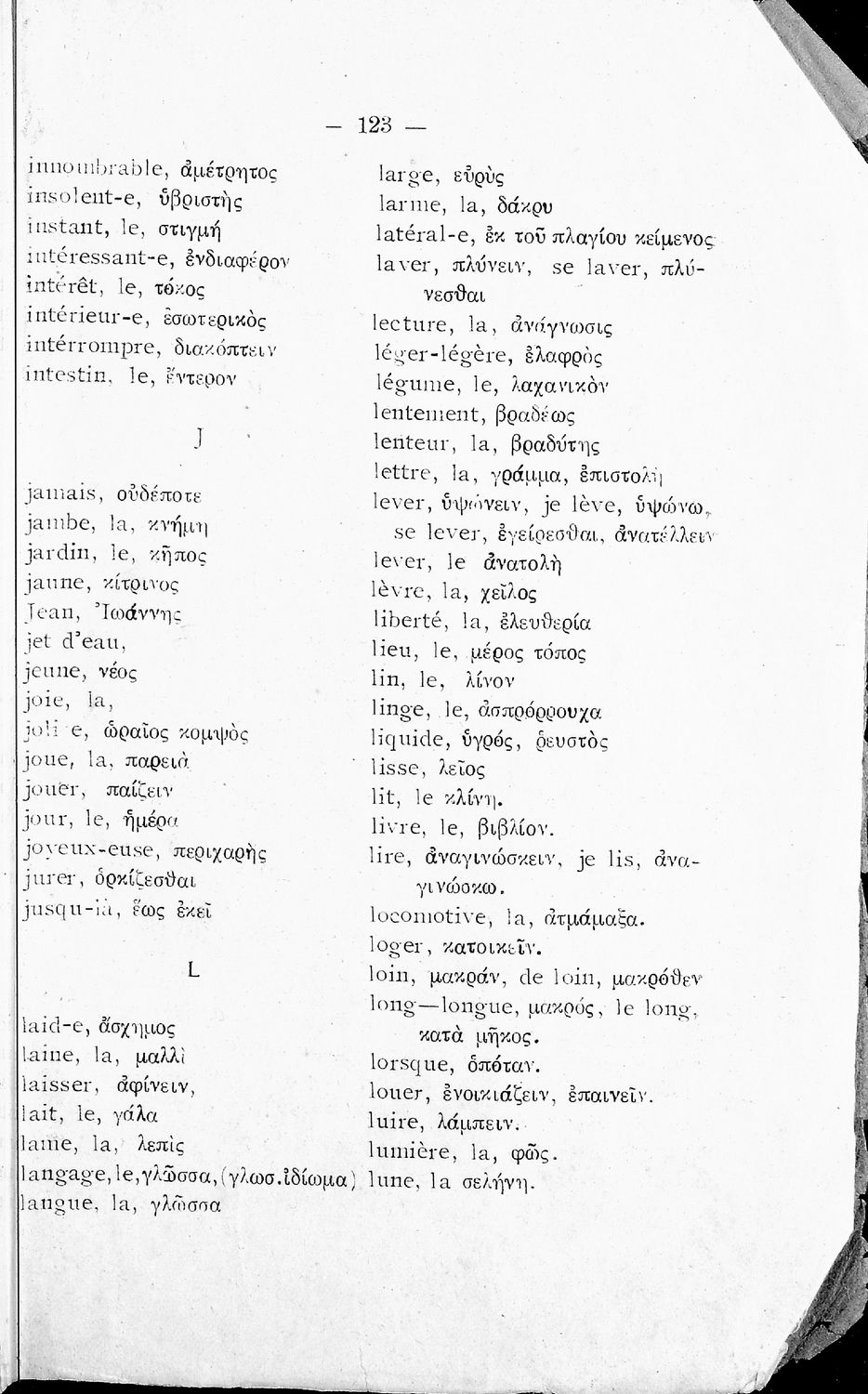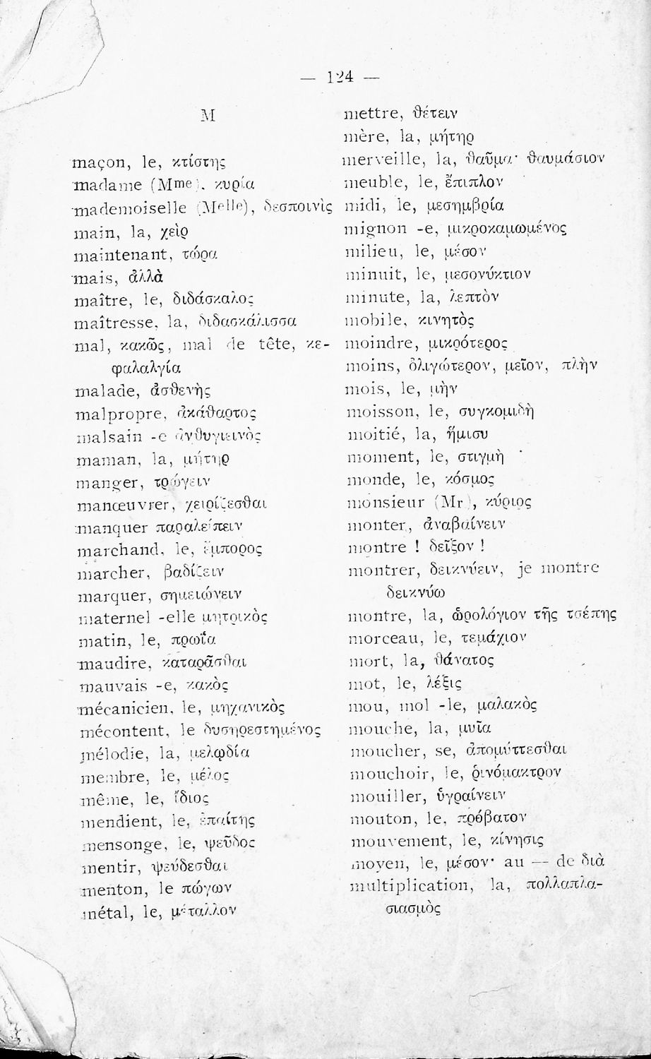 Γραμματική της Γαλλικής γλώσσας για τα Τετρατάξια Γυμνάσια, τη Γ΄ τάξη των Αστικών Σχολείων Θηλέων και τα Διδασκαλεία της Δημοτικής Εκπαίδευσης που περιλαμβάνει θεωρία, ασκήσεις και λεξιλόγιο.