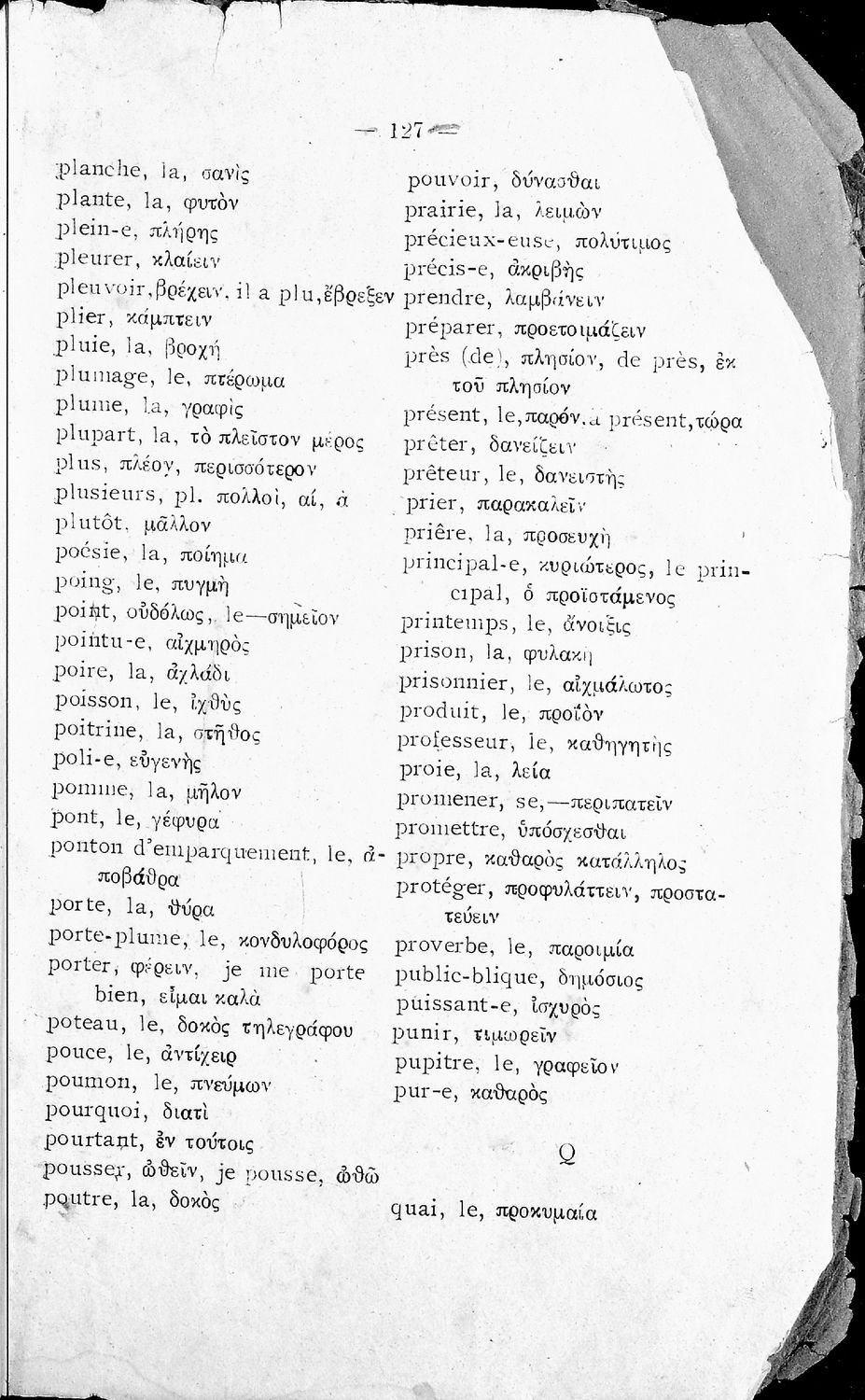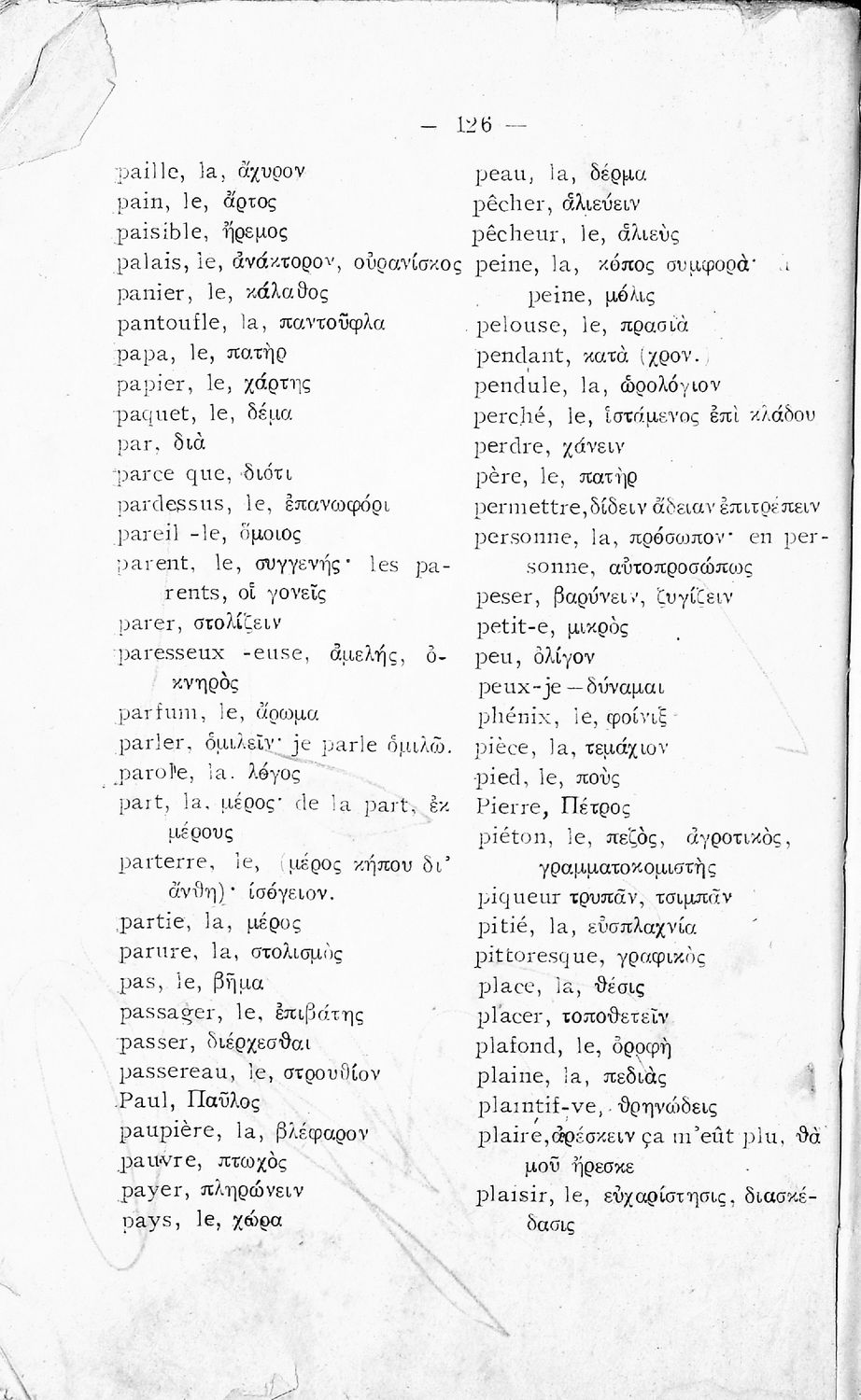 Σχολικό εγχειρίδιο Γαλλικών για τις Β΄ και Γ' Ελληνικού Σχολείου, Αστικού Σχολείου και Παρθεναγωγείου που περιλαμβάνει κείμενα, κανόνες γραμματικής και συντακτικού, και λεξιλογικά και πραγματολογικά σχόλια.