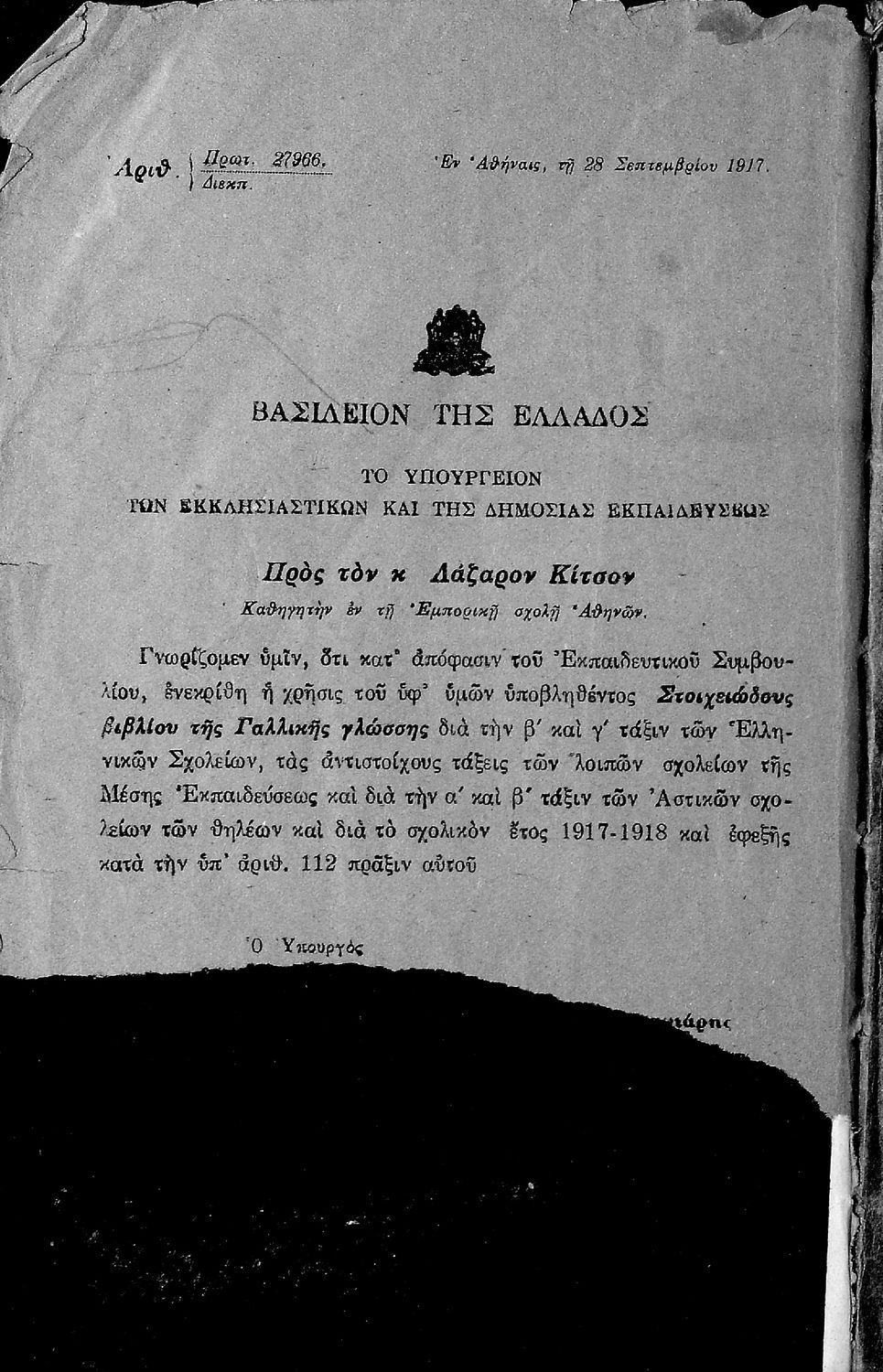 Υπουργική απόφαση / Σύμβαση: 27966/28-9-1917