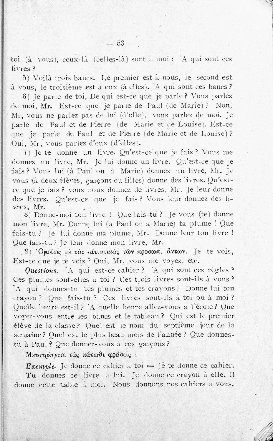 Σχολικό εγχειρίδιο Γαλλικών Β΄ και Γ' Ελληνικού Σχολείου, Αστικού Σχολείου και Παρθεναγωγείου που περιλαμβάνει κείμενα, κανόνες γραμματικής και συντακτικού, ερωτήσεις και ασκήσεις κατανόησης, και λεξιλογικά ...