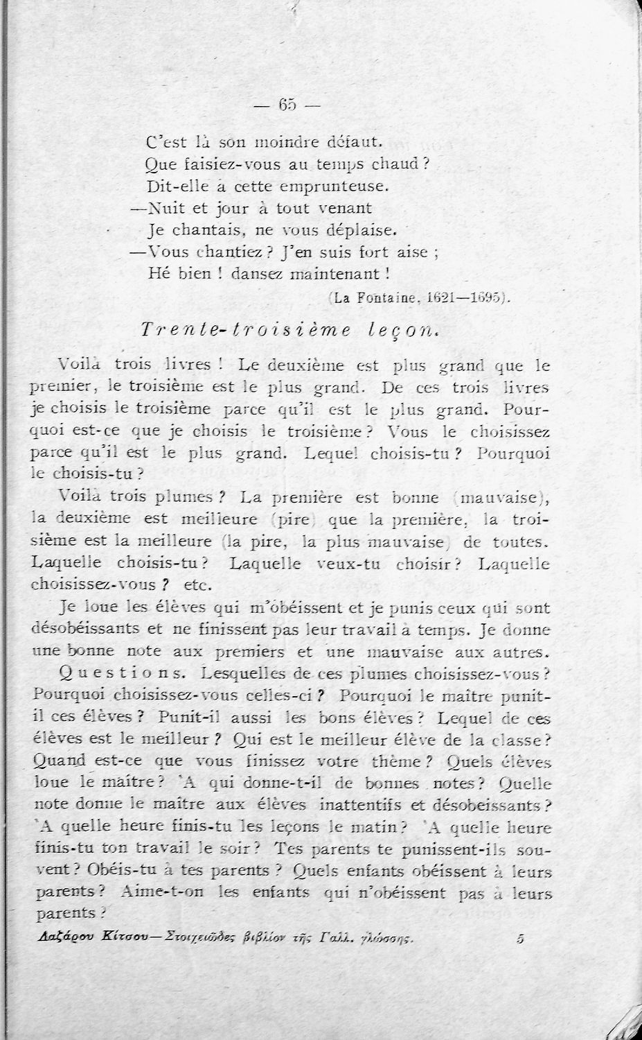 Τίτλος: Στοιχειώδες βιβλίον της γαλλικής γλώσσης δια την Β΄ και Γ΄ τάξιν των Ελληνικών Σχολείων και τας αντιστοίχους τάξεις των Αστικών Σχολείων και Παρθεναγωγείων