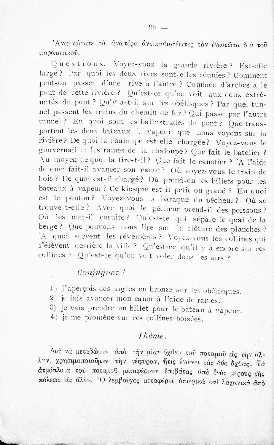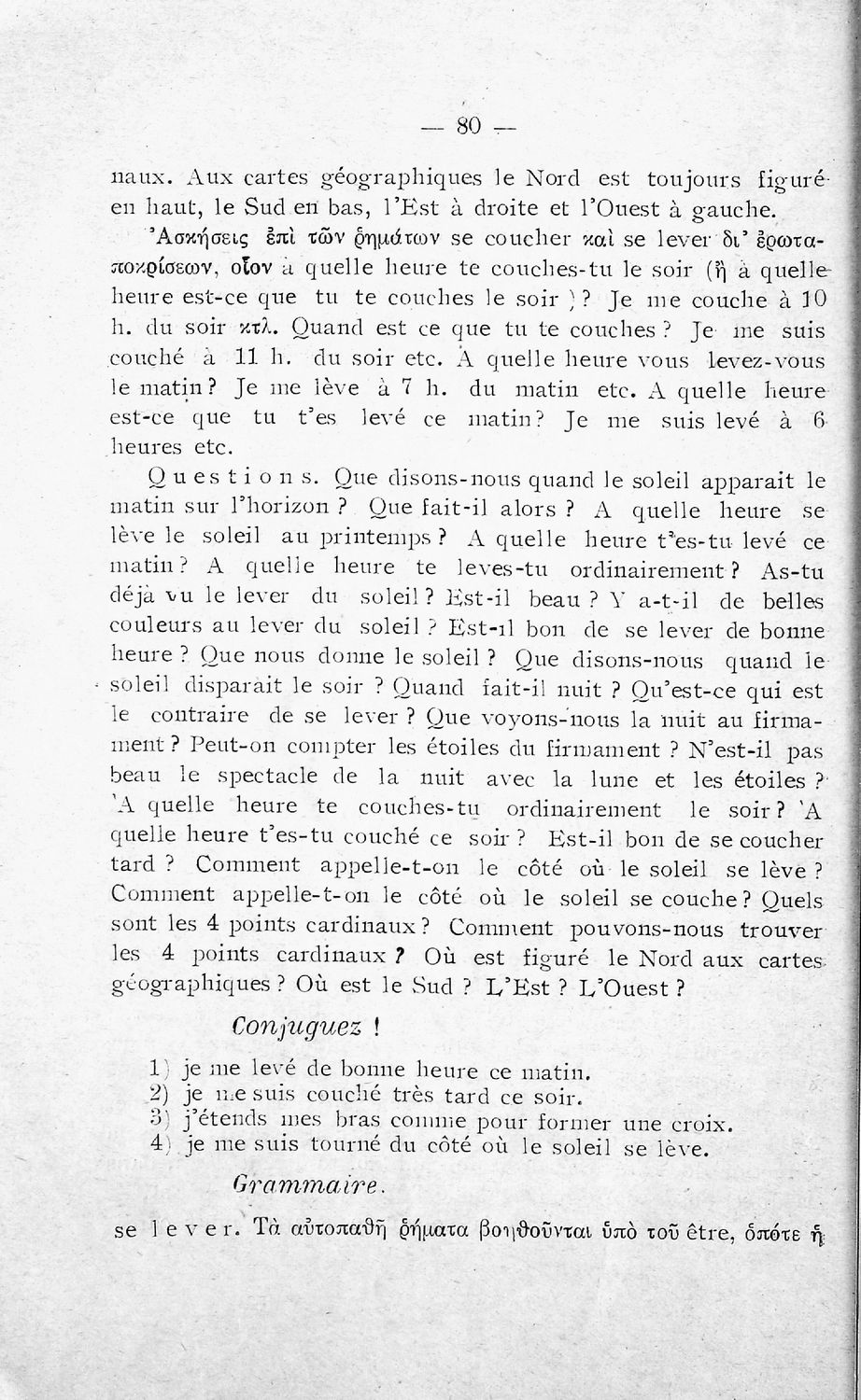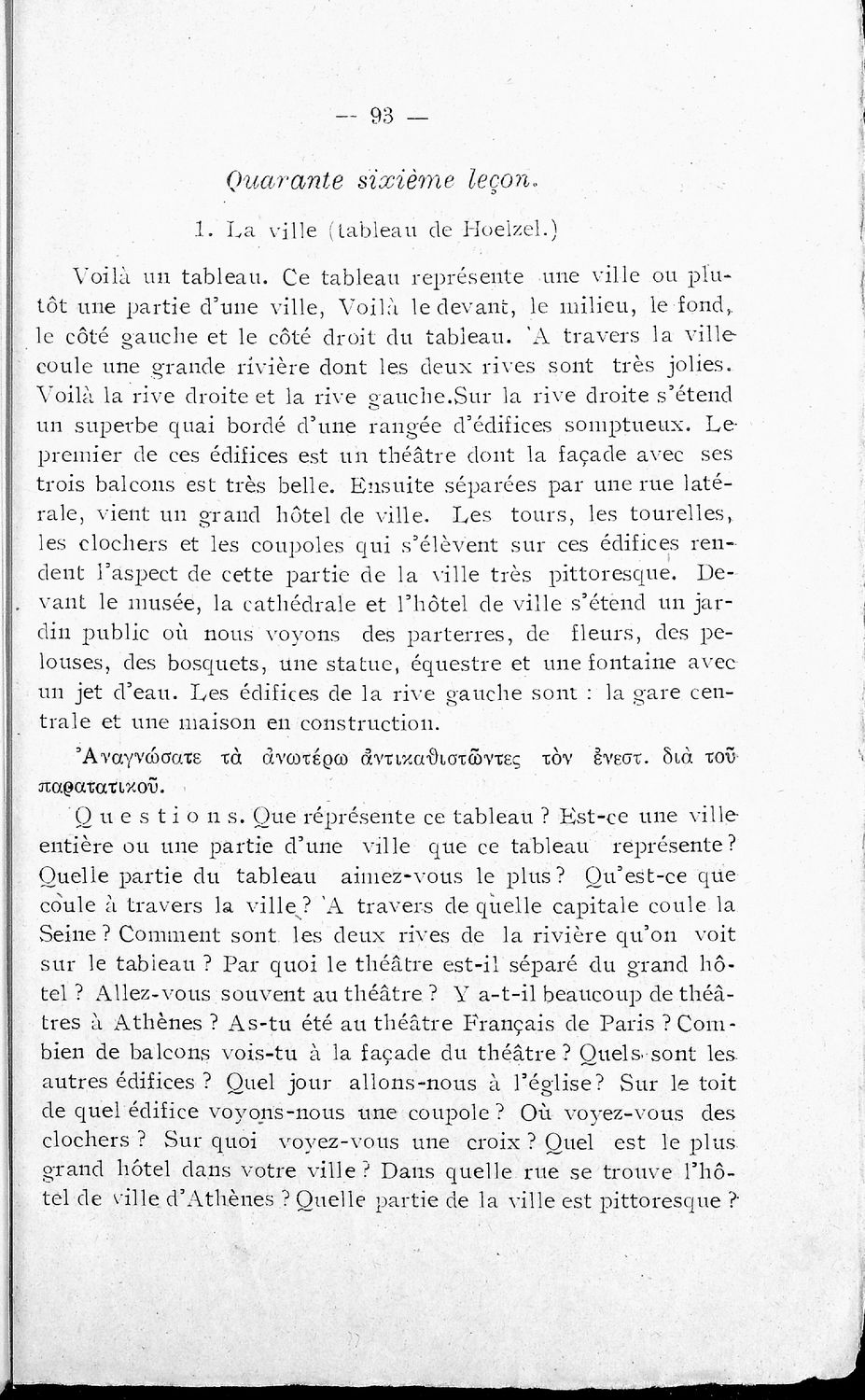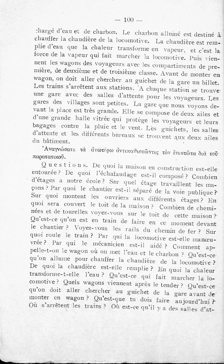 Σχολικό εγχειρίδιο Γαλλικών για τις Β΄ και Γ' Ελληνικού Σχολείου, Αστικού Σχολείου και Παρθεναγωγείου που περιλαμβάνει κείμενα, κανόνες γραμματικής και συντακτικού, και λεξιλογικά και πραγματολογικά σχόλια.