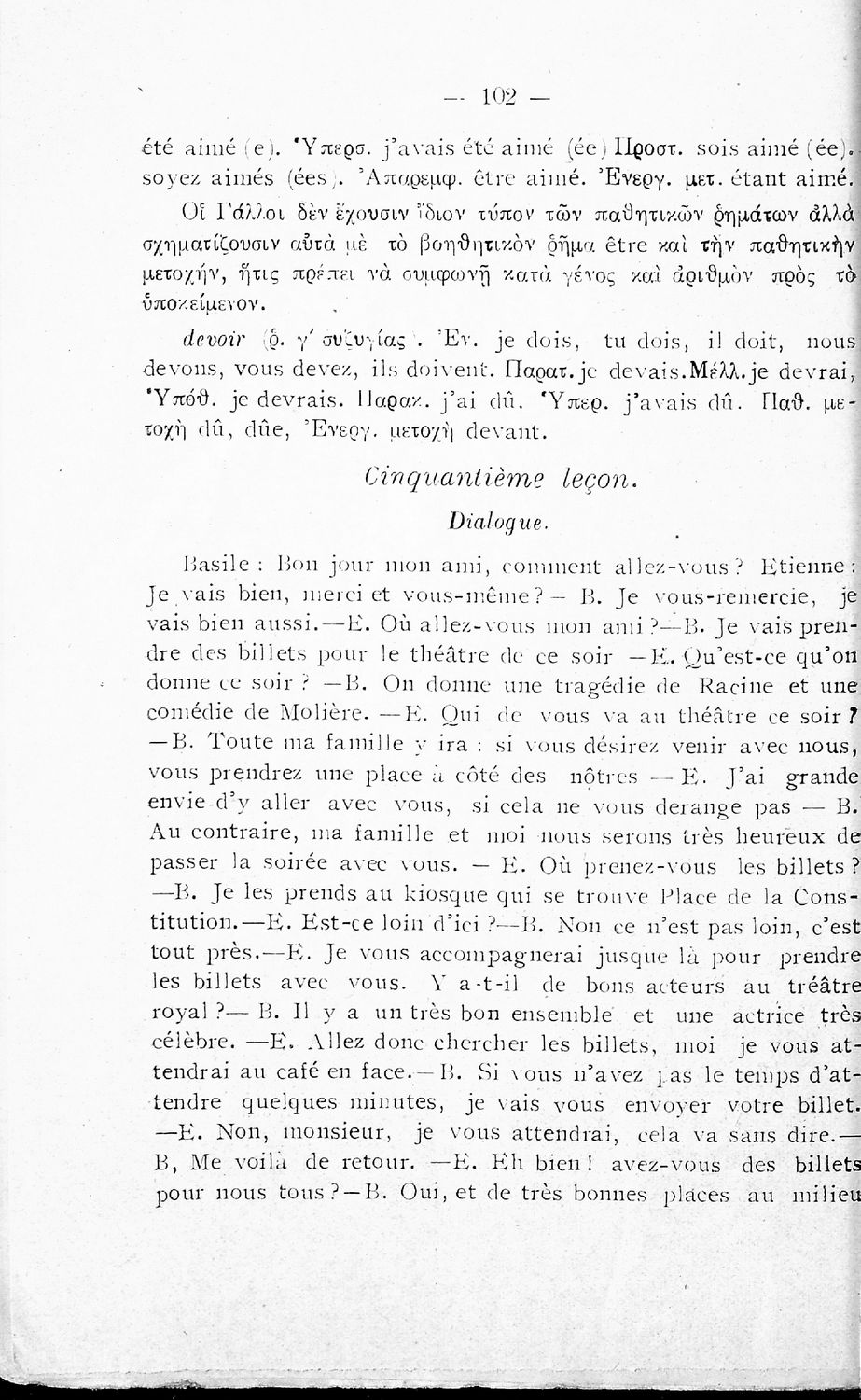 Σχολικό εγχειρίδιο Γαλλικών για τις Β΄ και Γ' Ελληνικού Σχολείου, Αστικού Σχολείου και Παρθεναγωγείου που περιλαμβάνει κείμενα, κανόνες γραμματικής και συντακτικού, λεξιλογικά και πραγματολογικά σχόλια.